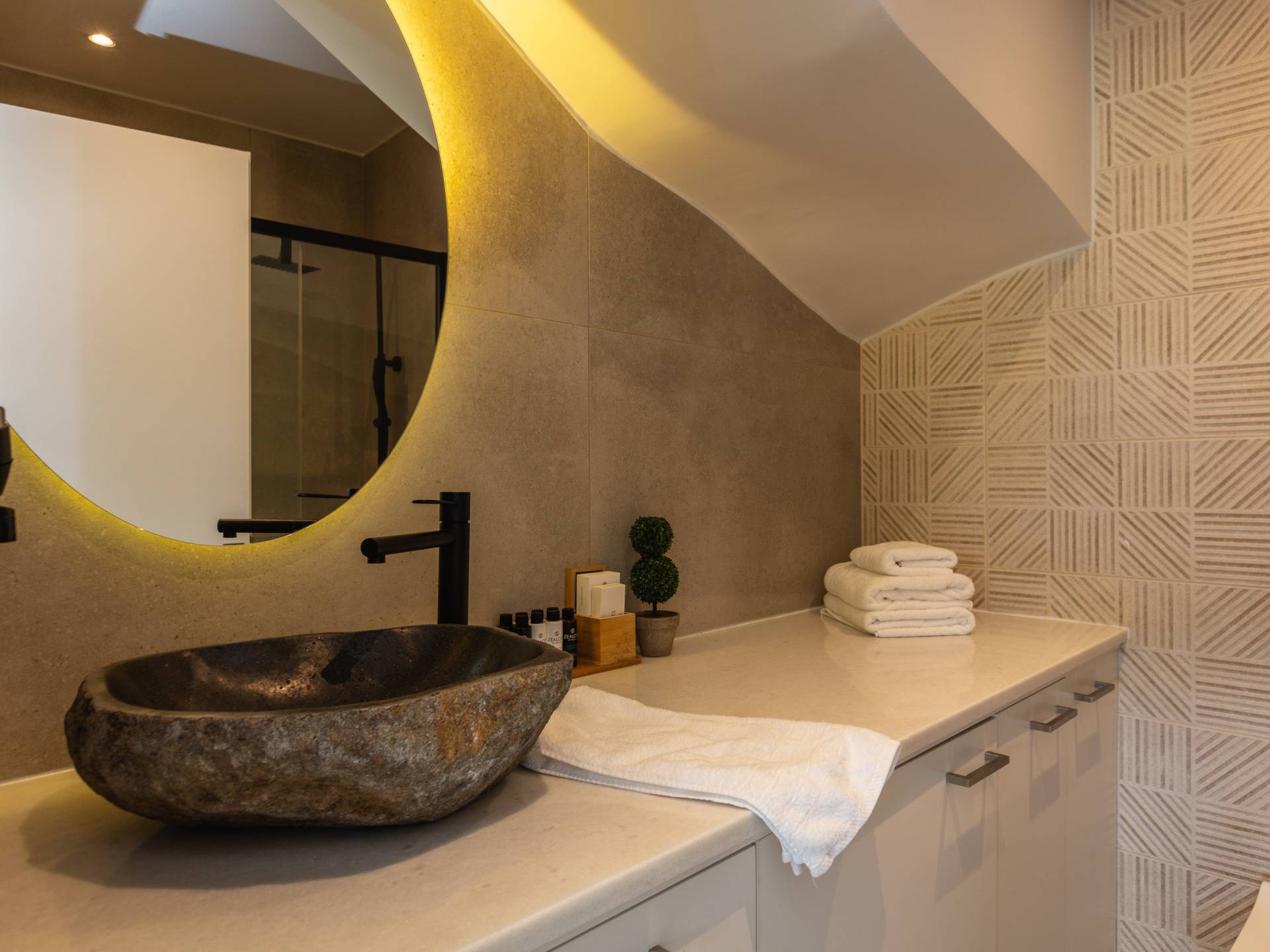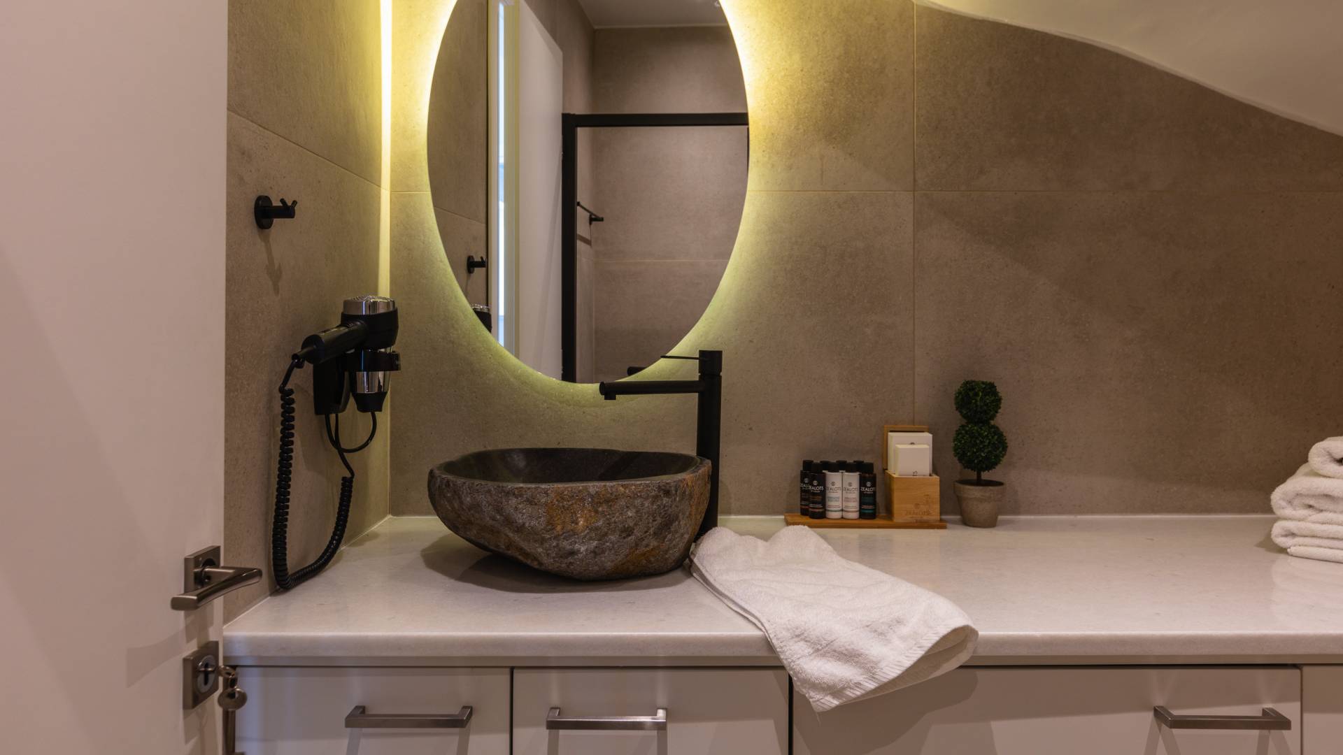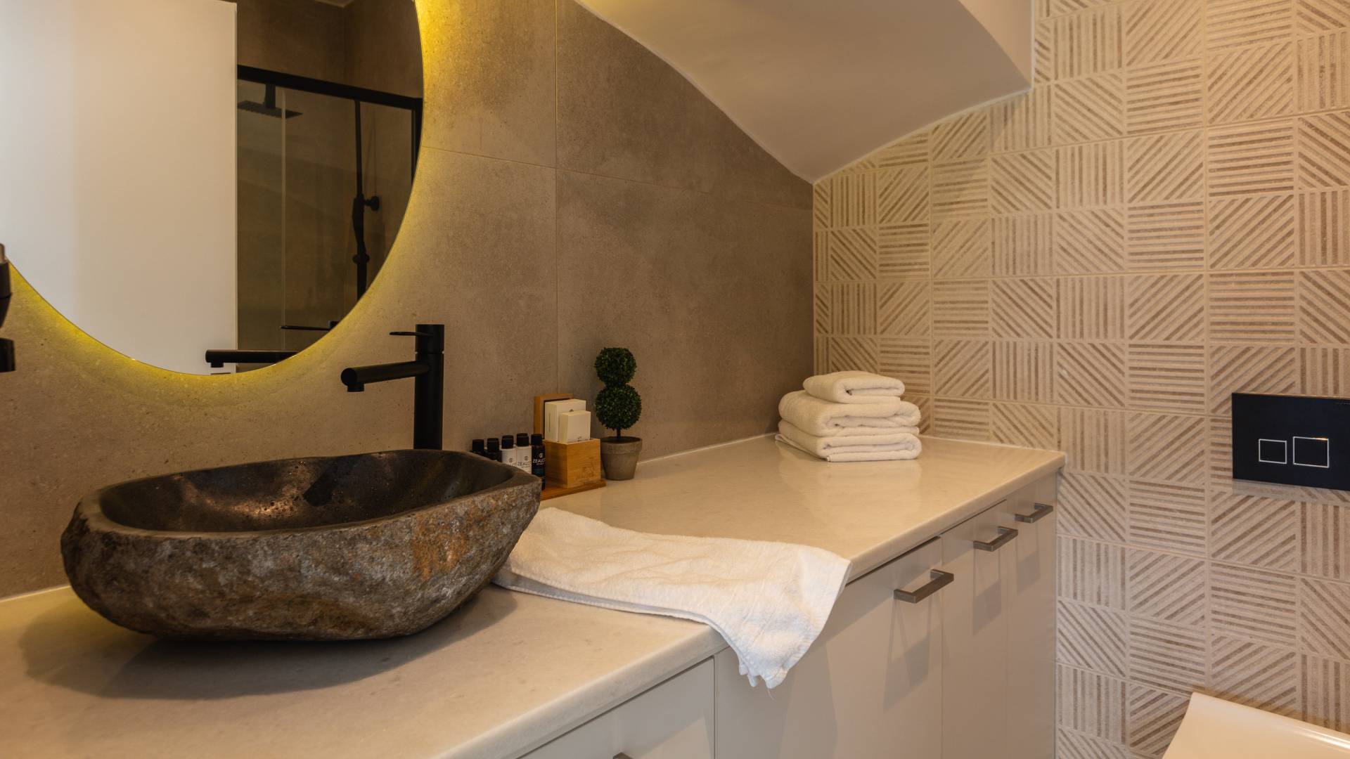 Los dos baños en planta están totalmente equipados con todo el equipamiento necesario, como toallas, albornoces y zapatillas COCO-MAT, secador de pelo. En el segundo nivel, hay dos dormitorios igualmente maravillosos, cómodos y luminosos y dos baños también completamente equipados. Los cuatro dormitorios de la villa cuentan con TV LED de pantalla plana y reproductor de DVD, lo que hace que la estancia de sus ocupantes sea aún más cómoda e independiente.