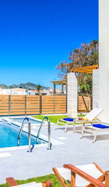 Ubicada en la soleada costa noroeste de Creta, Agia Marina es una encantadora localidad costera que combina a la perfección belleza natural, hospitalidad cretense y comodidades modernas. A solo 9 kilómetros al oeste de Chania, se ha convertido en uno de los destinos favoritos para quienes buscan un equilibrio entre descanso y aventura — y no hay mejor forma de vivirlo que en una villa privada.