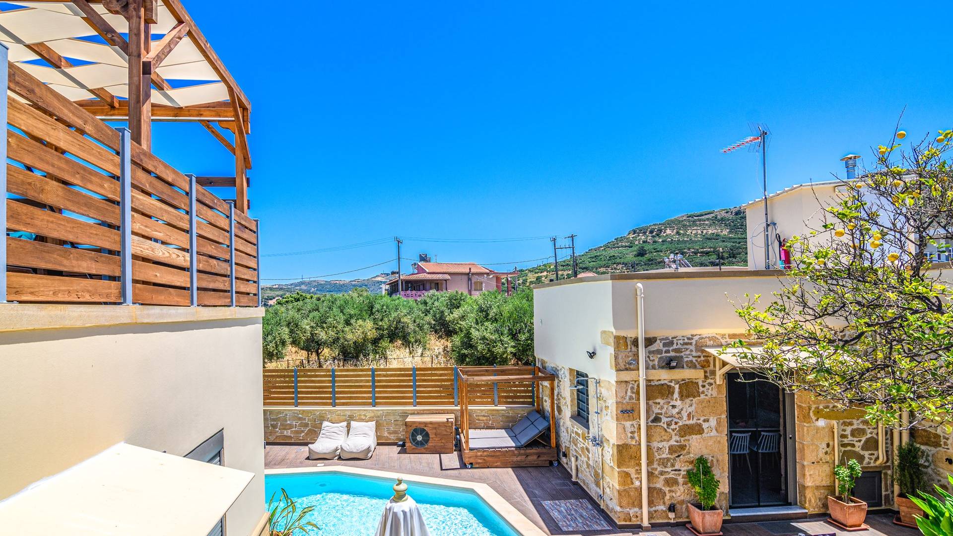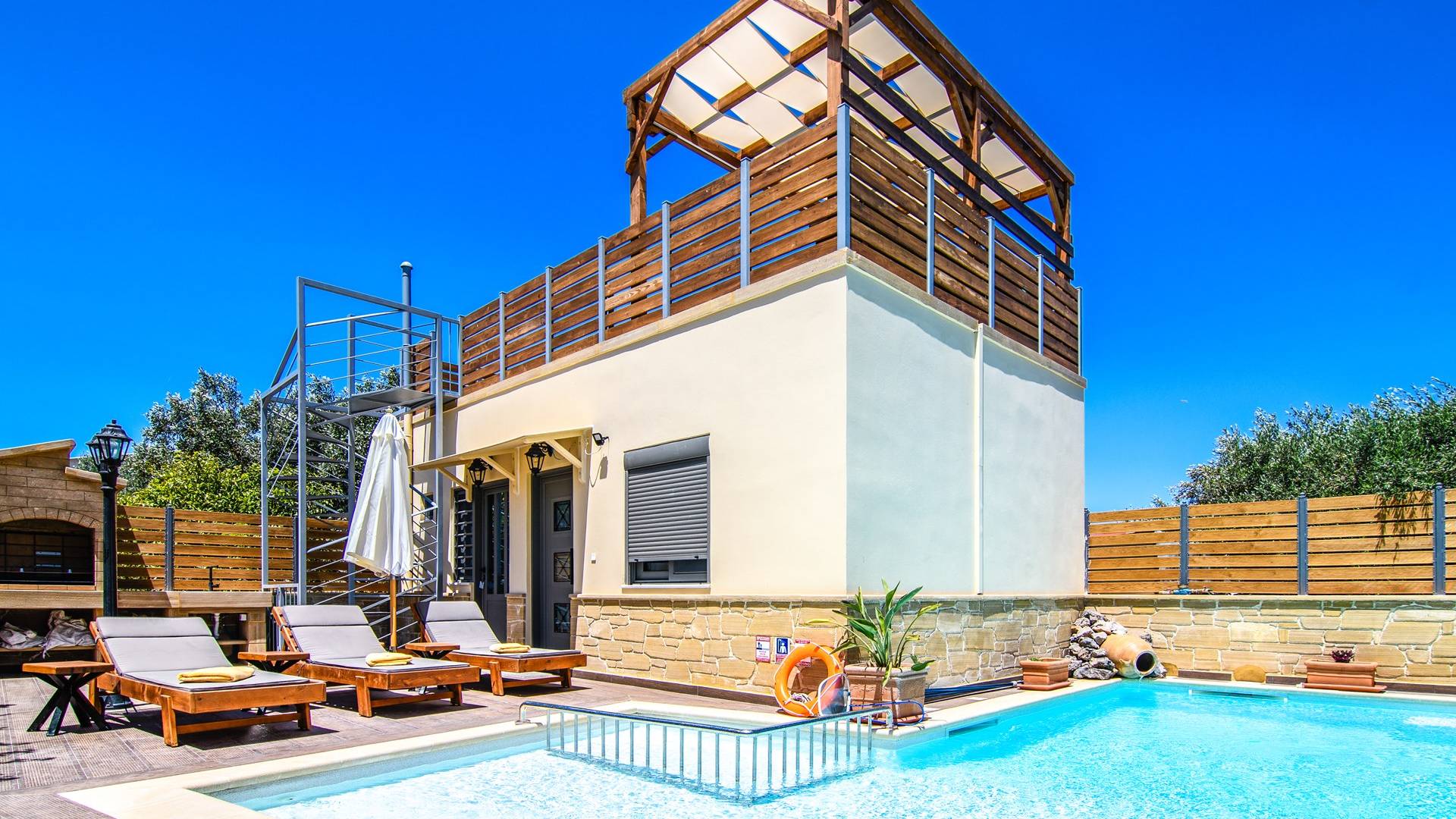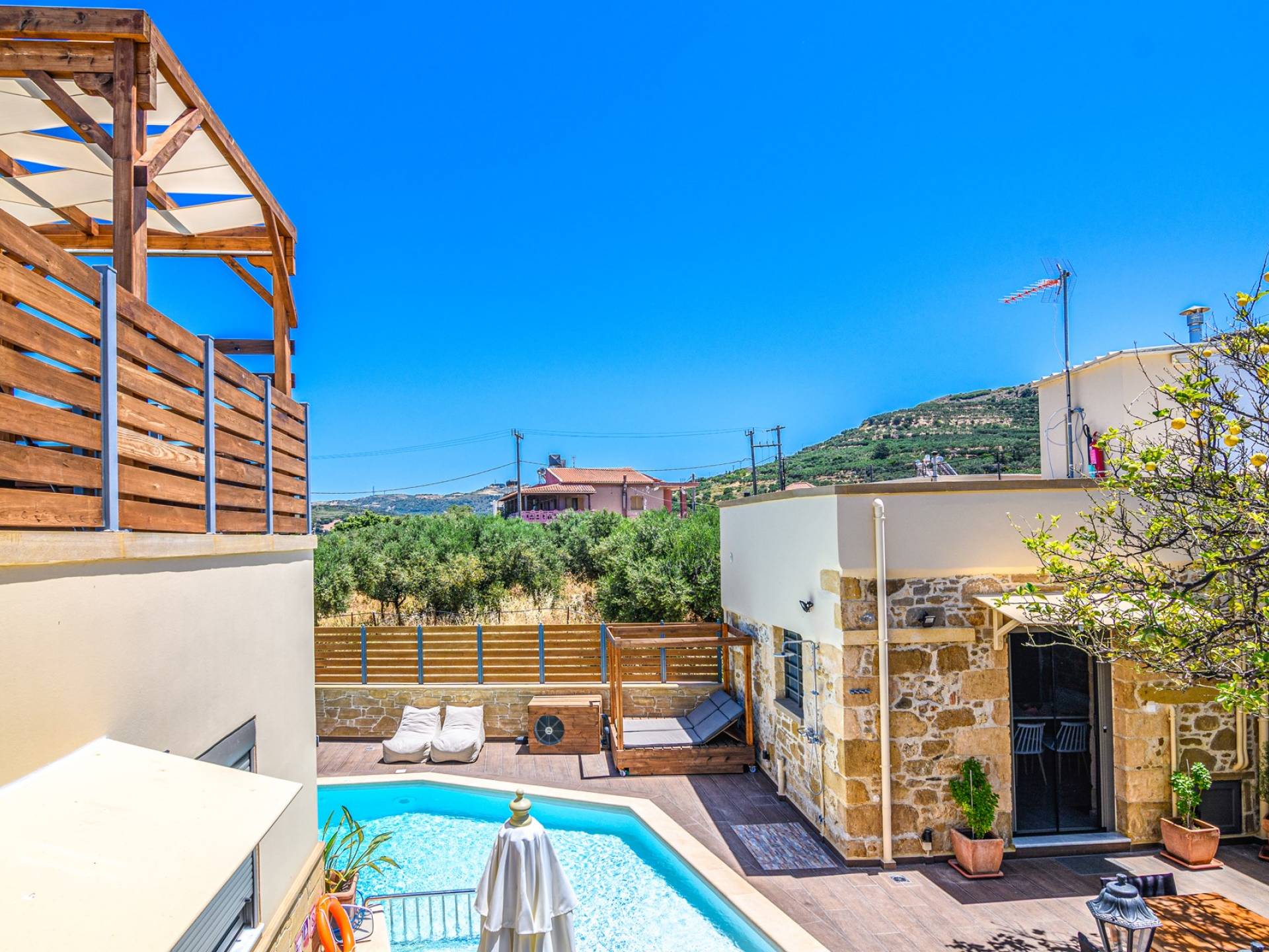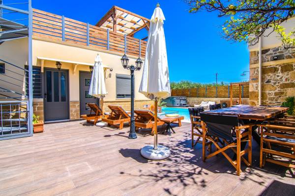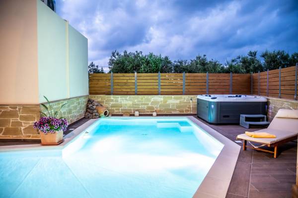 Drosa Villa Chania: escápese a un retiro privado y sereno, a pocos minutos de las impresionantes playas del oeste de Creta. Esta espaciosa villa ofrece modernidad y comodidad, cuenta con una piscina privada, una relajante bañera de hidromasaje al aire libre y una zona de barbacoa, perfecta para relajarse con estilo. Escapada de verano ideal para familias o grupos.