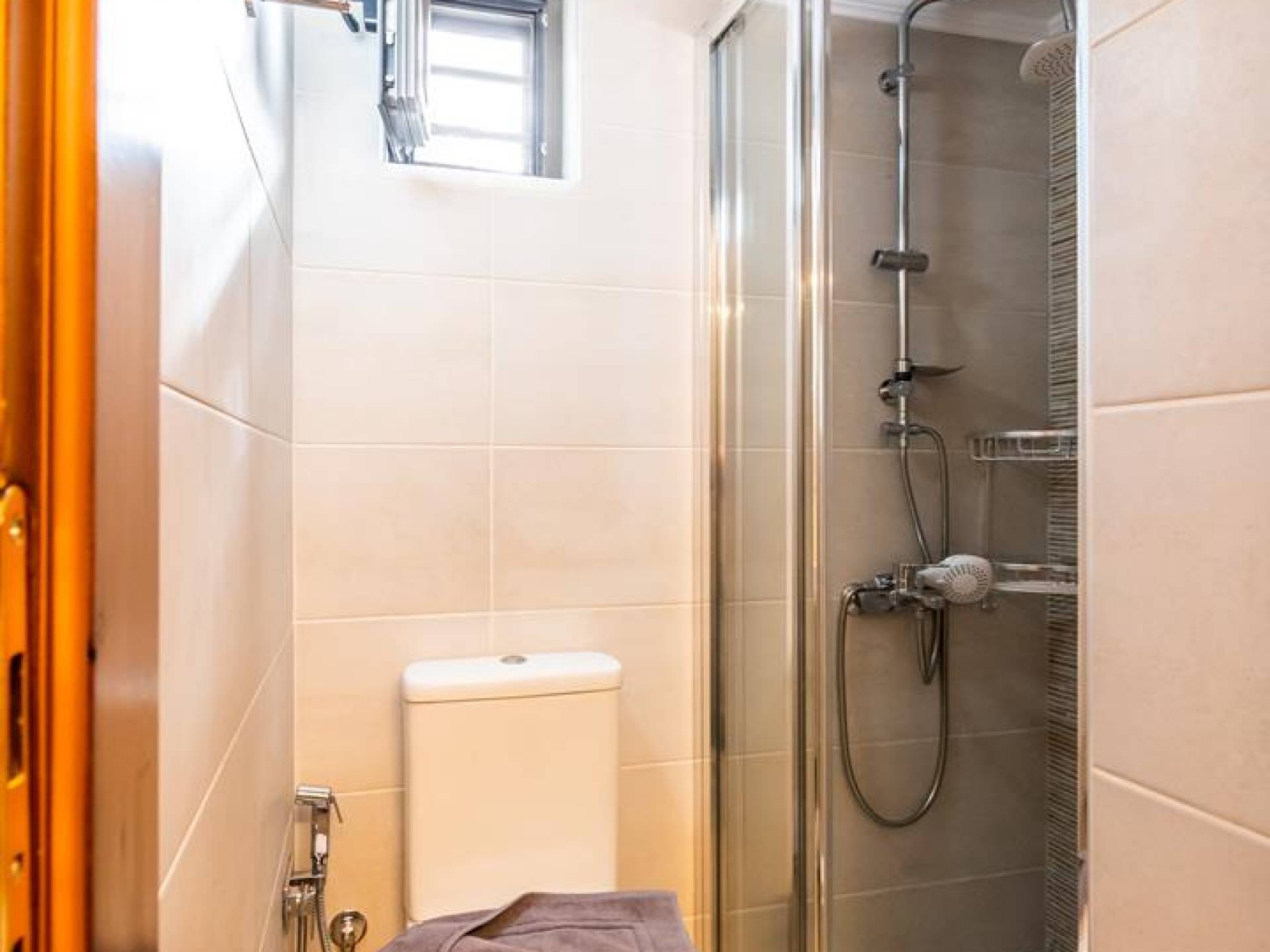 La casa de huéspedes consta de un dormitorio con una pequeña zona de cocina y un baño. Tiene capacidad para 2 personas ya que dispone de 2 camas individuales (90cm x 205cm) que también se pueden convertir en una cama doble grande. La habitación está equipada con un equipo de aire acondicionado independiente, un smart TV plano de 42 pulgadas con conexión a internet y canales vía satélite, caja fuerte, armario, un pequeño office con acceso Ethernet y un espejo. El área de la cocina tiene un fregadero, 2 hornillos y una nevera pequeña. El baño dispone de ducha con todo lo necesario, además de calefactor, ducha bidé, espejo de aumento y secador de pelo.