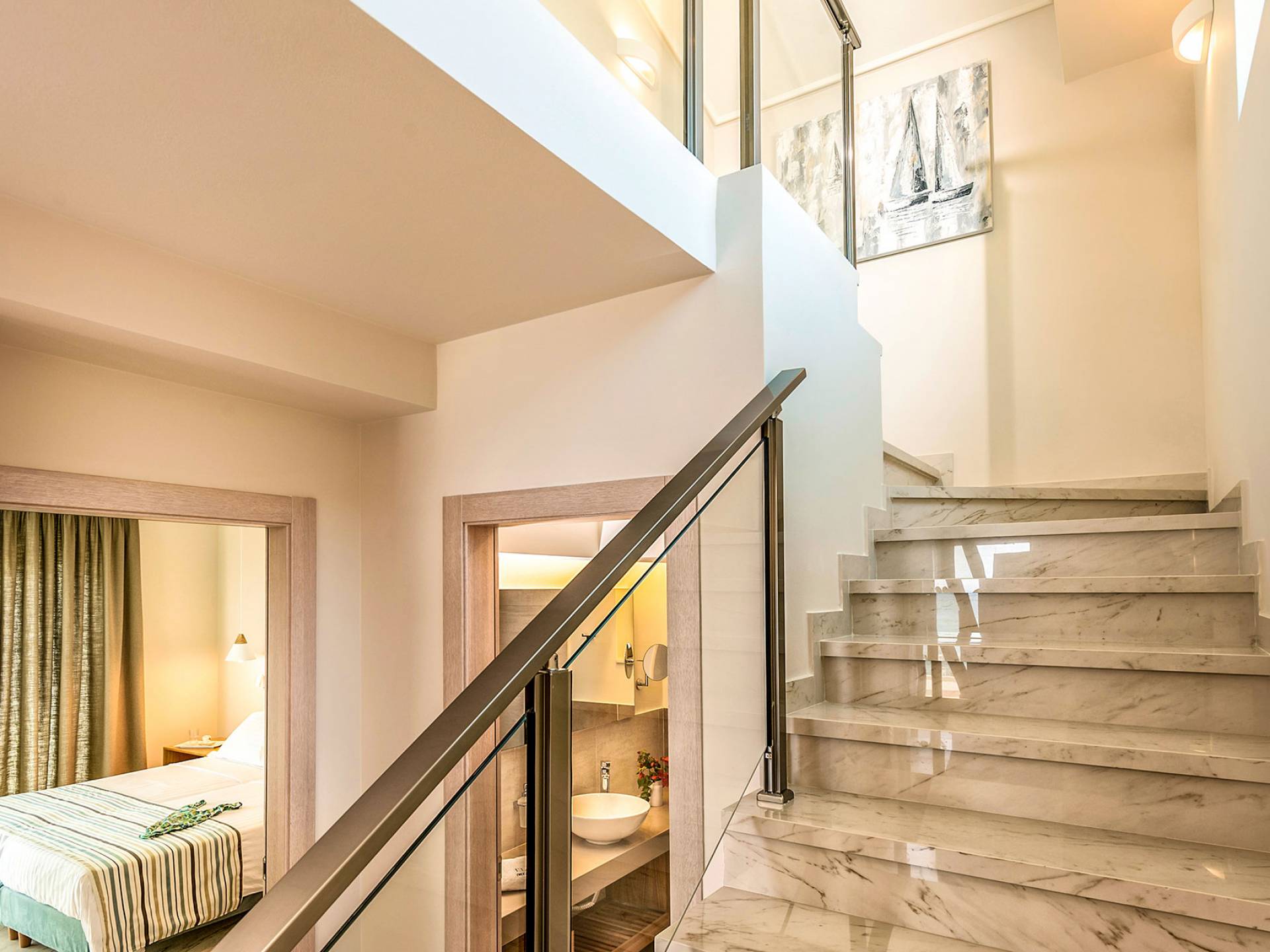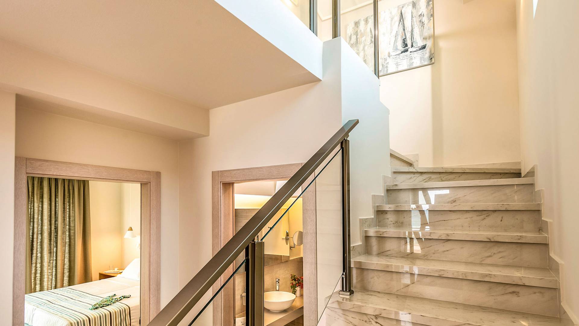 La planta baja consta de una amplia sala de estar y cocina de planta abierta que está equipada con modernos electrodomésticos y utensilios de cocina de excelente calidad. En el mismo nivel hay 3 dormitorios todos con baños en suite y vistas al mar. En la primera planta hay otro dormitorio con baño en suite. Este dormitorio cuenta con la terraza más grande de la villa con una impresionante vista al mar.