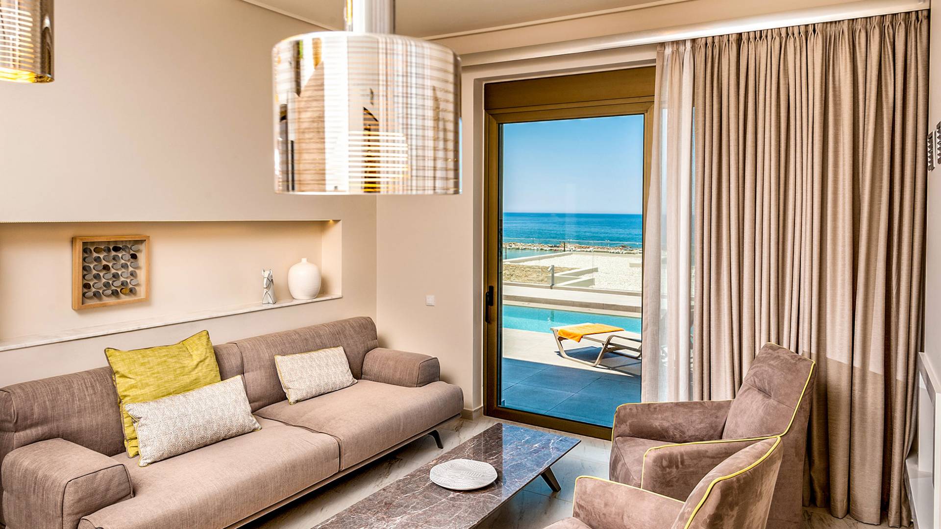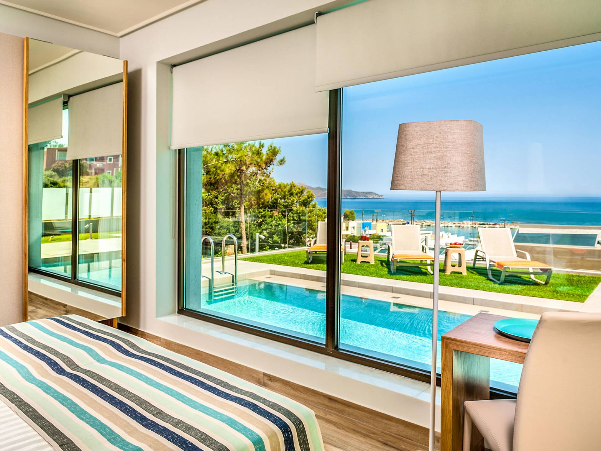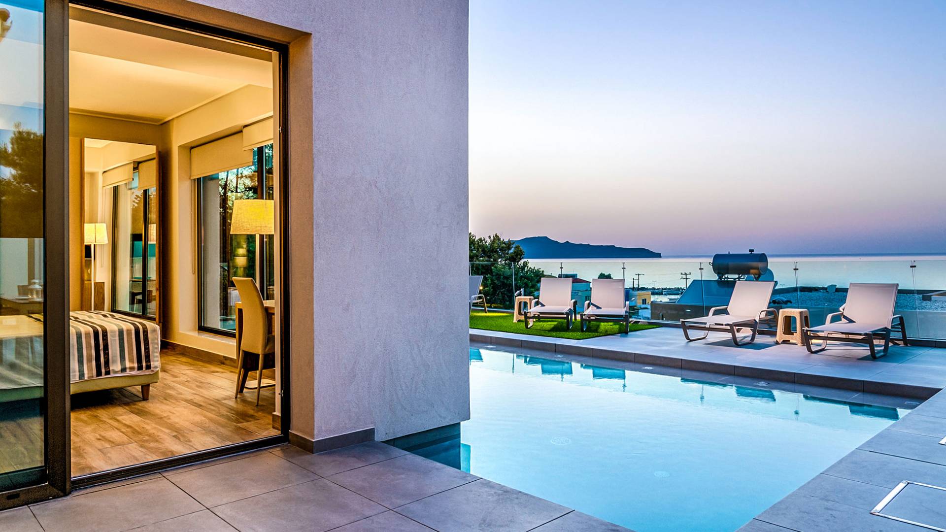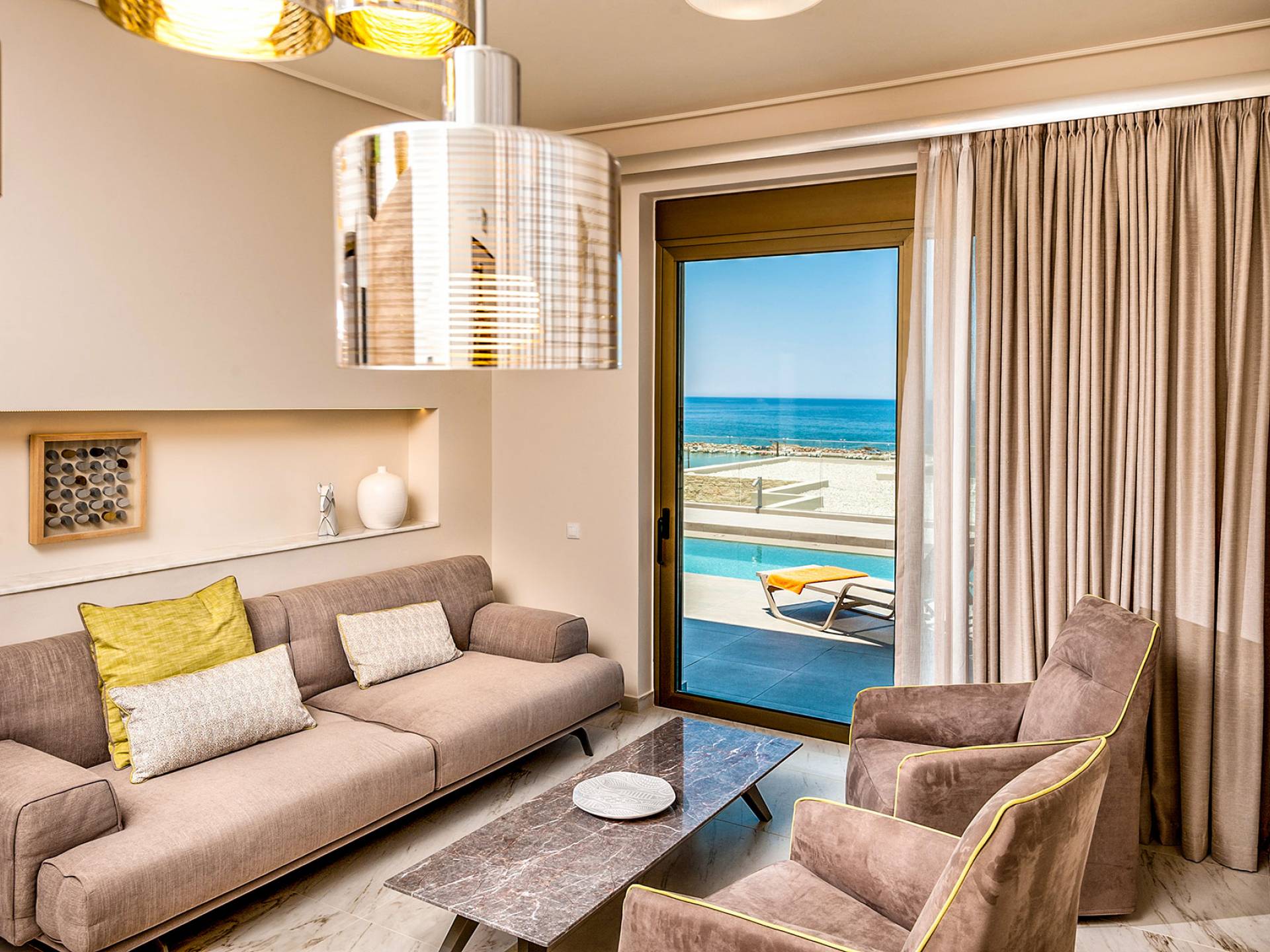 Alojarse en una villa en Kalamaki significa despertar con el suave sonido del mar y disfrutar el café de la mañana con vistas panorámicas al mar Egeo. Con piscinas privadas, terrazas soleadas y la libertad de ir a tu propio ritmo, tu villa se convierte en una parte esencial de la experiencia, no solo un lugar donde dormir.