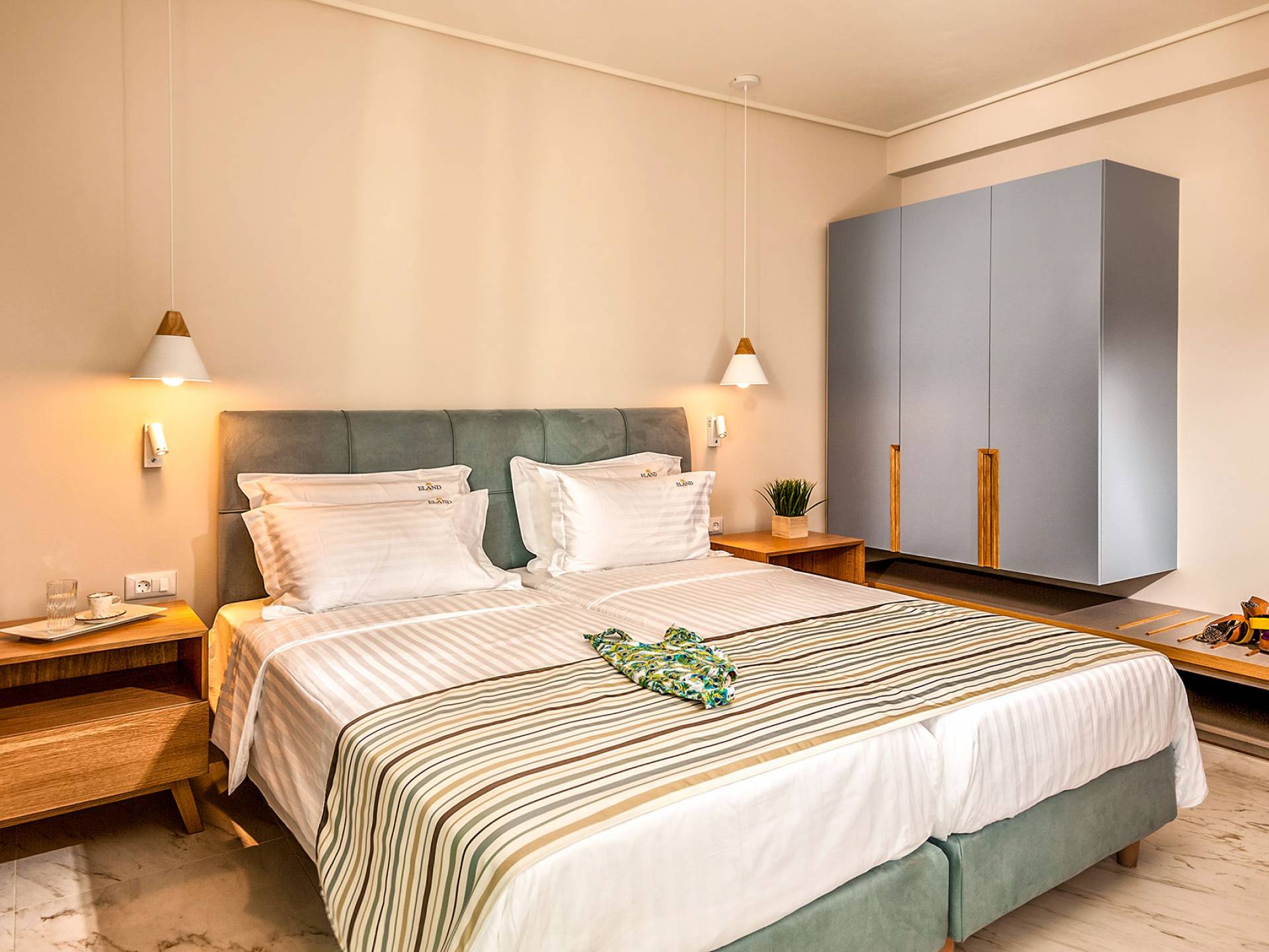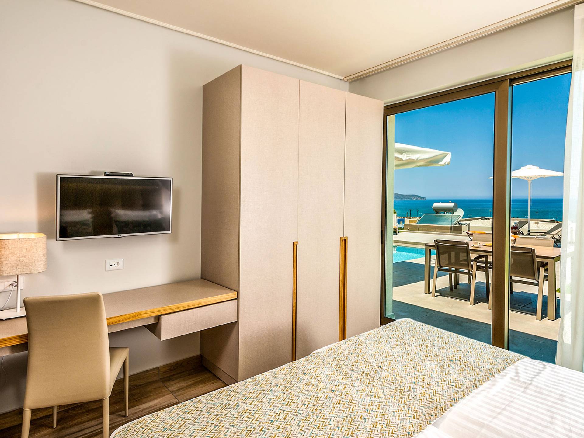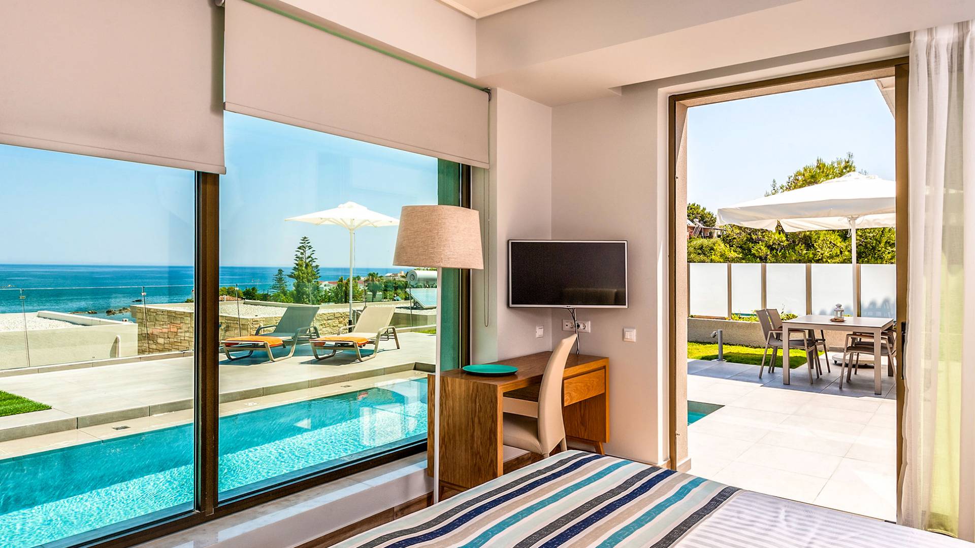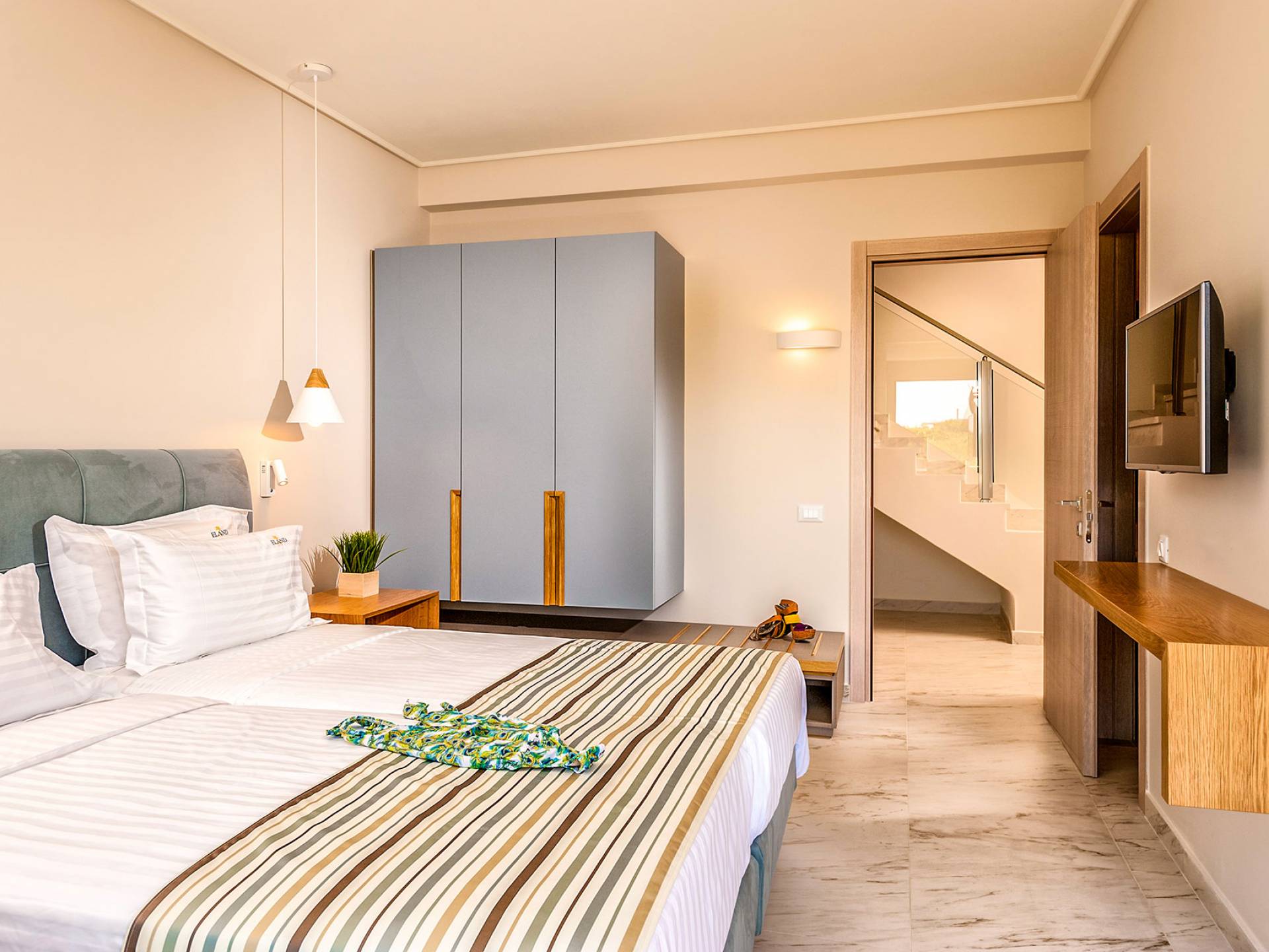 Alojarse en una villa en Kalamaki significa despertar con el suave sonido del mar y disfrutar el café de la mañana con vistas panorámicas al mar Egeo. Con piscinas privadas, terrazas soleadas y la libertad de ir a tu propio ritmo, tu villa se convierte en una parte esencial de la experiencia, no solo un lugar donde dormir.