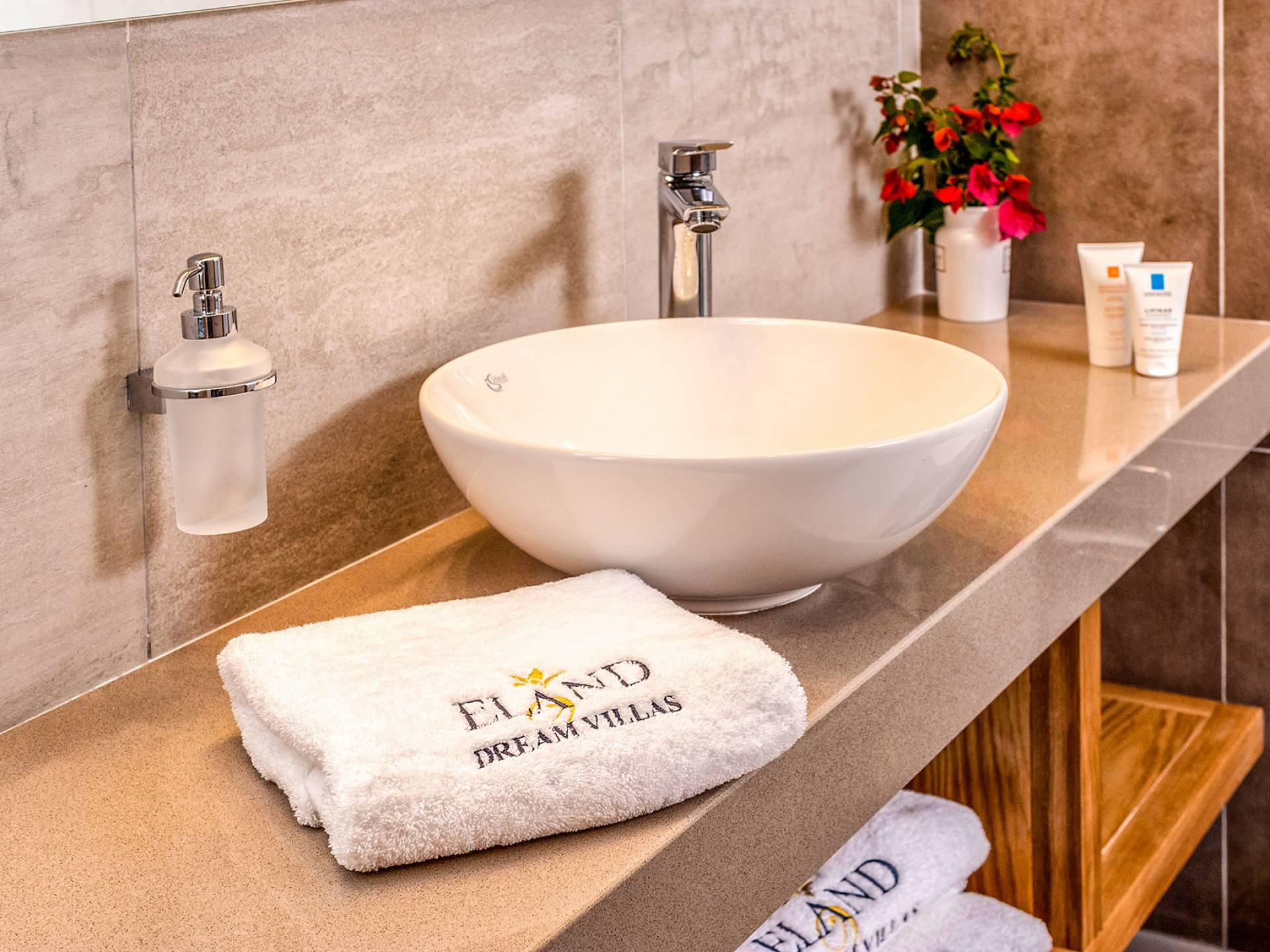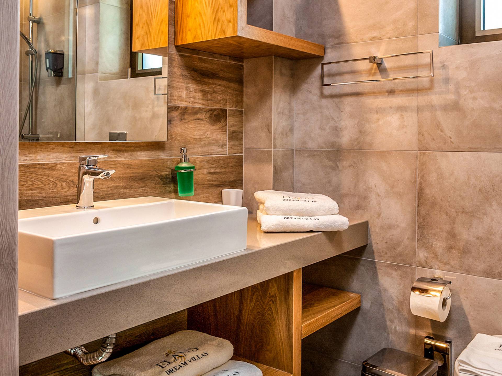 Eland Villa Avra tiene una superficie de 160 metros cuadrados y puede alojar de 8 a 10 personas en 5 habitaciones con baño.
