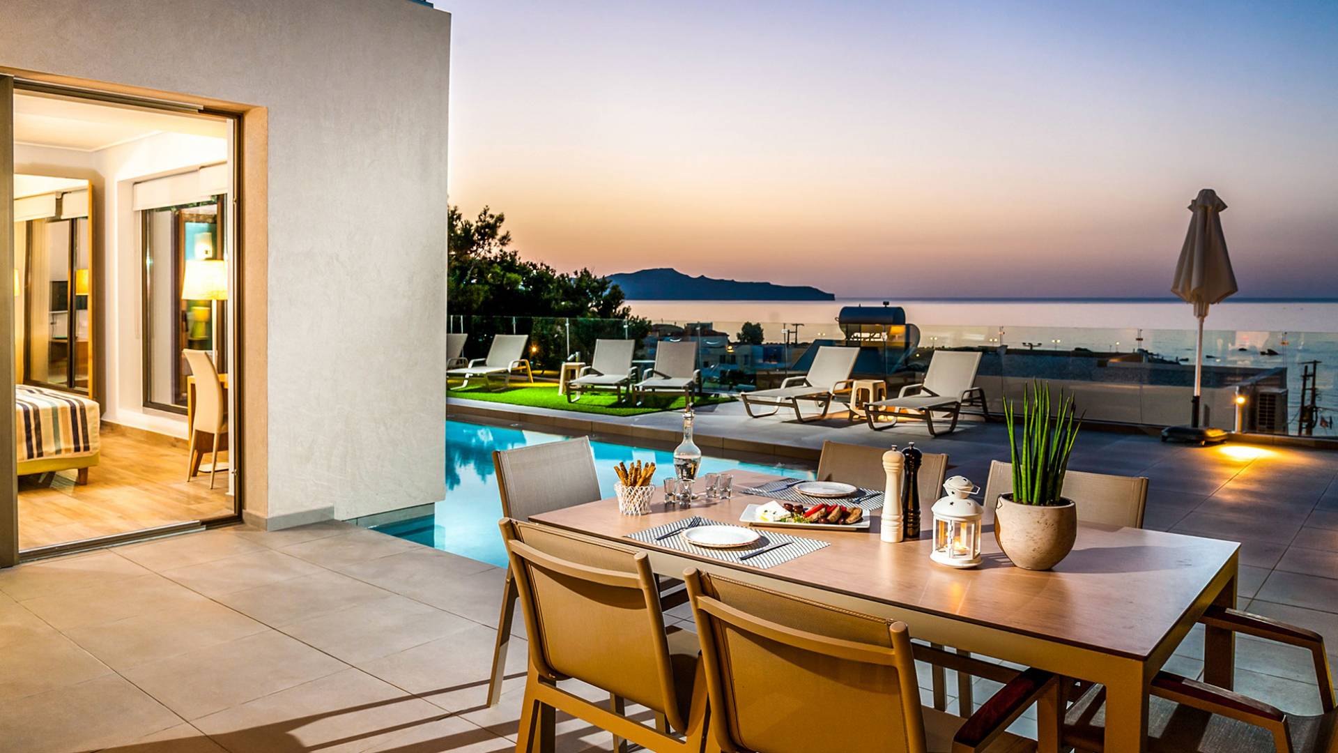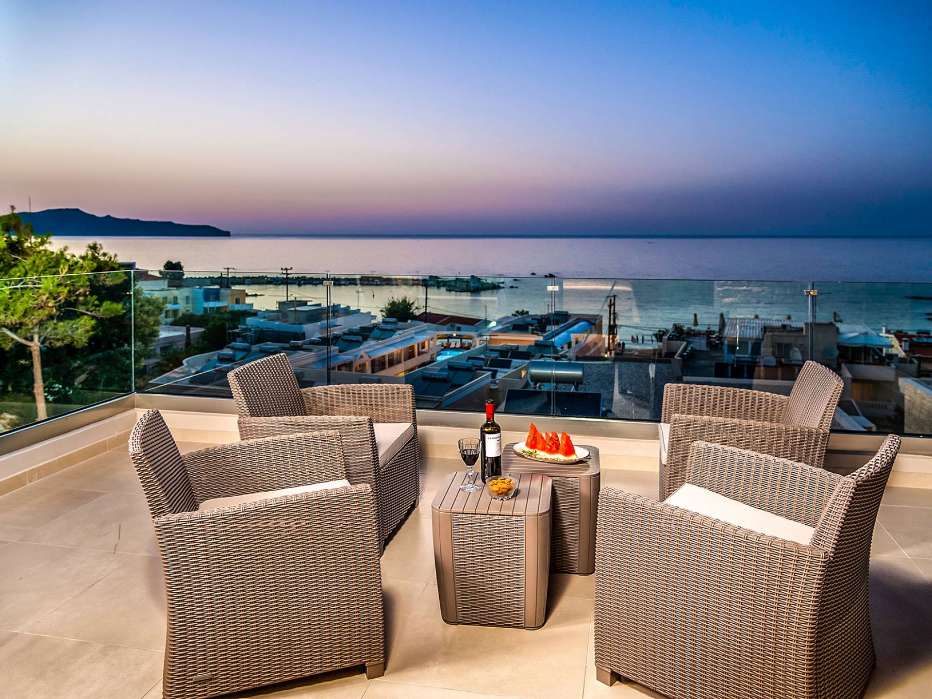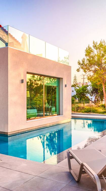 Kalamaki es especialmente popular entre las familias. La playa, de aguas poco profundas y arena suave, es segura y divertida para los más pequeños. Muchas villas están equipadas con comodidades pensadas para niños, como cunas, tronas y piscinas con vallas de seguridad. Los niños pueden jugar en la arena, chapotear en el mar o explorar senderos naturales cercanos. Y para aventuras en familia, hay atracciones como el parque acuático Limnoupolis o el Acuario de Creta, ambos a poca distancia en coche.