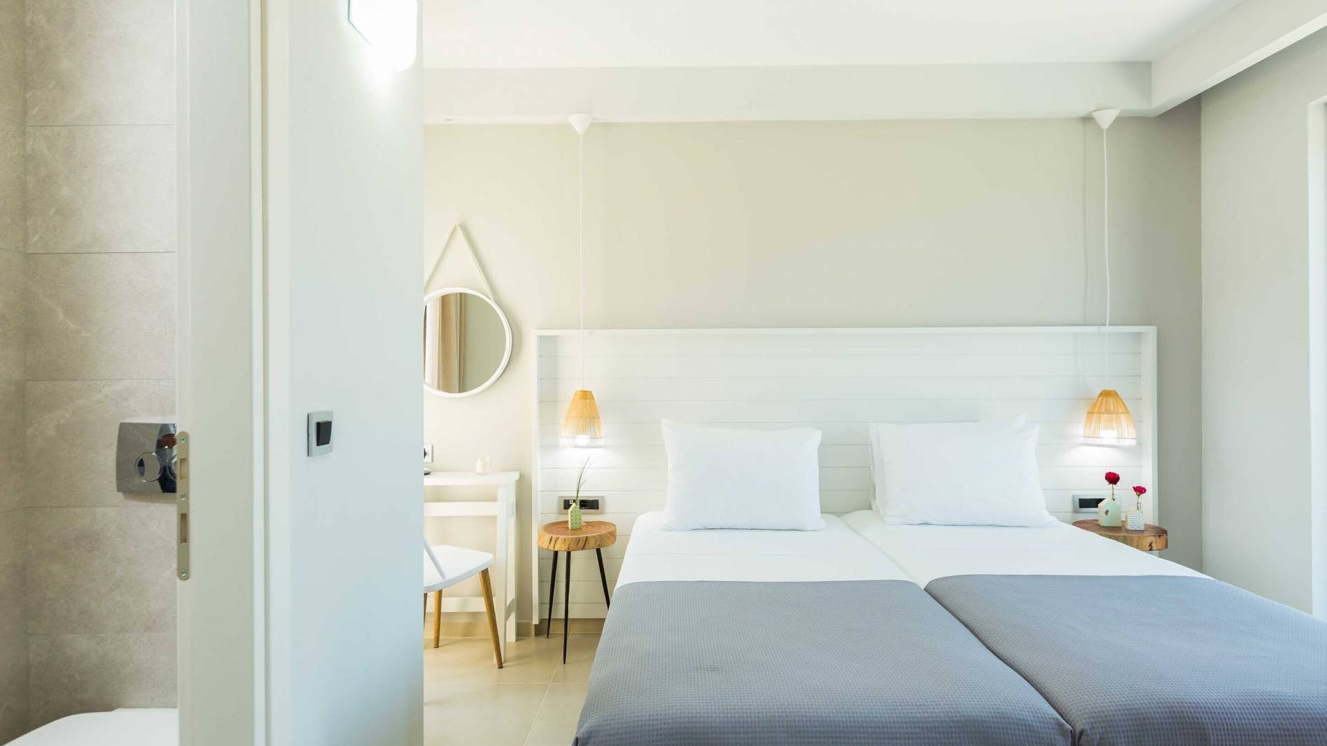 - Bedroom 2: Twin beds (convertible to double), ensuite, Smart TV, sea-view balcony
