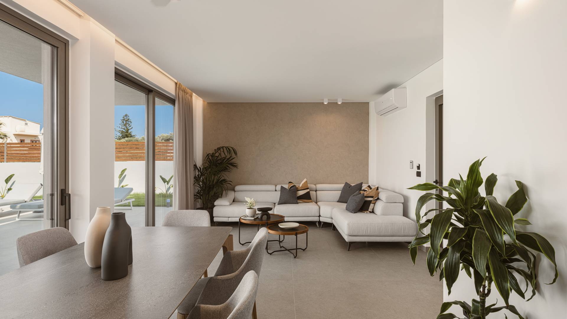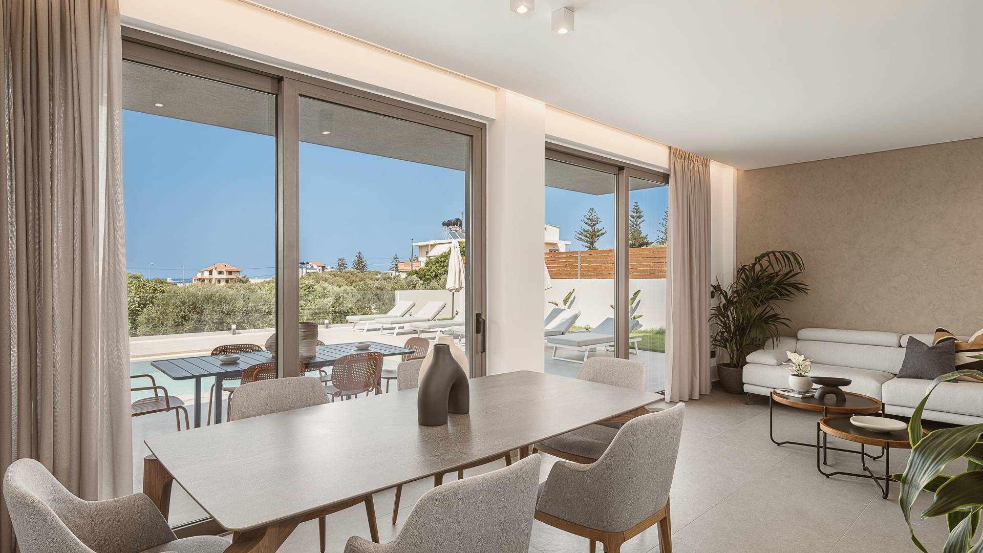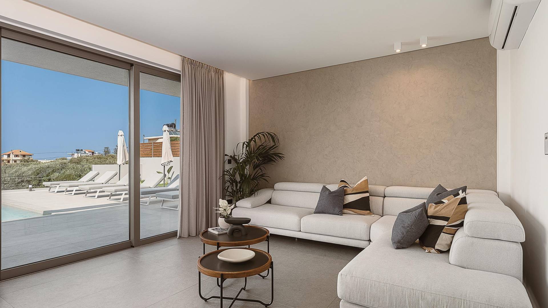 Alojarse en una villa en Kalamaki significa despertar con el suave sonido del mar y disfrutar el café de la mañana con vistas panorámicas al mar Egeo. Con piscinas privadas, terrazas soleadas y la libertad de ir a tu propio ritmo, tu villa se convierte en una parte esencial de la experiencia, no solo un lugar donde dormir.