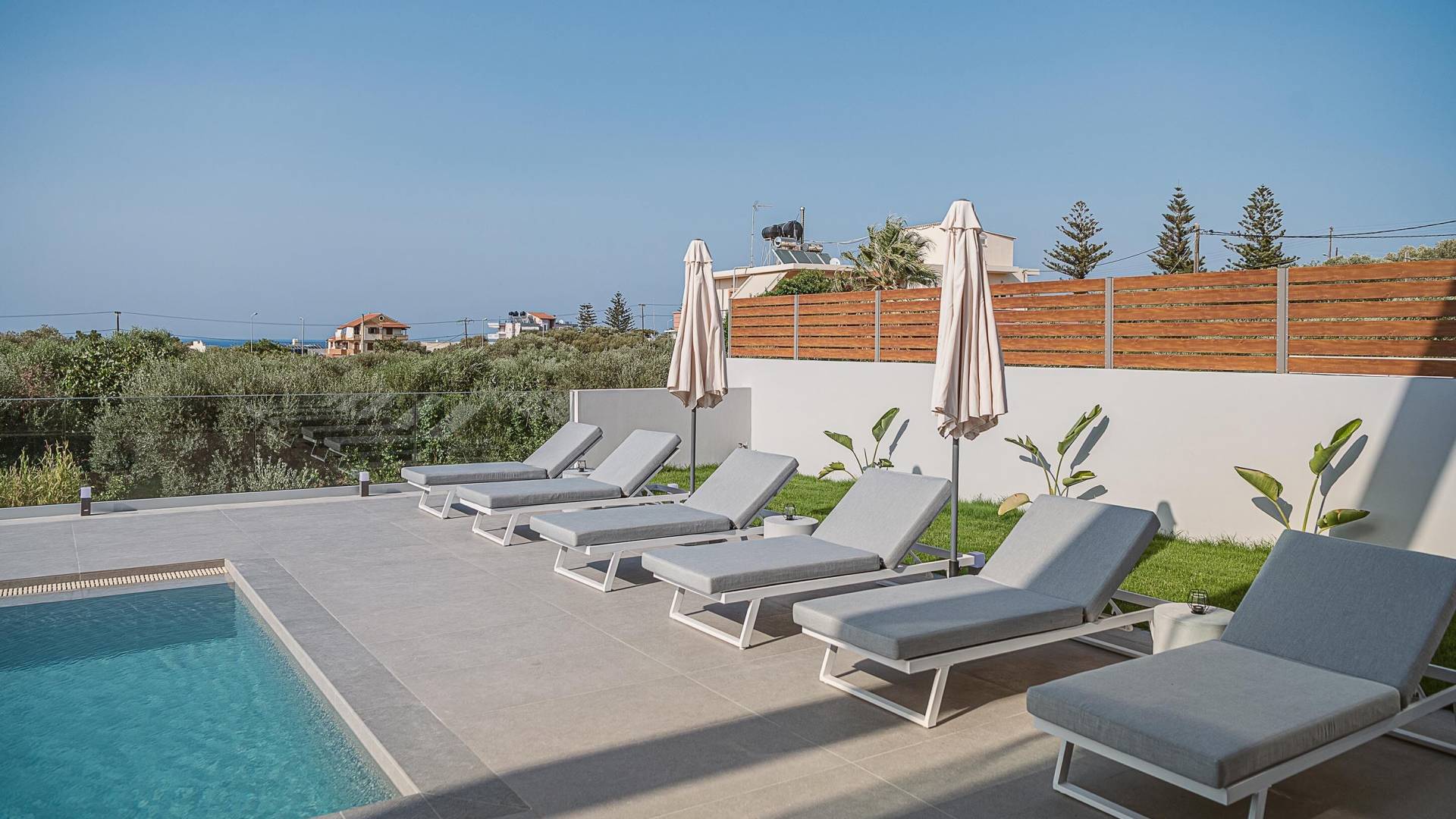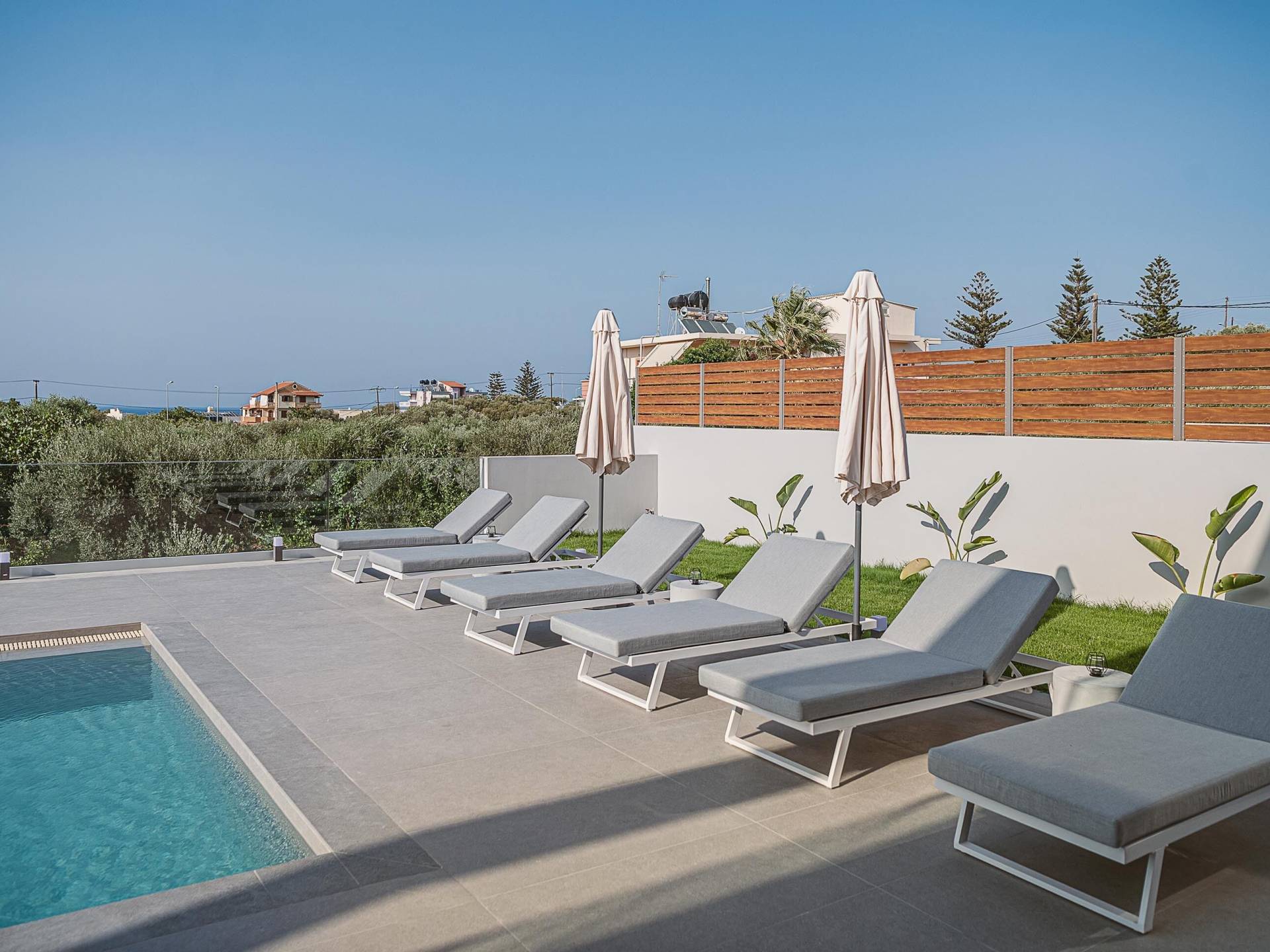 Kalamaki es especialmente popular entre las familias. La playa, de aguas poco profundas y arena suave, es segura y divertida para los más pequeños. Muchas villas están equipadas con comodidades pensadas para niños, como cunas, tronas y piscinas con vallas de seguridad. Los niños pueden jugar en la arena, chapotear en el mar o explorar senderos naturales cercanos. Y para aventuras en familia, hay atracciones como el parque acuático Limnoupolis o el Acuario de Creta, ambos a poca distancia en coche.