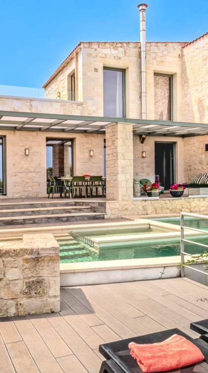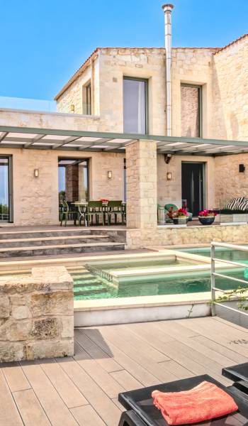 Faidra Villa Chania es una casa de piedra moderna construida en una impresionante ubicación privada rodeada de olivos, árboles frutales y hierbas. Se encuentra a poca distancia de la playa y de todos los servicios locales.