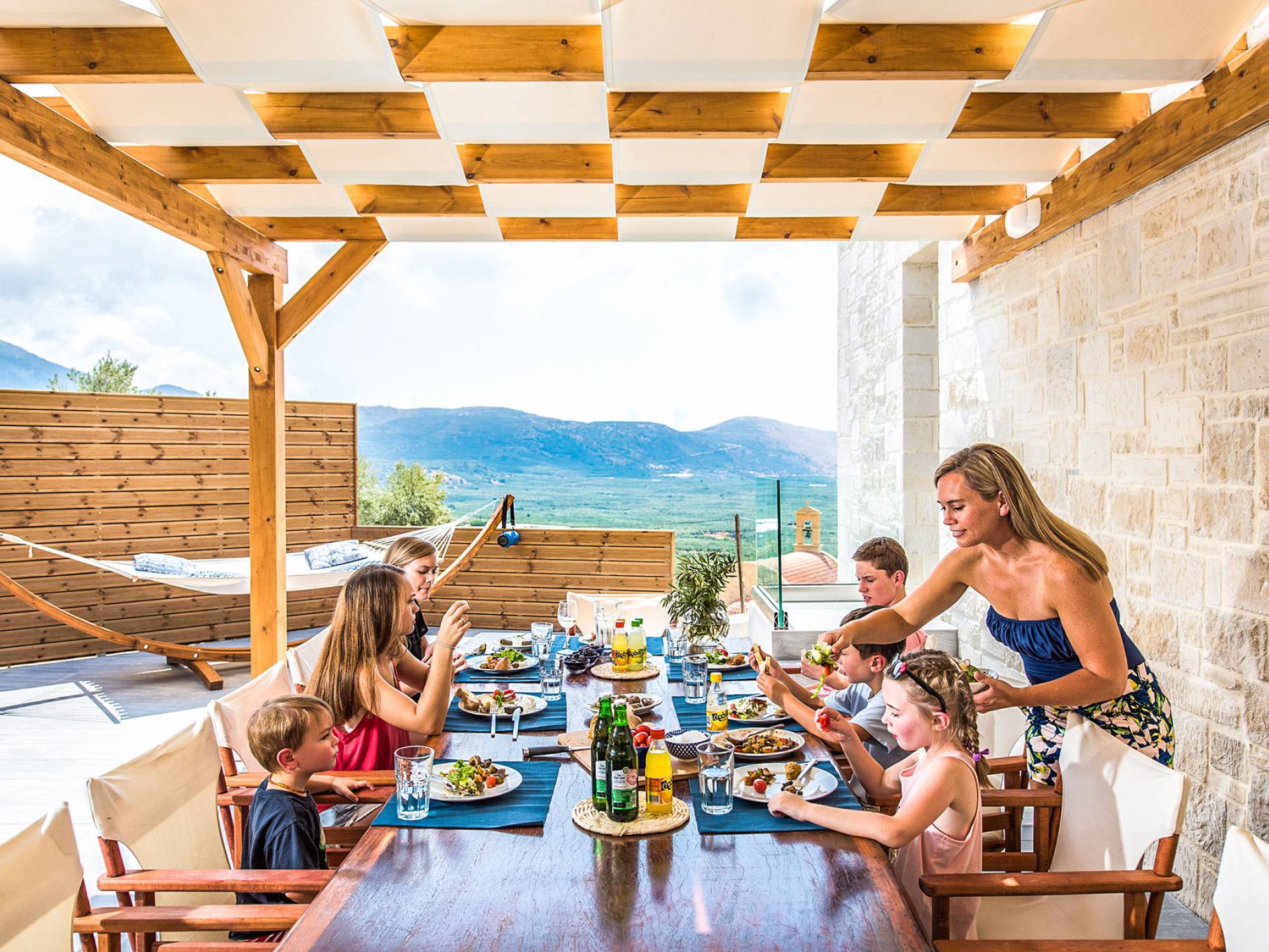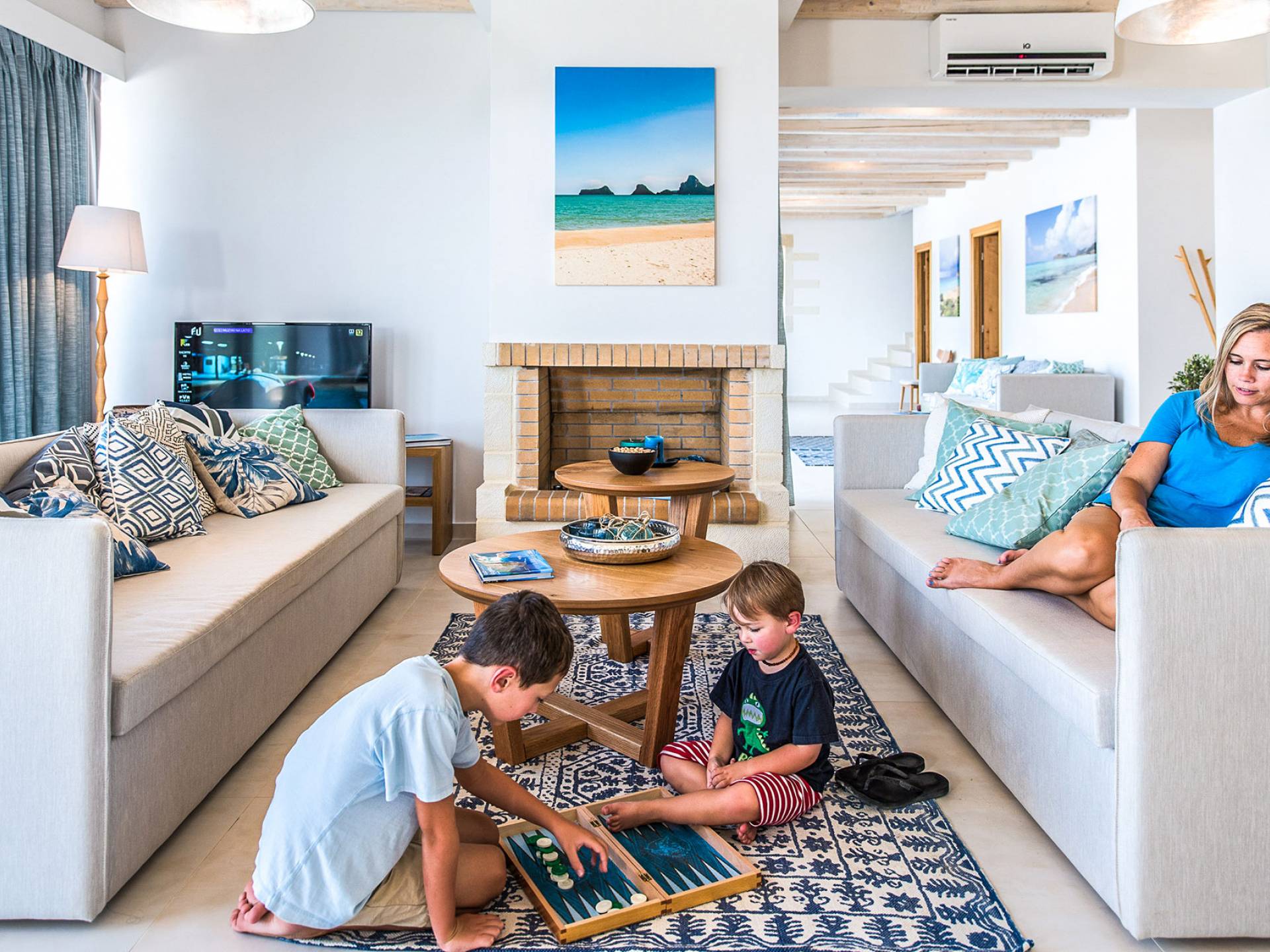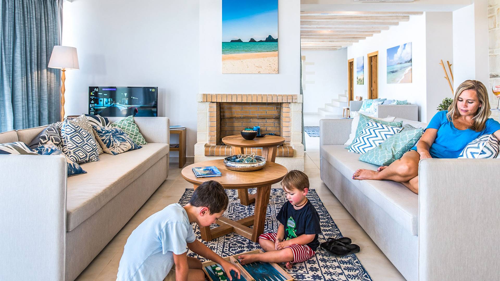 Falassarna también es un destino ideal para familias. Las aguas poco profundas y las olas suaves permiten que los más pequeños jueguen y naden con seguridad. Los niños mayores disfrutarán construyendo castillos de arena, explorando pequeñas pozas o probando el paddle surf. Muchas de nuestras villas están equipadas para familias, con cunas, sillas altas y piscinas con sistemas de seguridad. Además, las tabernas locales suelen tener menús para niños y un trato especialmente cálido y acogedor.