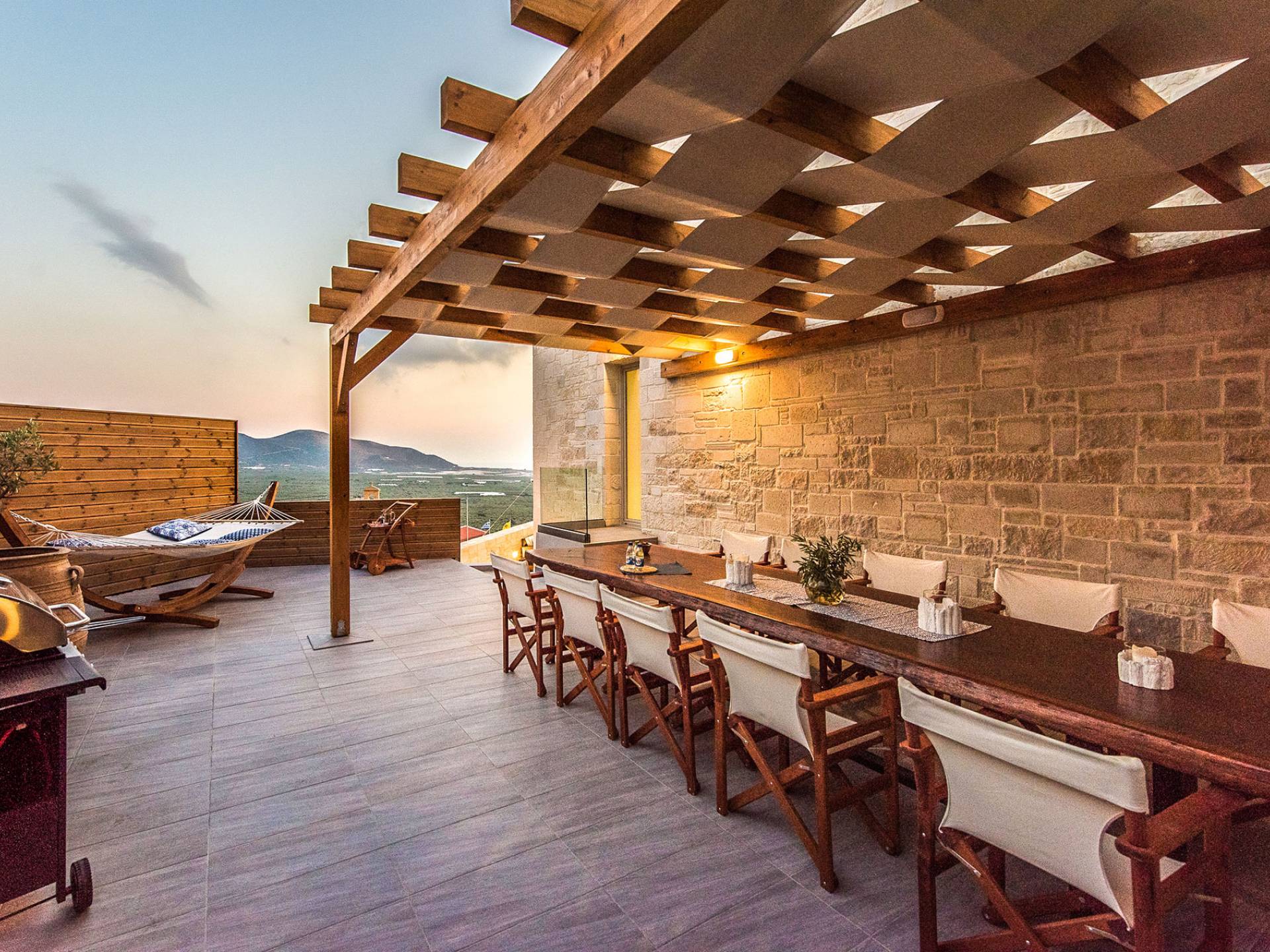 Las dos villas de 5 dormitorios están una al lado de la otra con acceso entre ellas para que pueda disfrutar plenamente de las villas de ambas vacaciones si es un grupo grande de amigos. Falasarna Luxury Villa es una excelente opción para una familia o un grupo de amigos que desean pasar sus vacaciones en una villa de vacaciones tranquila y de calidad, muy cerca de las playas más hermosas de Creta, como Falassarna, Balos y Elafonissi. Es un lugar idílico donde el cielo azul cristalino se encuentra con los espléndidos colores de la playa.