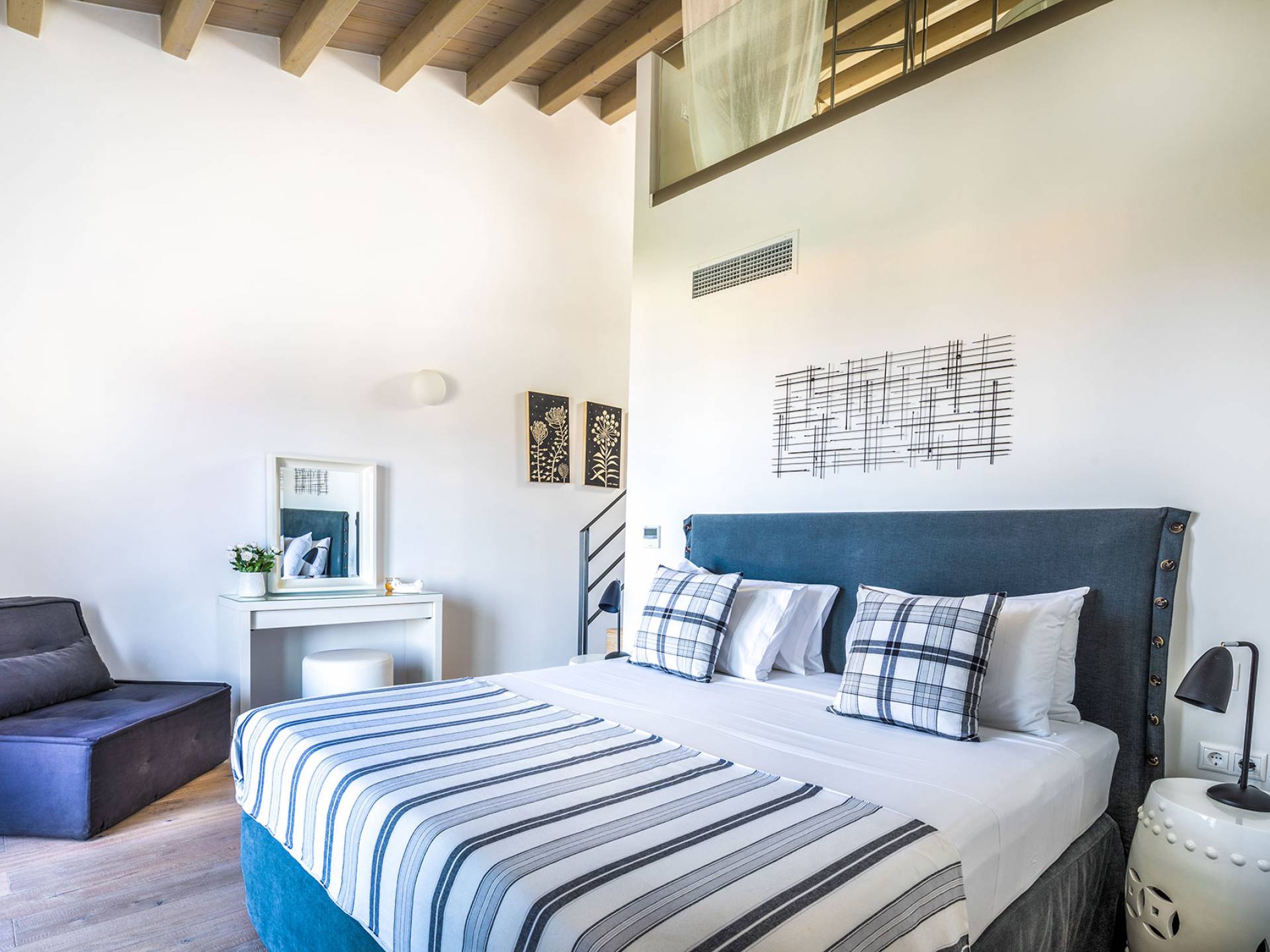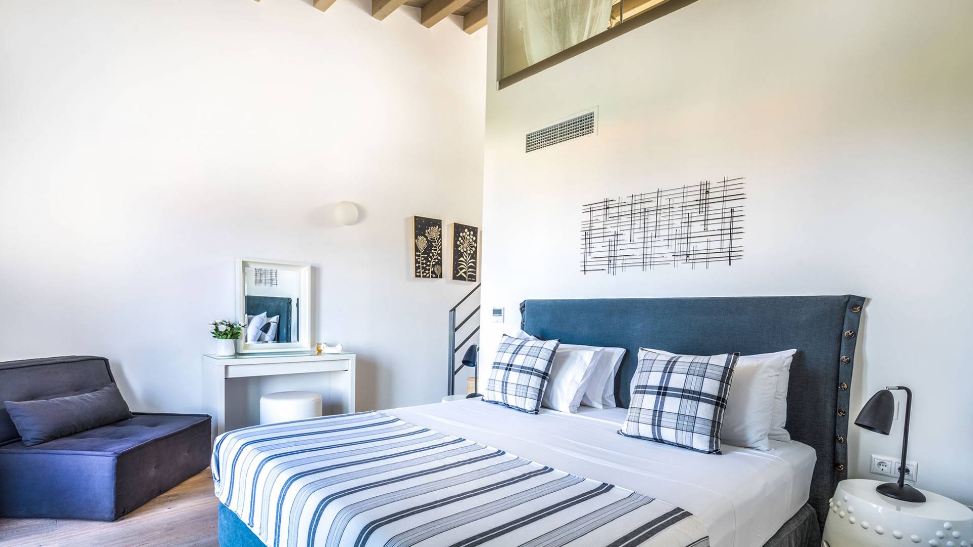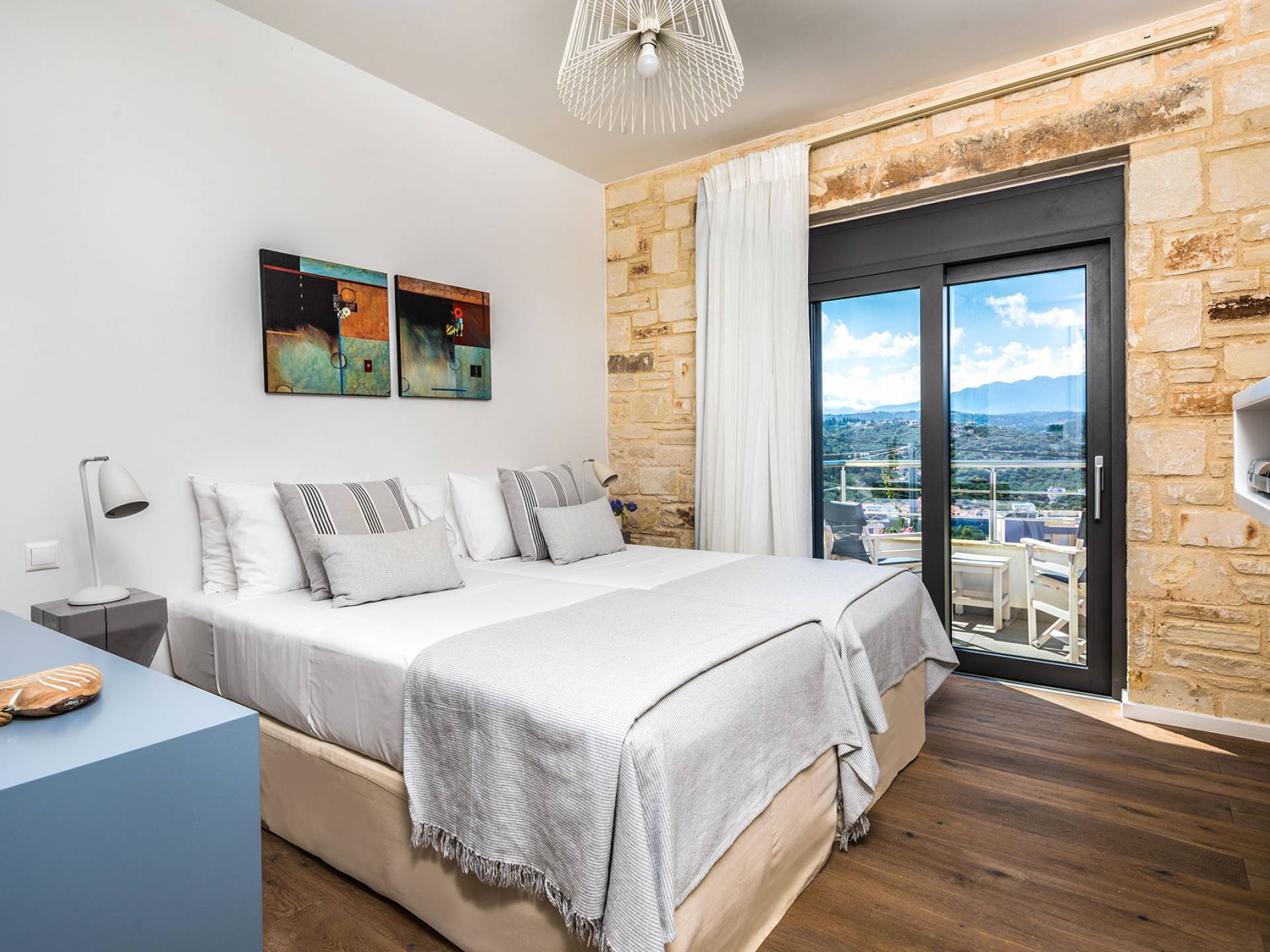La exquisita arquitectura, los muebles seleccionados, los tonos tierra, la mezcla de piedra y madera junto con las comodidades contemporáneas añaden una sensación de calidez y comodidad a la atmósfera. Las cómodas camas hechas a mano de Coco-Mat garantizan un sueño reparador, fundamental para unas vacaciones relajantes. ¡Sucumbir a los placeres de un alojamiento de lujo en Creta!