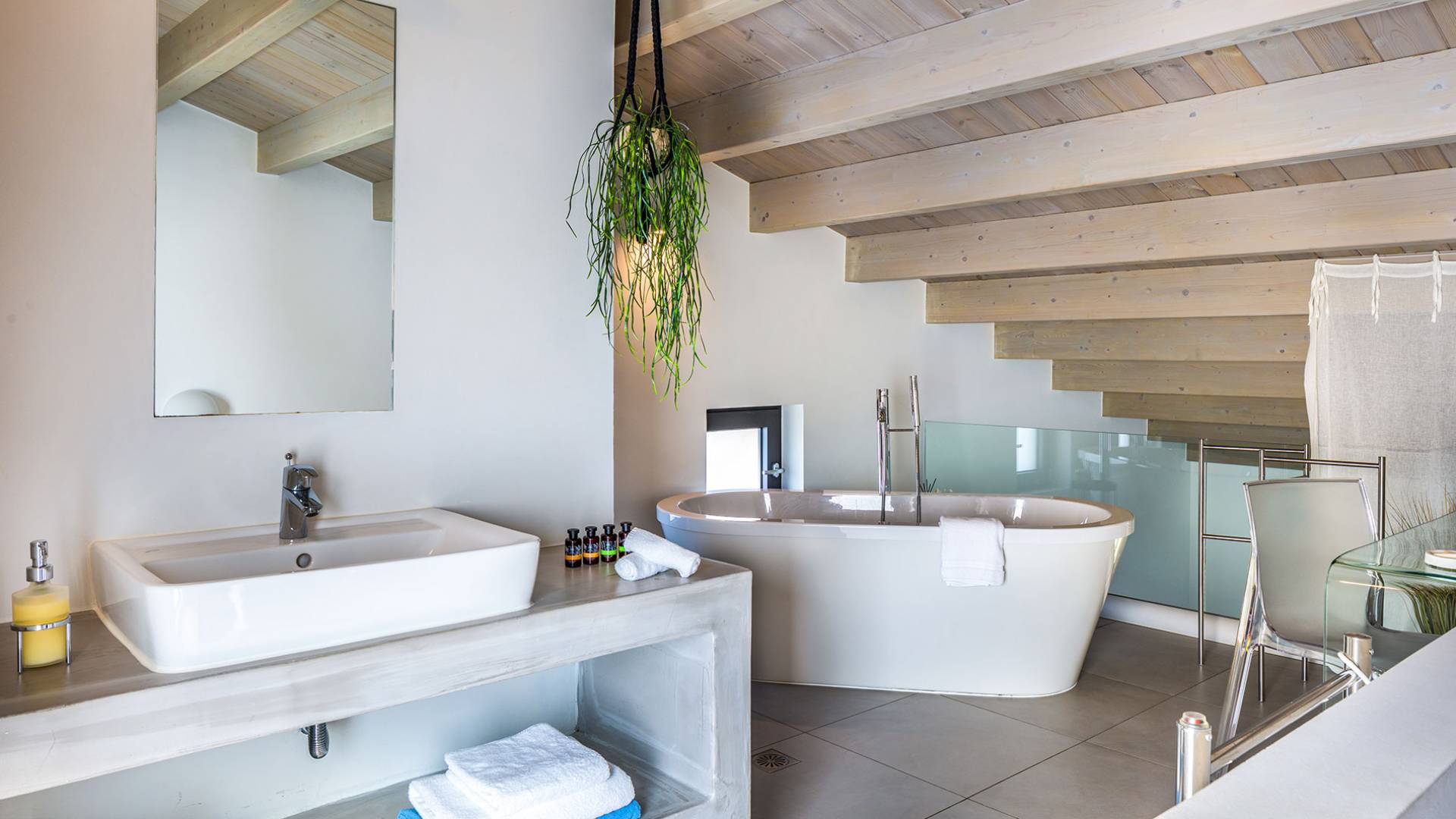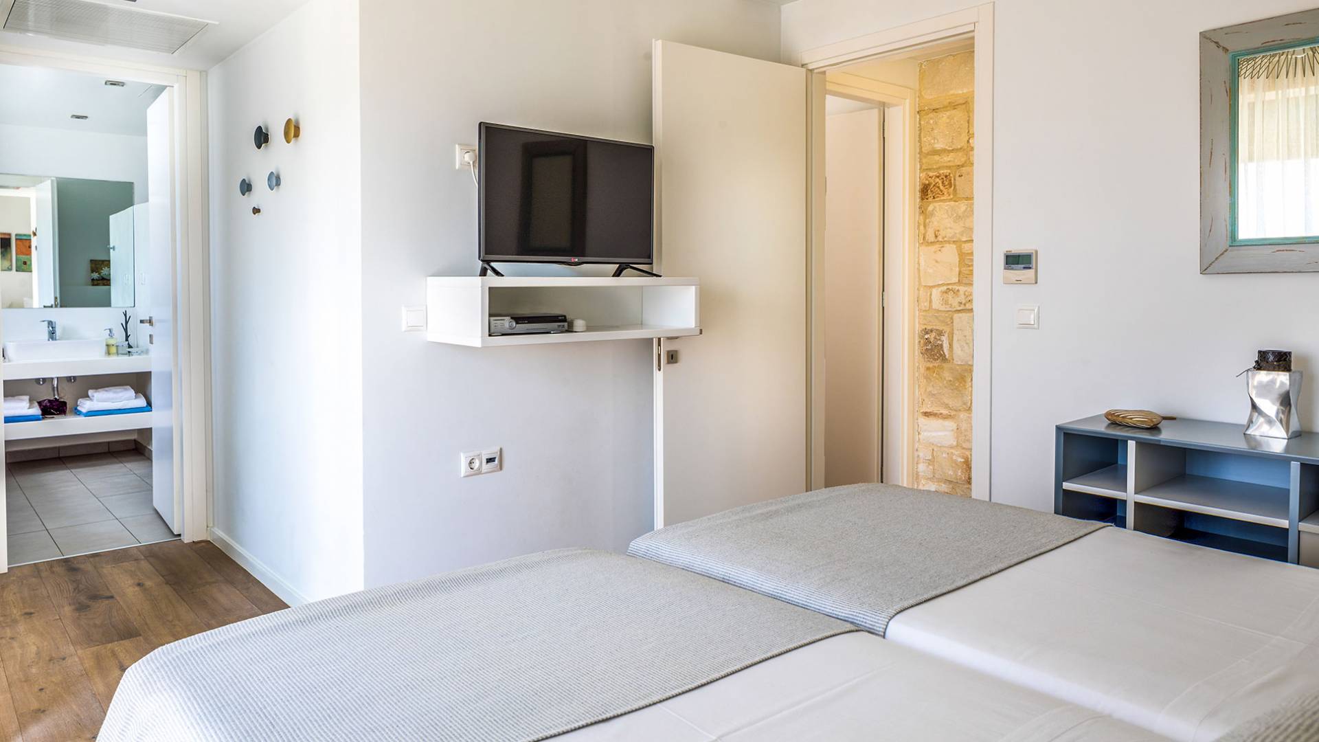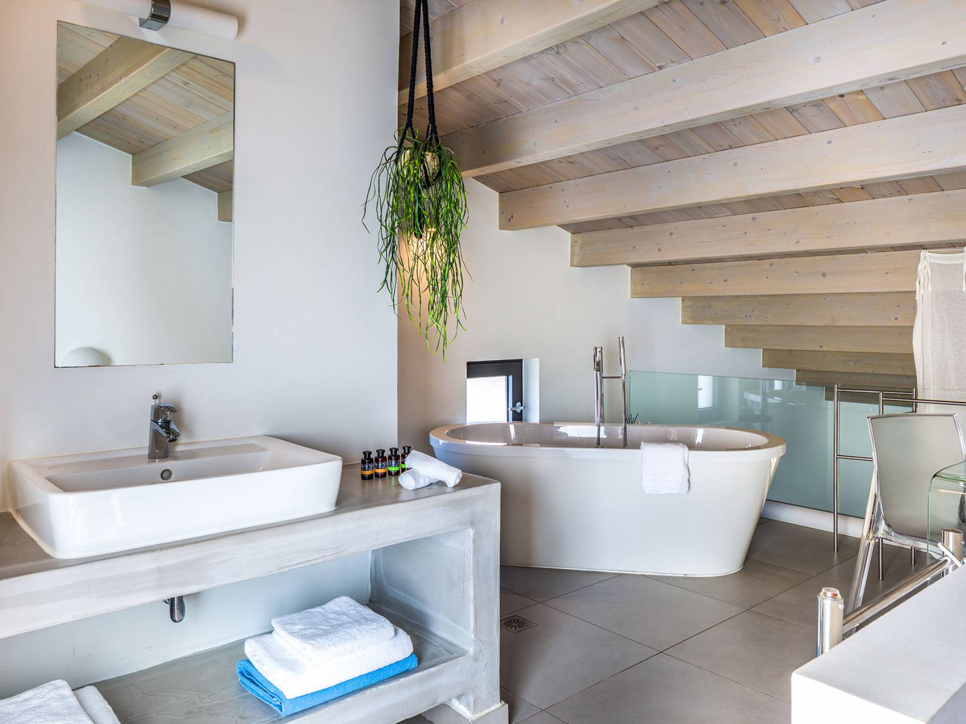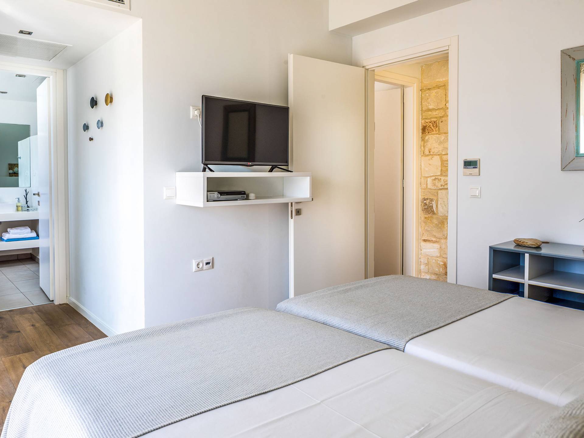 La exquisita arquitectura, los muebles seleccionados, los tonos tierra, la mezcla de piedra y madera junto con las comodidades contemporáneas añaden una sensación de calidez y comodidad a la atmósfera. Las cómodas camas hechas a mano de Coco-Mat garantizan un sueño reparador, fundamental para unas vacaciones relajantes. ¡Sucumbir a los placeres de un alojamiento de lujo en Creta!
