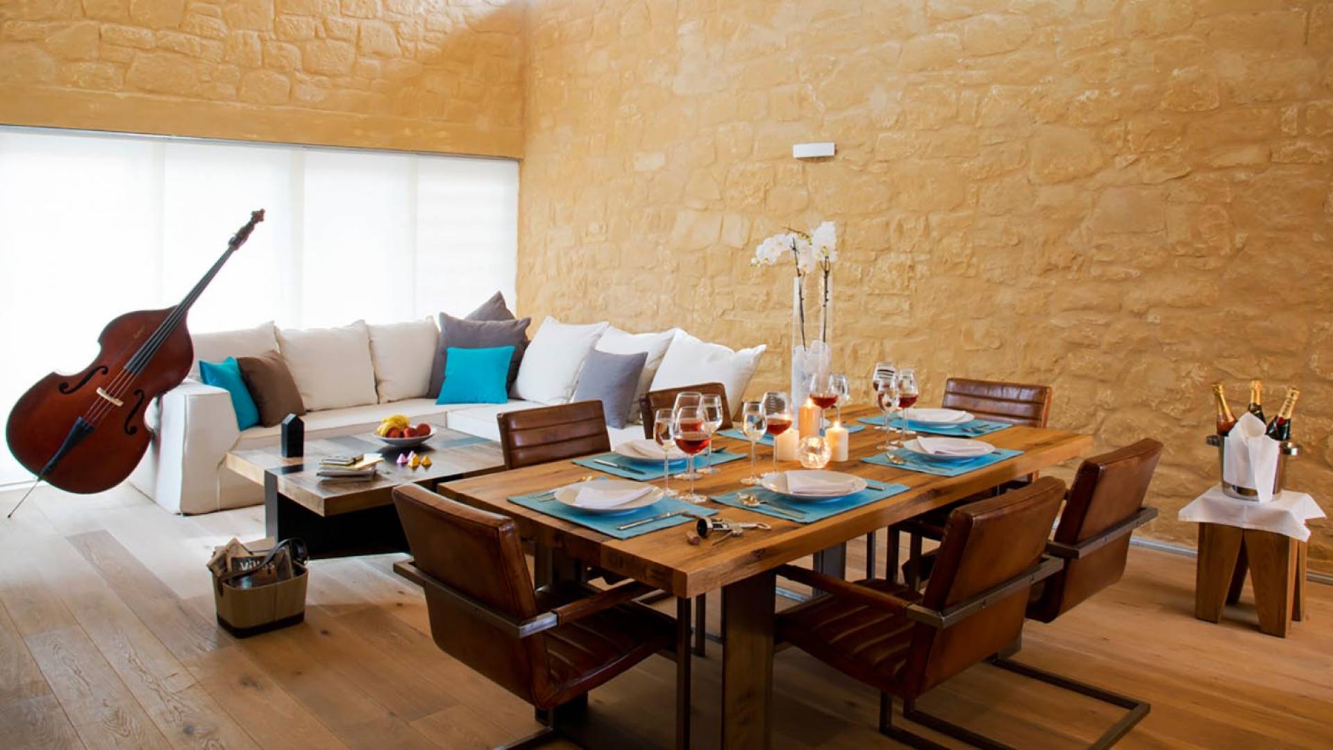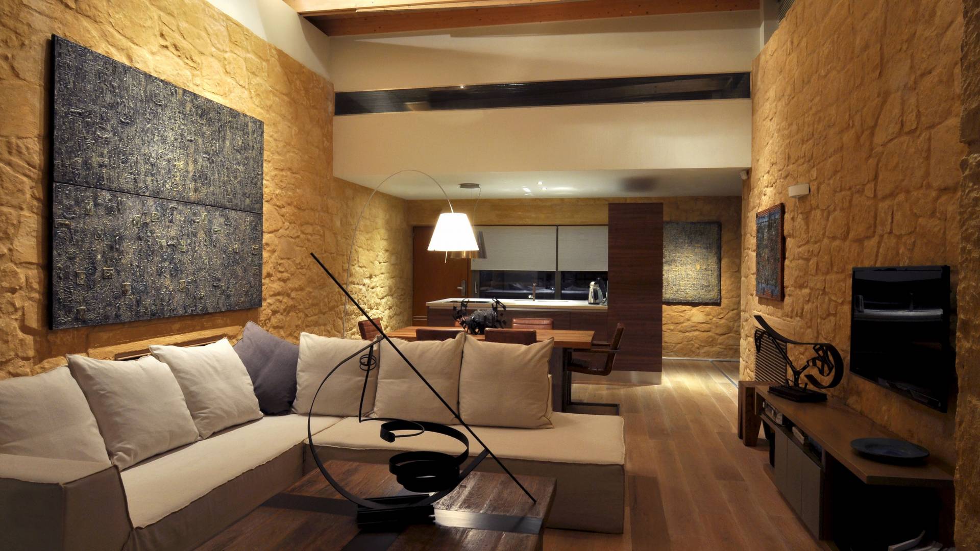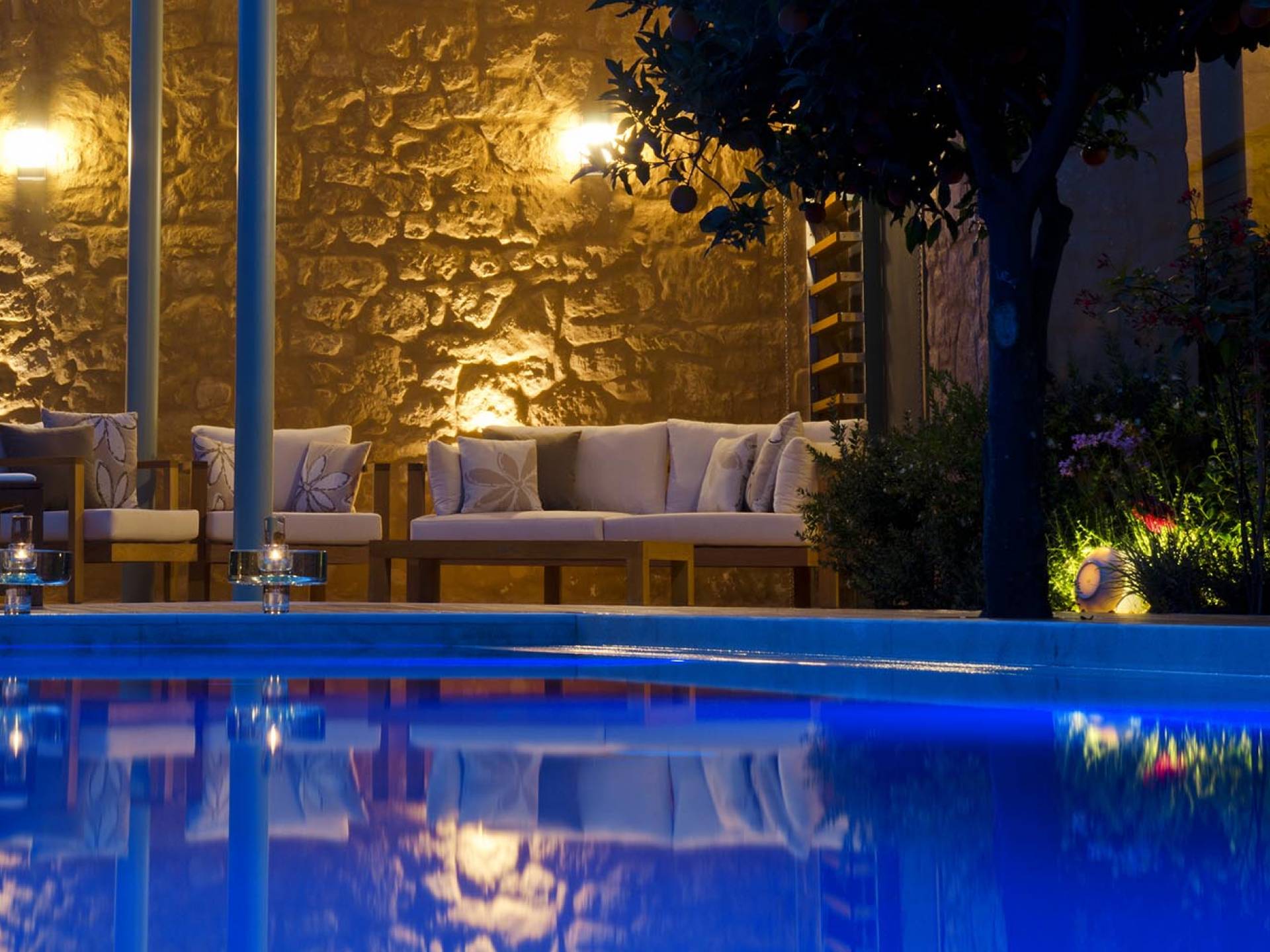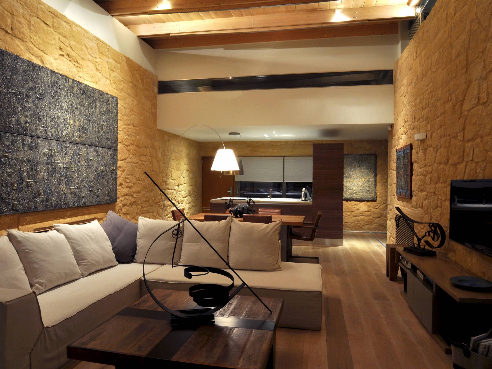 Combinando piedra, mármol, madera, vidrio, tierra y metal al detalle, hemos invitado a la naturaleza a entrar, para que el interior y el exterior coexistan en armonía y paz. Este logro en el diseño, combinado con muebles seleccionados a mano y diseñados exclusivamente por decoradores de interiores, ropa de cama de lujo y electrodomésticos modernos en todas partes, hace que Mandarina Villa Chania sea el mejor destino para una escapada en Creta. Rodeada de forma privada por patios con paredes de piedra, la Villa ofrece una vista completa de las panorámicas colinas de Creta, los vastos olivares y naranjos y las blancas montañas de Creta. Como reflejo de esta vista, la Villa está construida de forma transparente con piedra rica e inundada de luz natural creando un ambiente tranquilo en su interior.