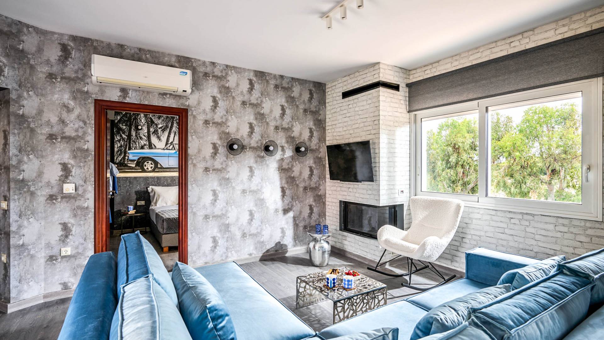 - Una sala de estar elegante con una chimenea, perfecta para las noches acogedoras