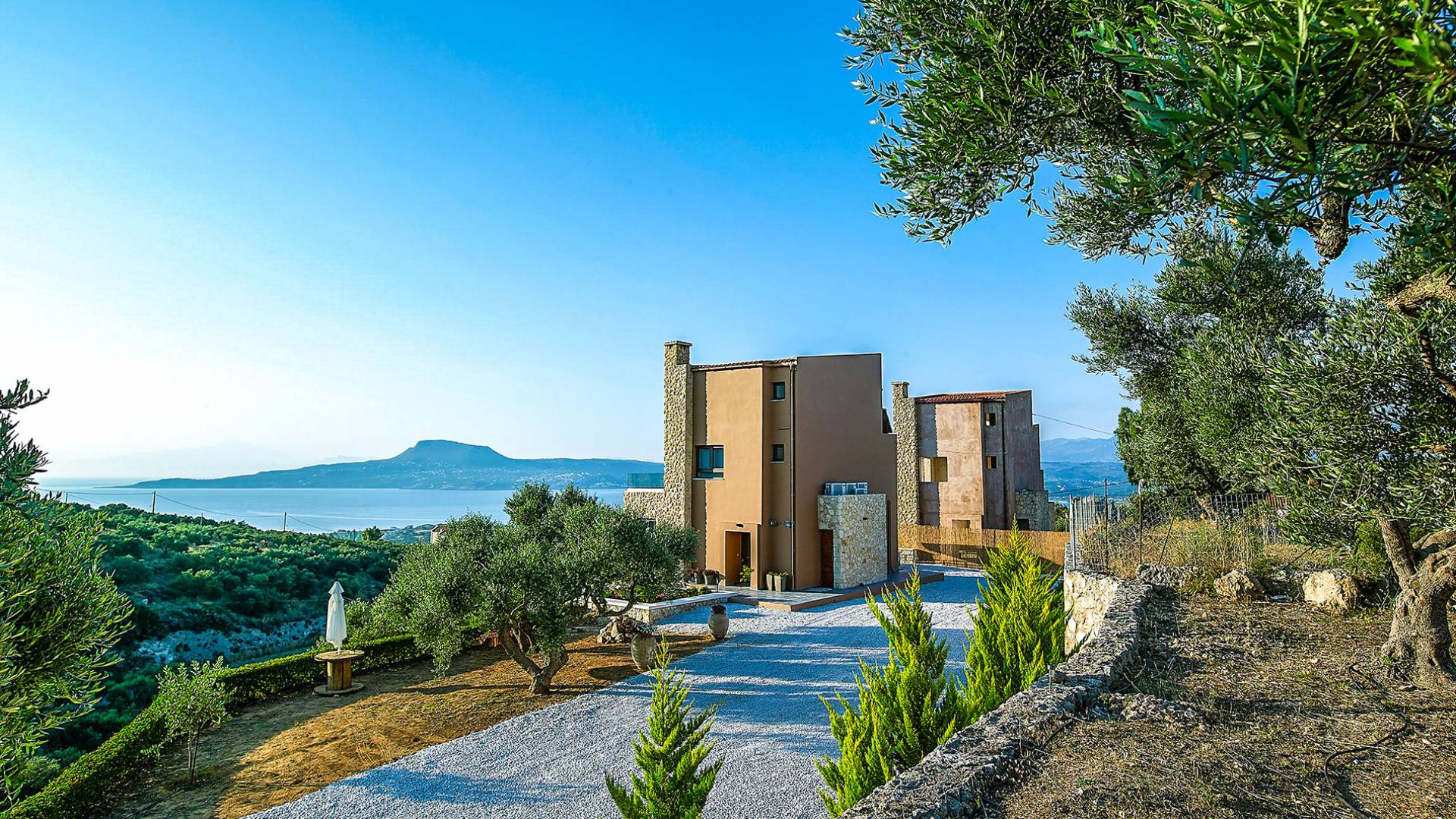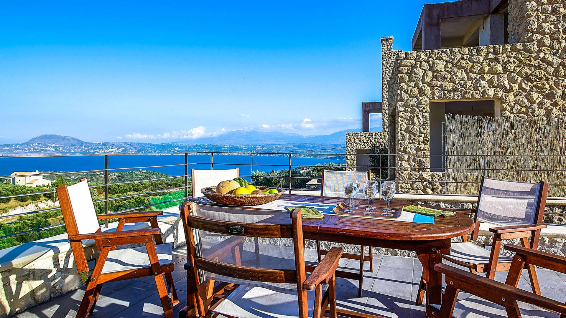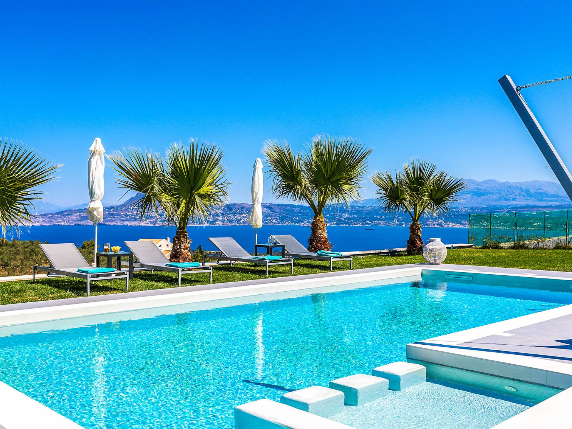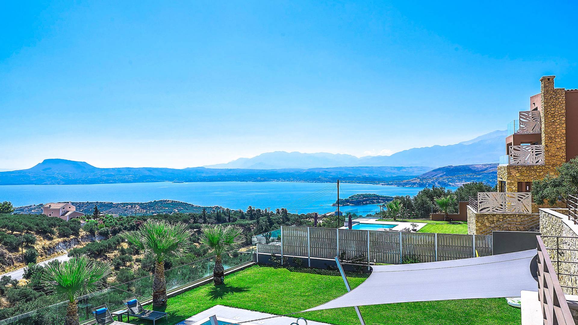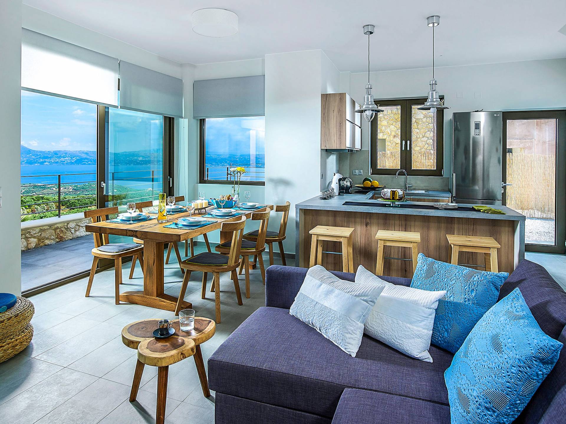 Niolos Villas Crete están construidas en una ladera y nada puede interrumpir la vista panorámica del mar y las montañas de Creta. Contemplar la bahía de Souda y la montaña Lefka Ori te ofrece serenidad y paz. Desde cada sección de las villas de Niolos, la vista es impresionante.