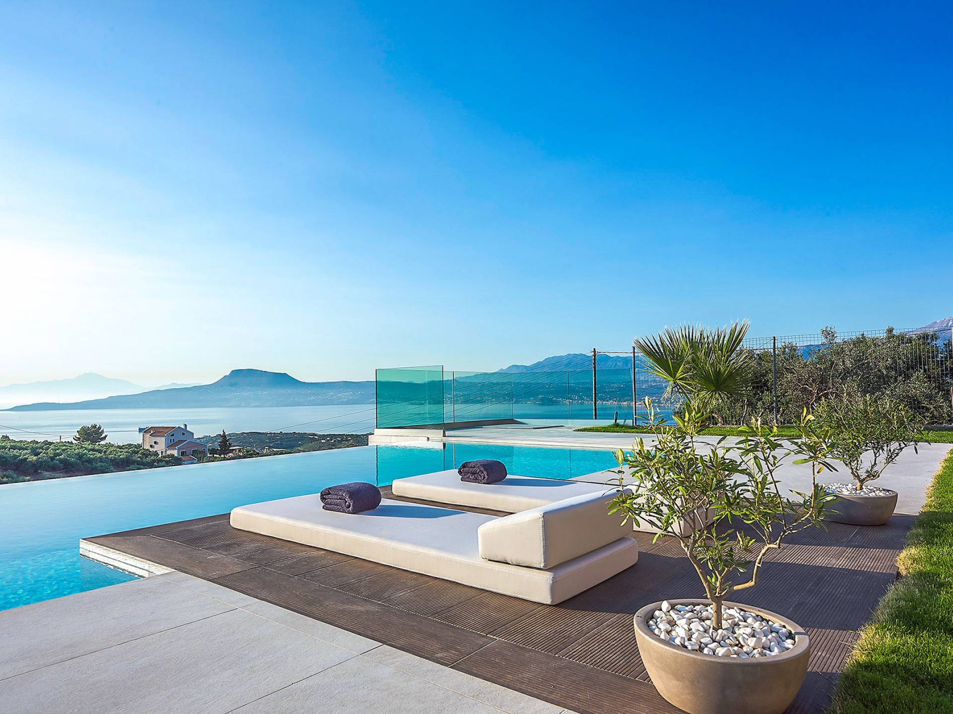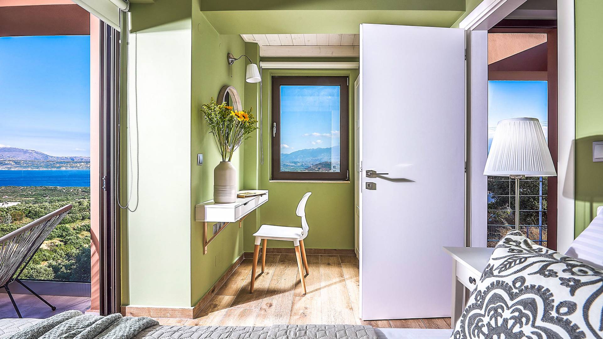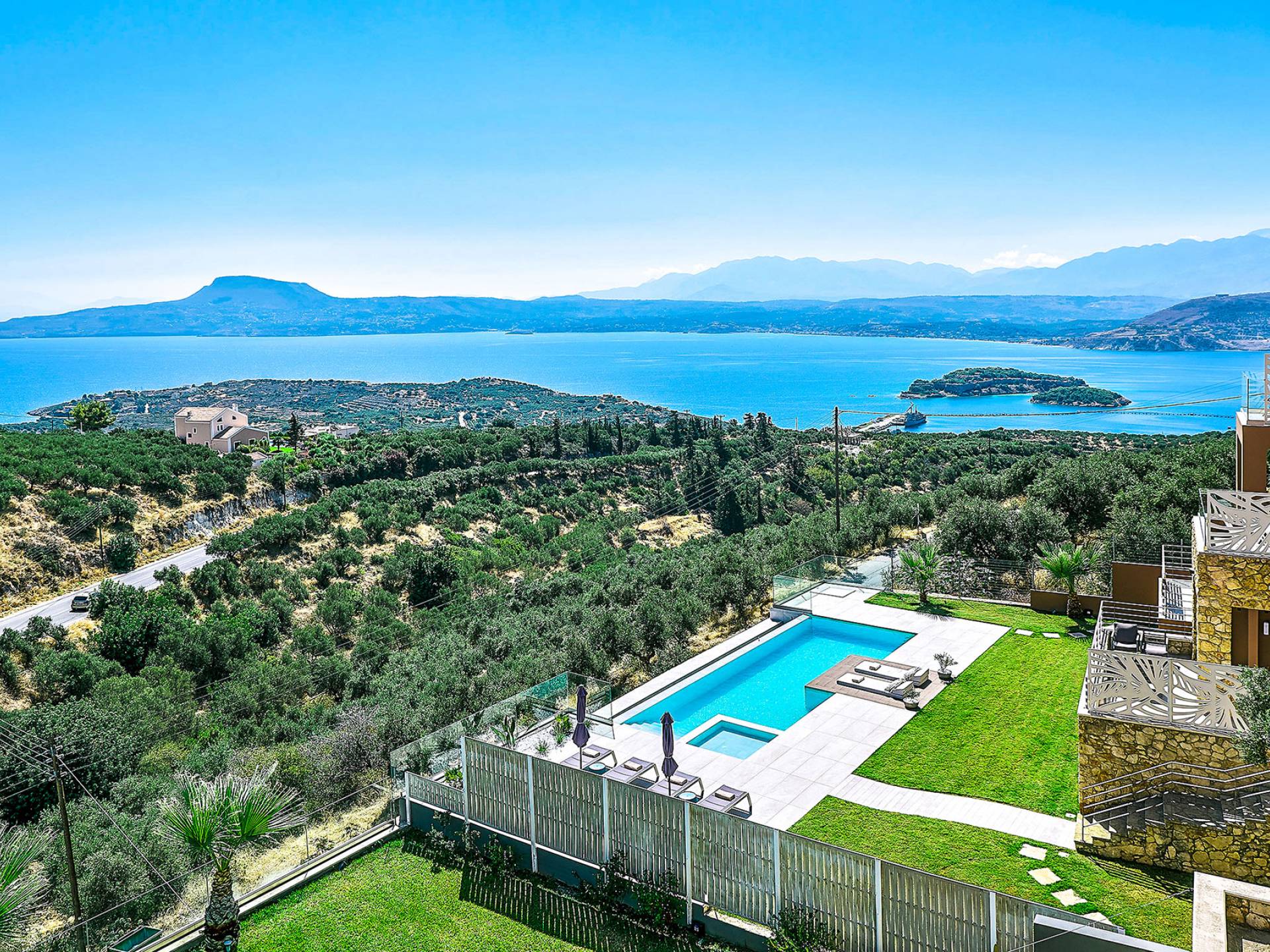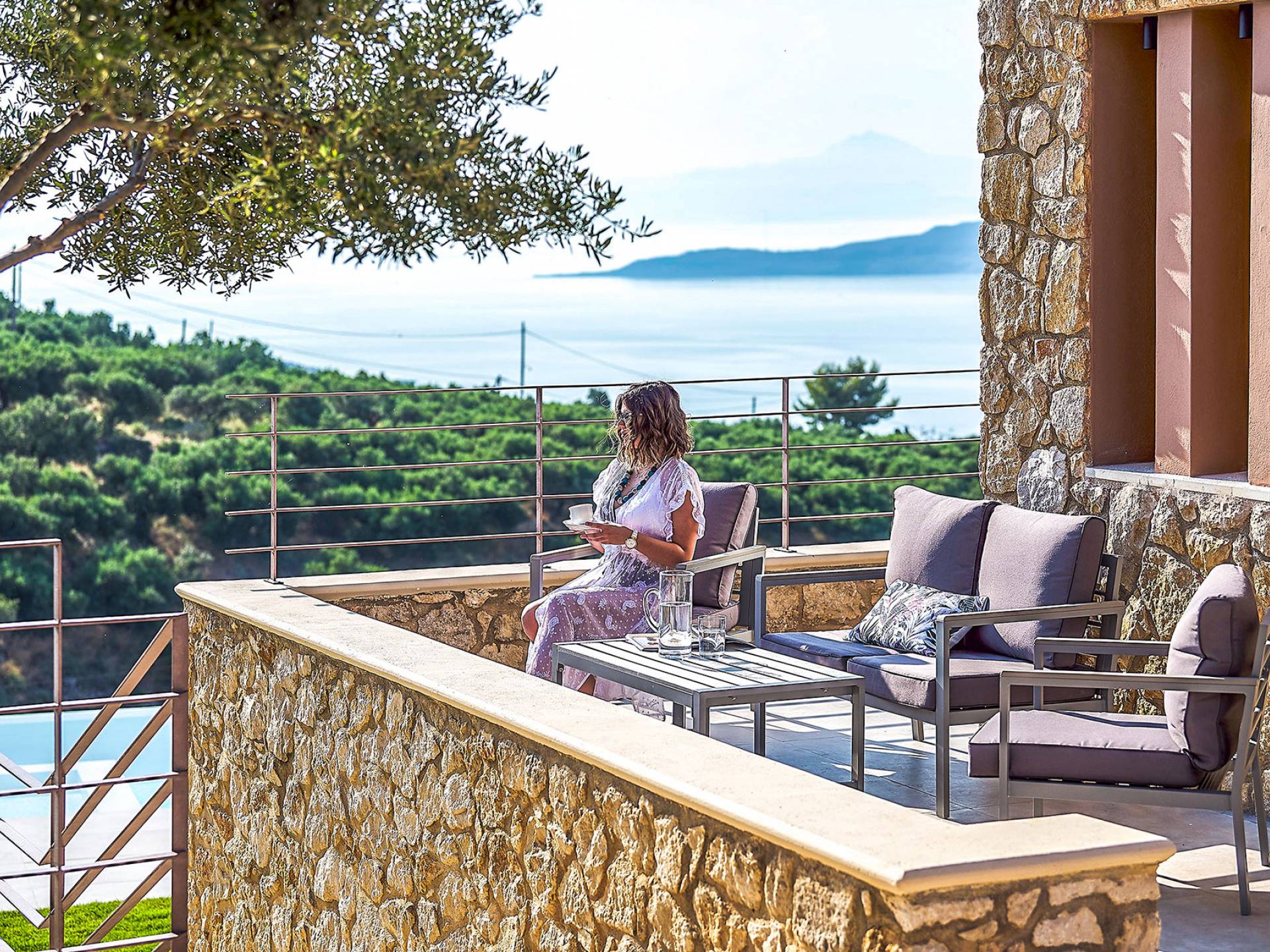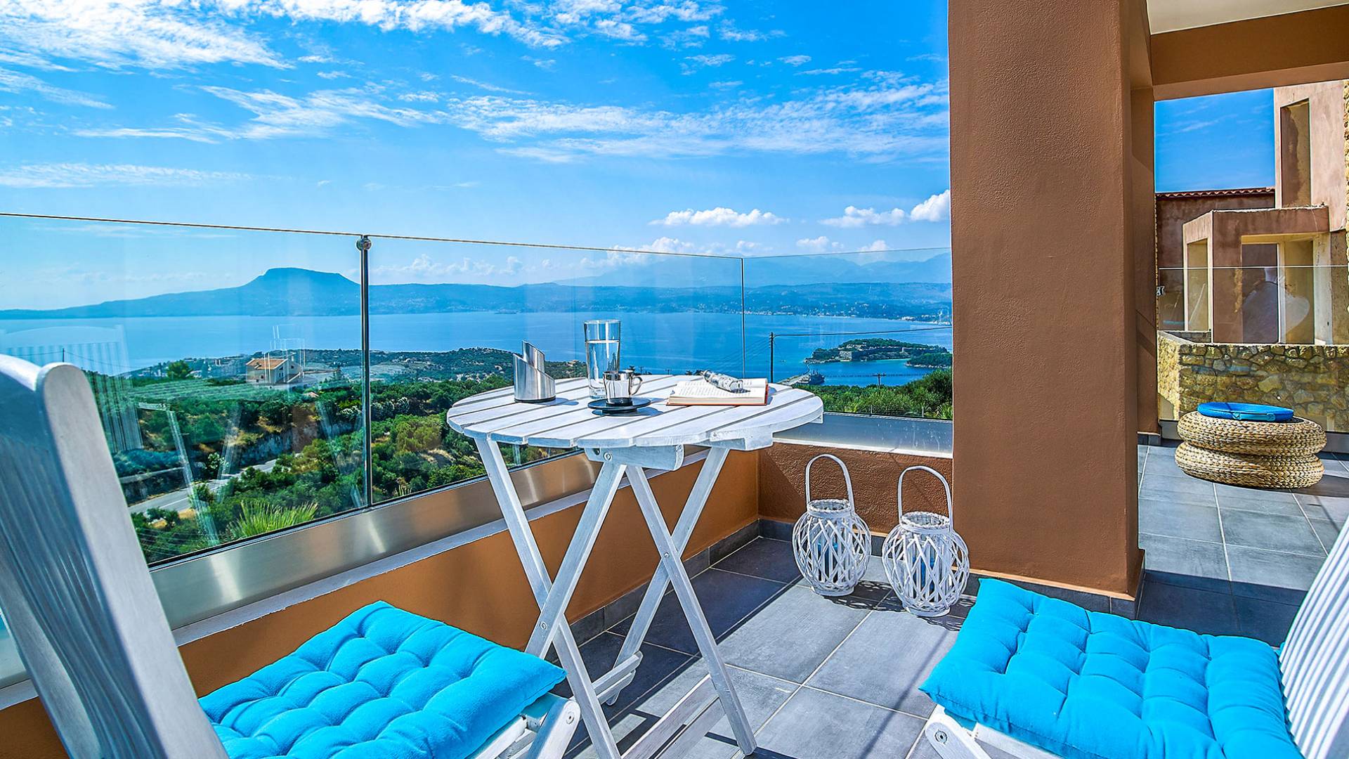 Niolos Villas Crete están construidas en una ladera y nada puede interrumpir la vista panorámica del mar y las montañas de Creta. Contemplar la bahía de Souda y la montaña Lefka Ori te ofrece serenidad y paz. Desde cada sección de las villas de Niolos, la vista es impresionante.