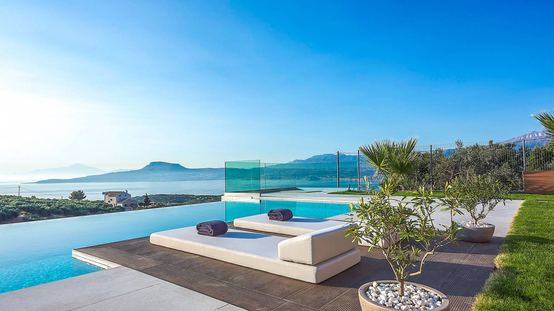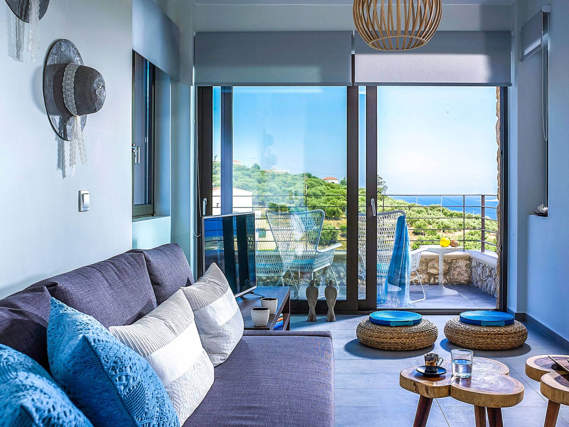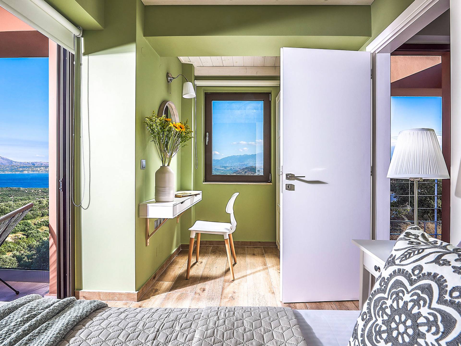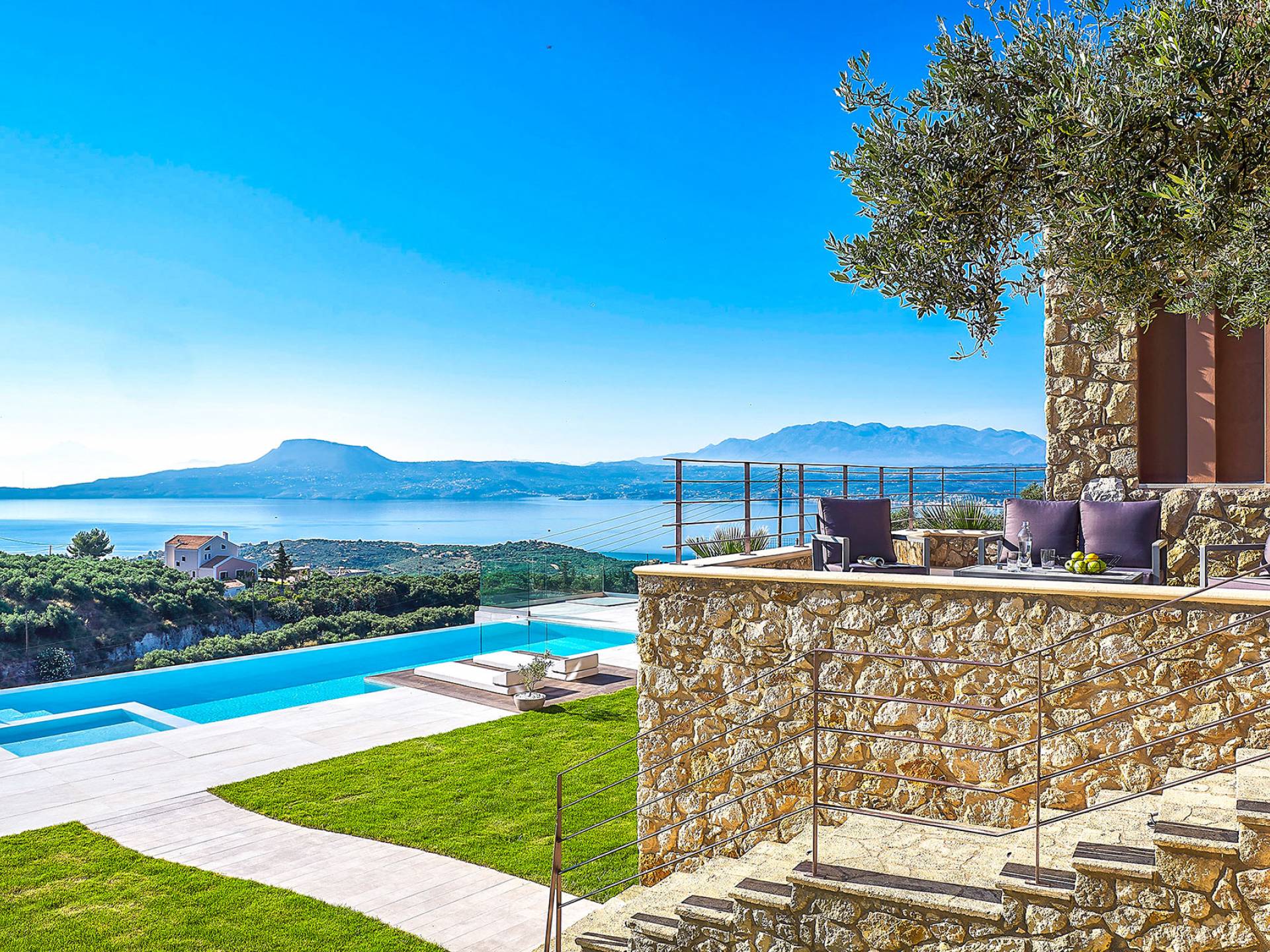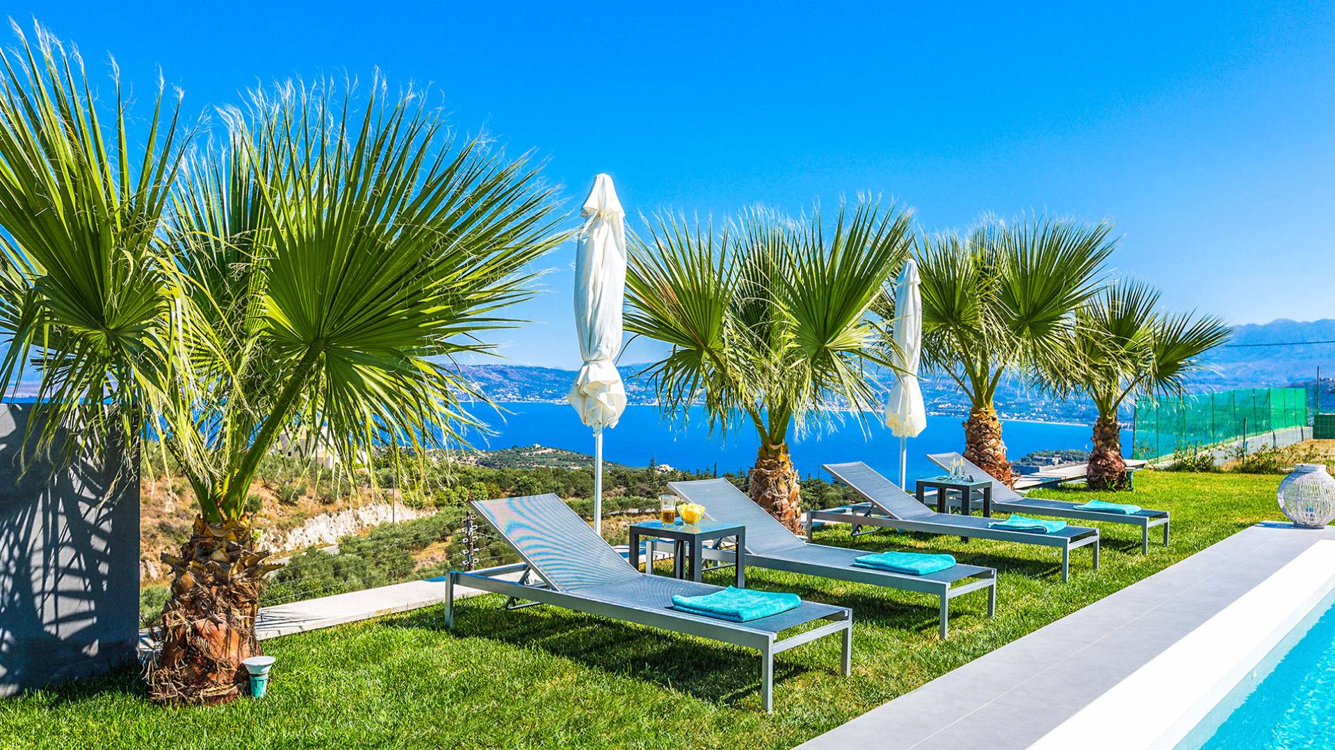 Niolos Villas Crete están construidas en una ladera y nada puede interrumpir la vista panorámica del mar y las montañas de Creta. Contemplar la bahía de Souda y la montaña Lefka Ori te ofrece serenidad y paz. Desde cada sección de las villas de Niolos, la vista es impresionante.