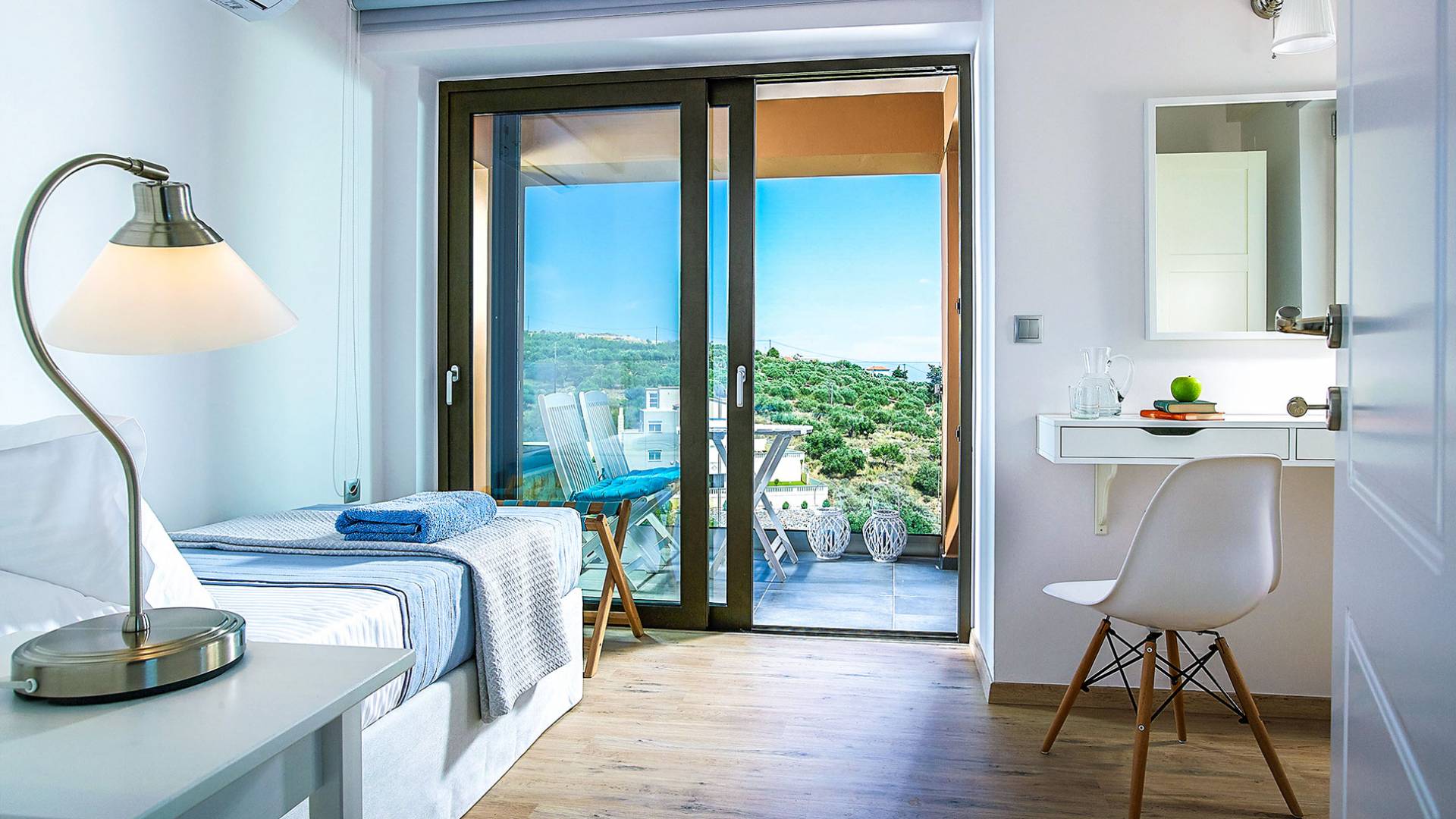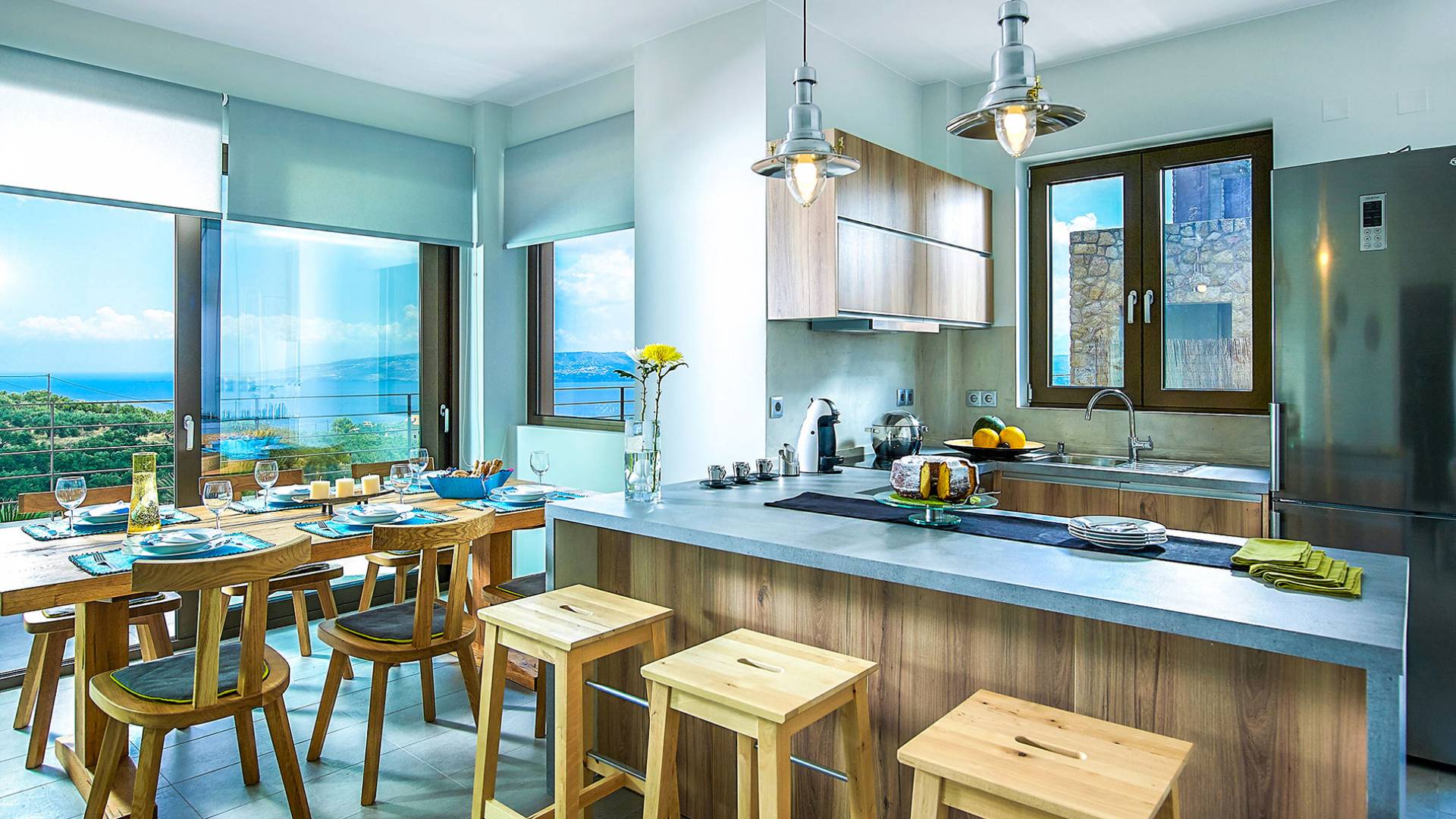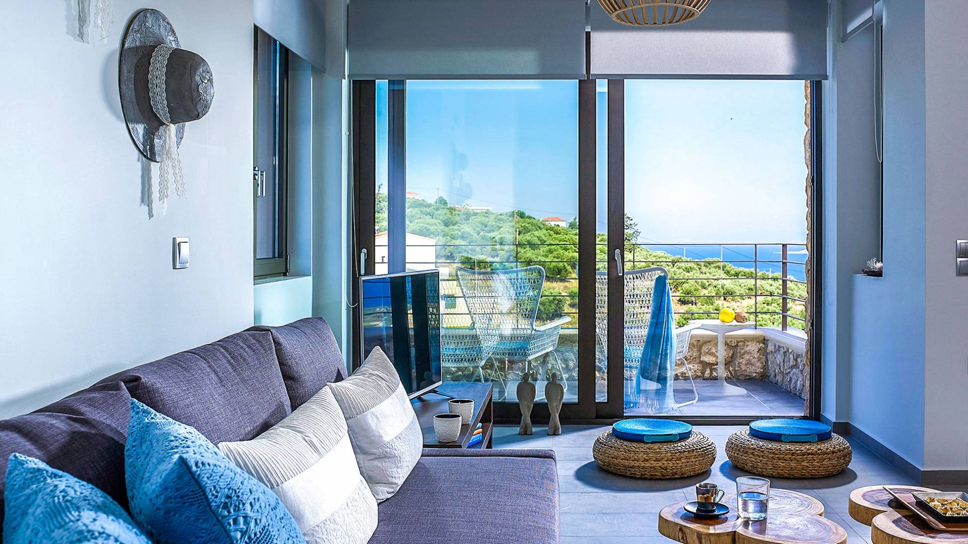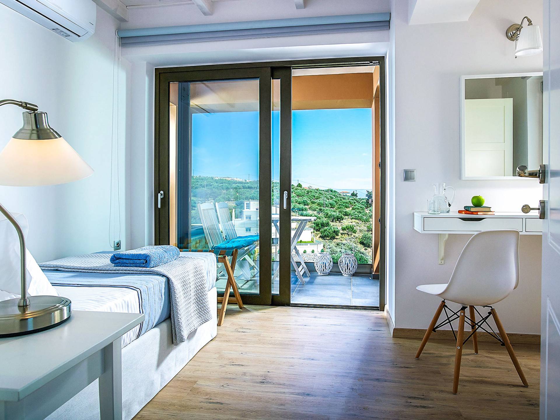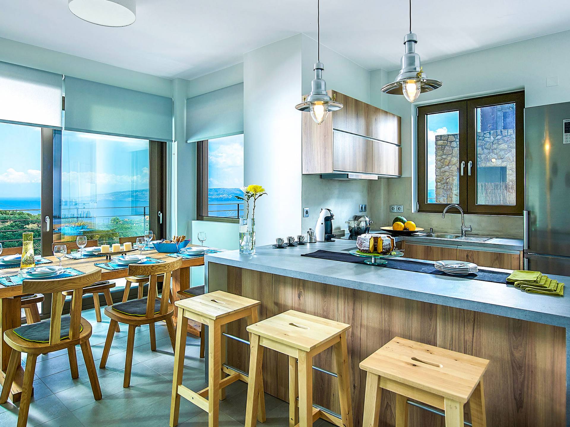 Niolos Villas Crete están construidas en una ladera y nada puede interrumpir la vista panorámica del mar y las montañas de Creta. Contemplar la bahía de Souda y la montaña Lefka Ori te ofrece serenidad y paz. Desde cada sección de las villas de Niolos, la vista es impresionante.