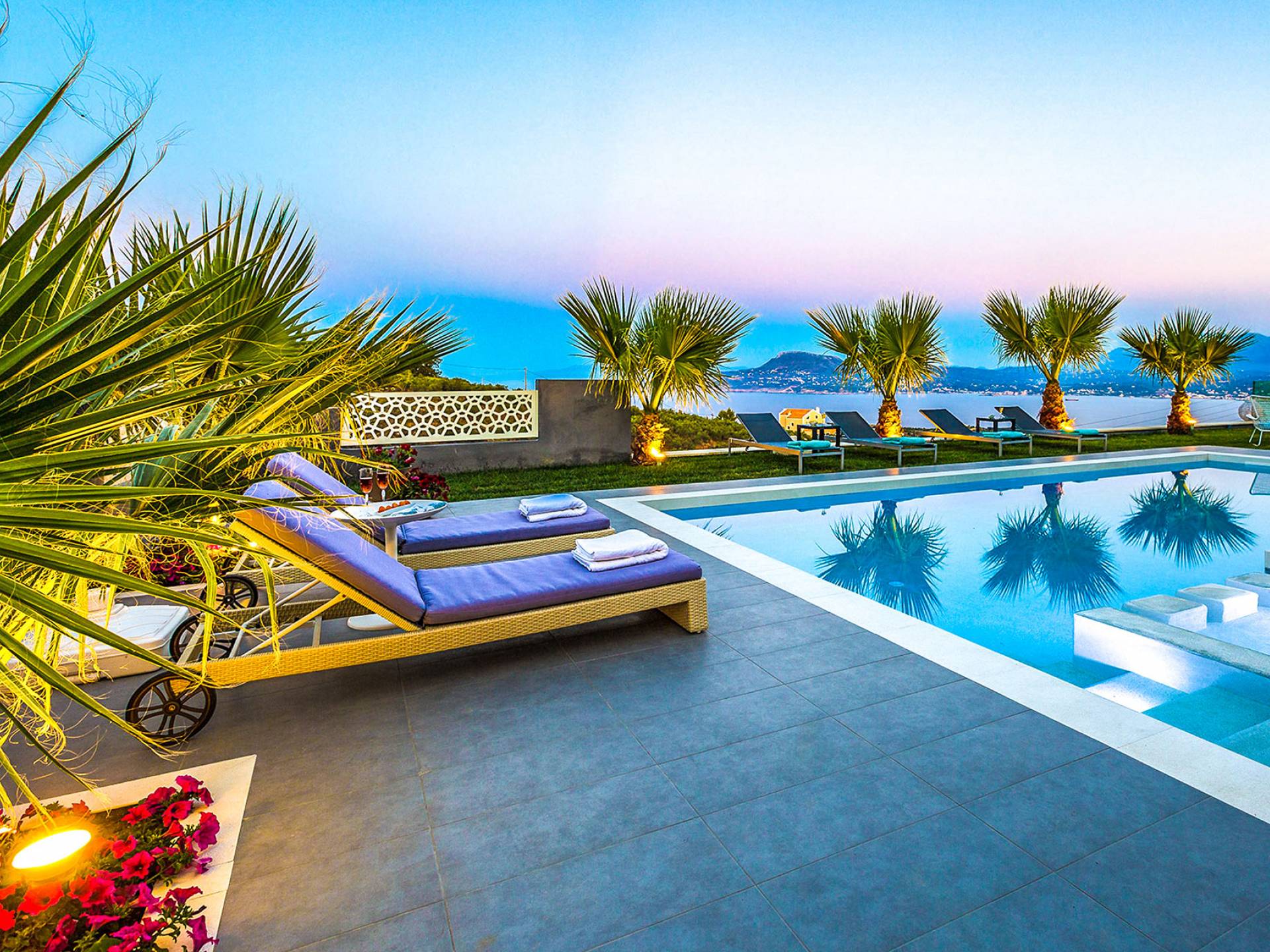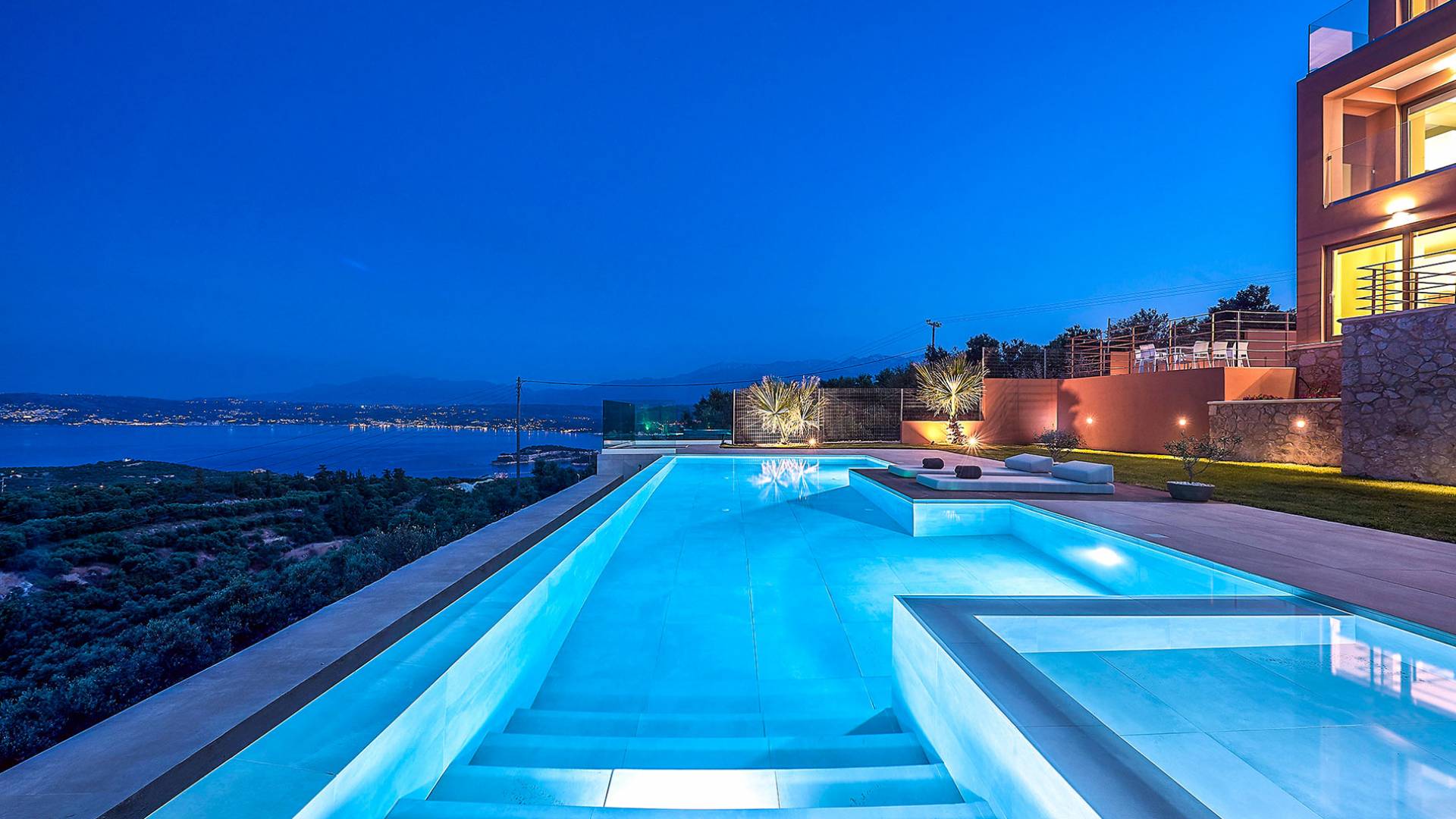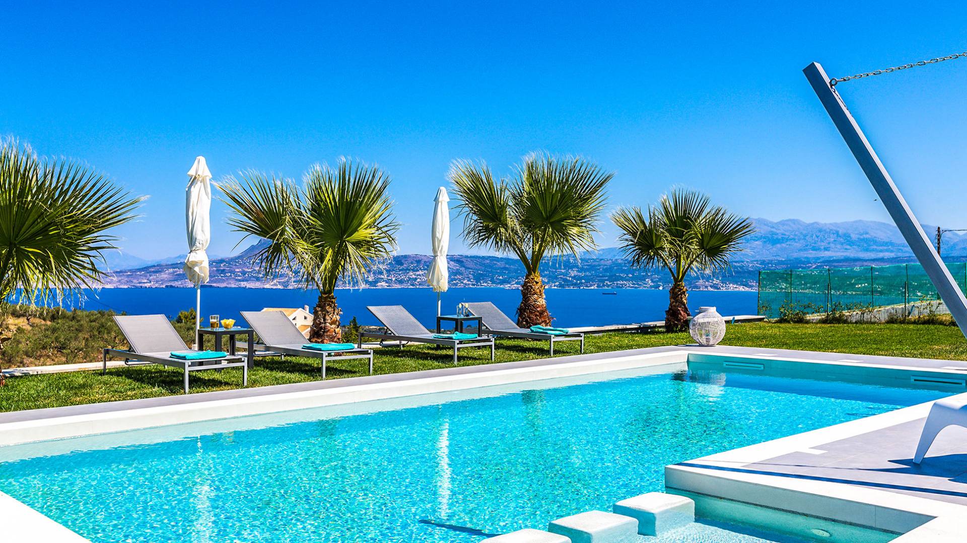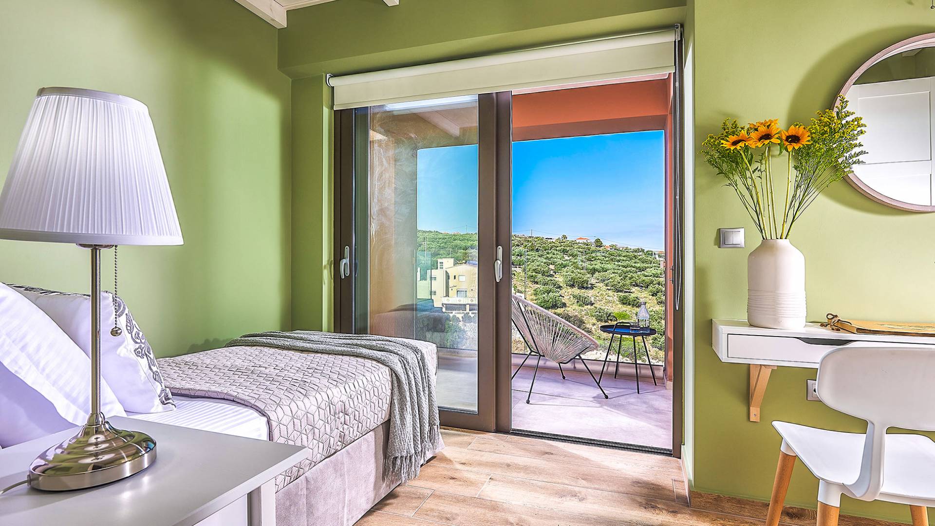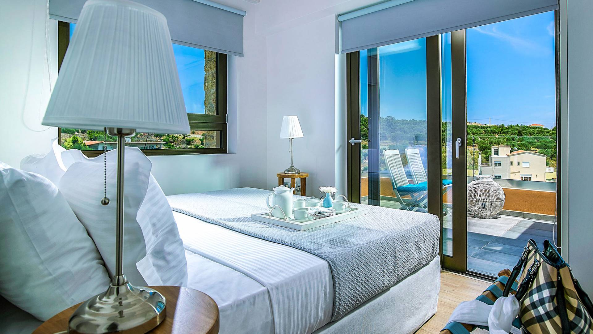 Niolos Villas Crete están construidas en una ladera y nada puede interrumpir la vista panorámica del mar y las montañas de Creta. Contemplar la bahía de Souda y la montaña Lefka Ori te ofrece serenidad y paz. Desde cada sección de las villas de Niolos, la vista es impresionante.