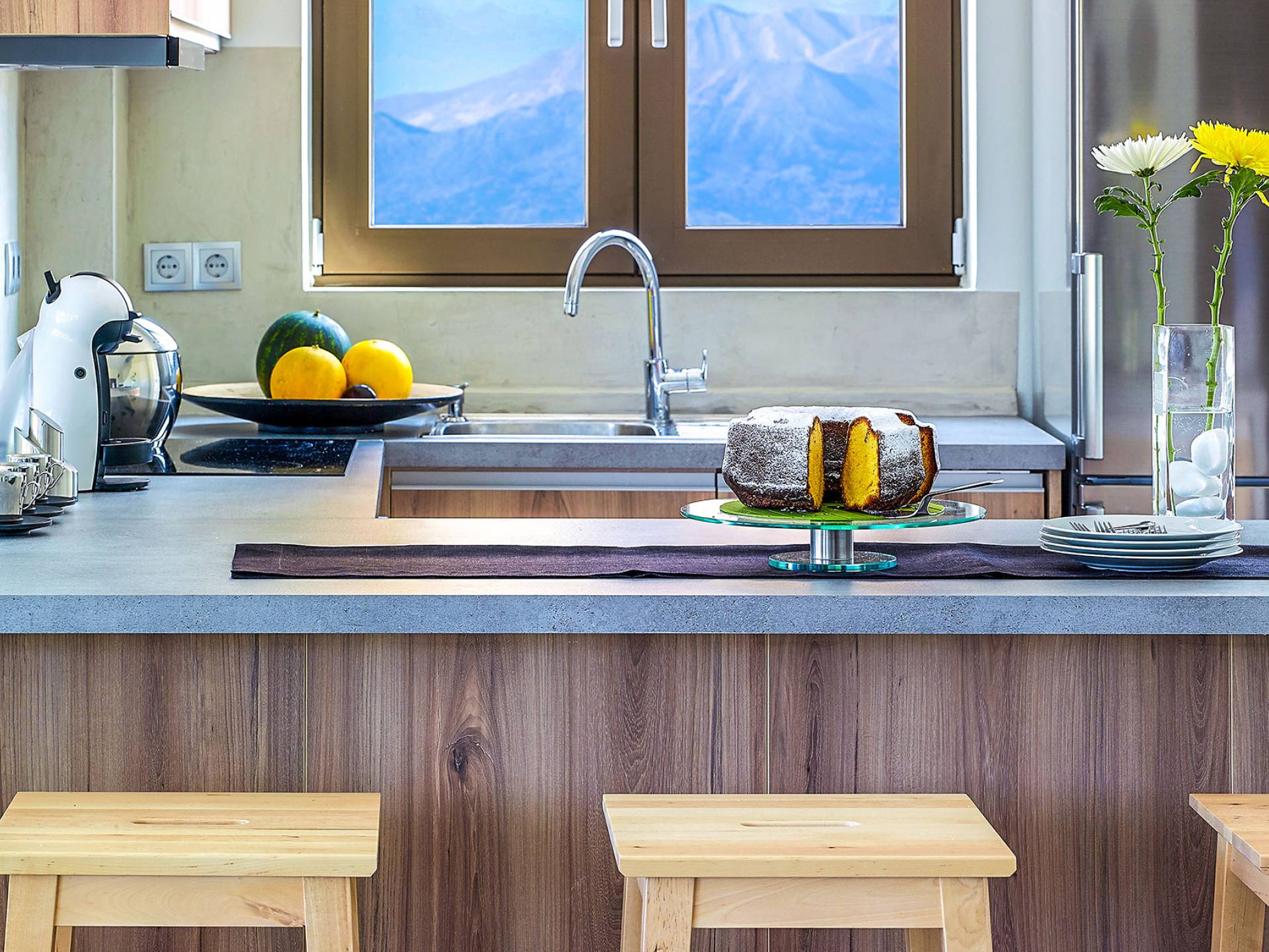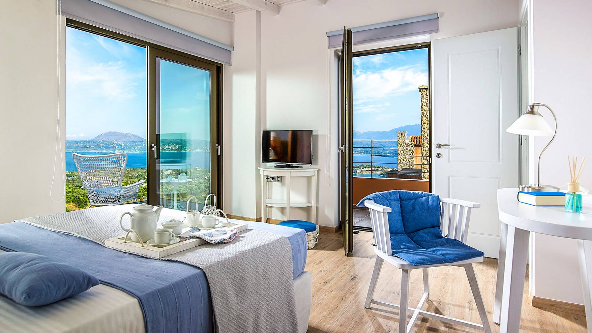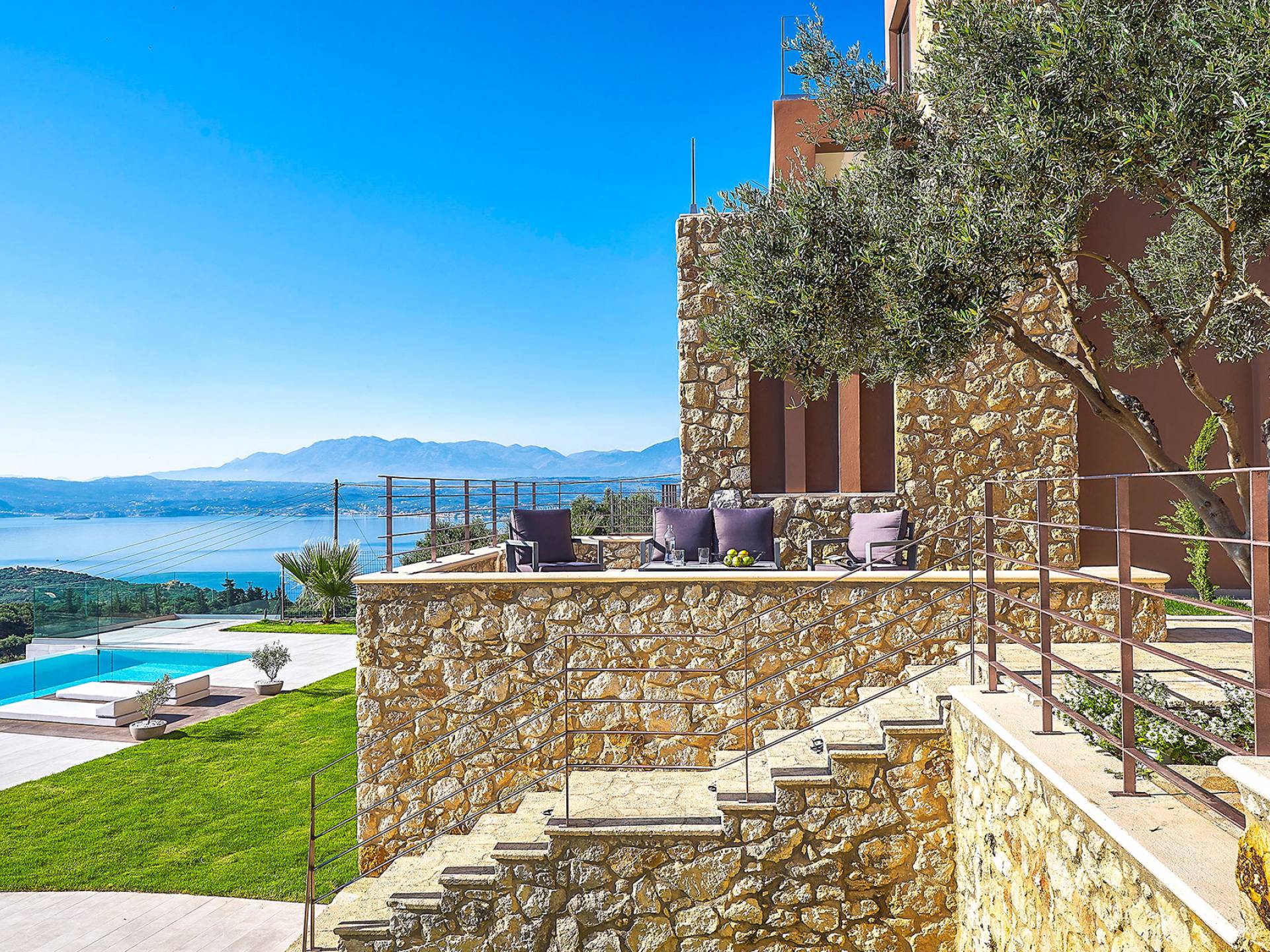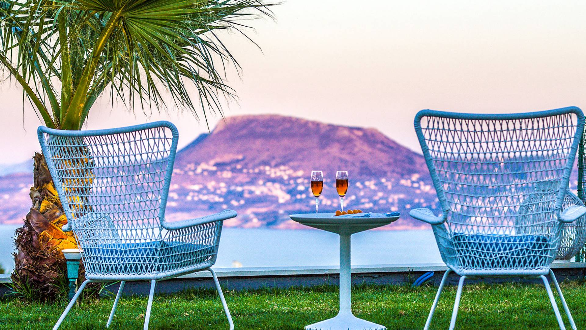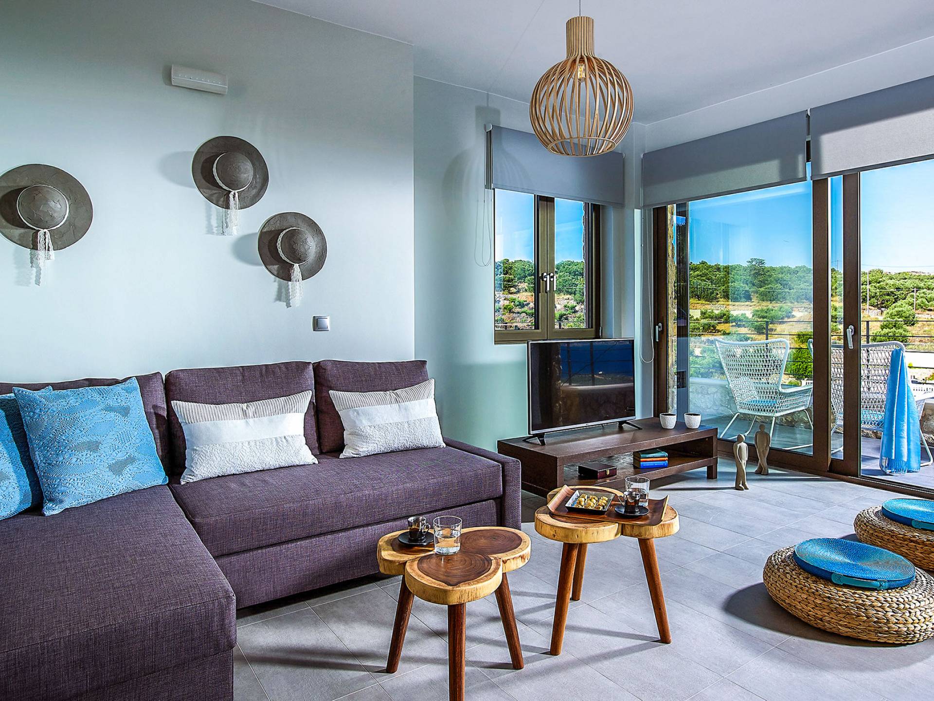 Niolos Villas Crete están construidas en una ladera y nada puede interrumpir la vista panorámica del mar y las montañas de Creta. Contemplar la bahía de Souda y la montaña Lefka Ori te ofrece serenidad y paz. Desde cada sección de las villas de Niolos, la vista es impresionante.