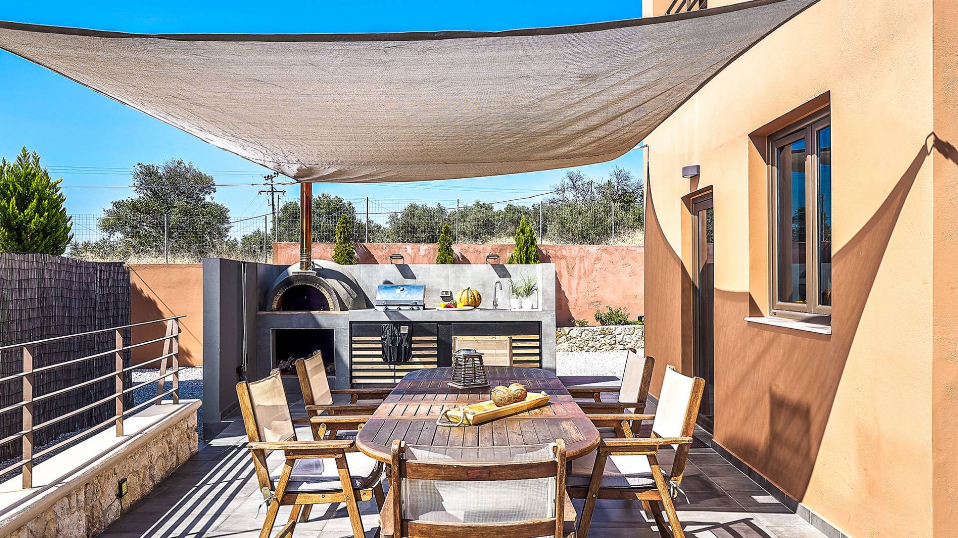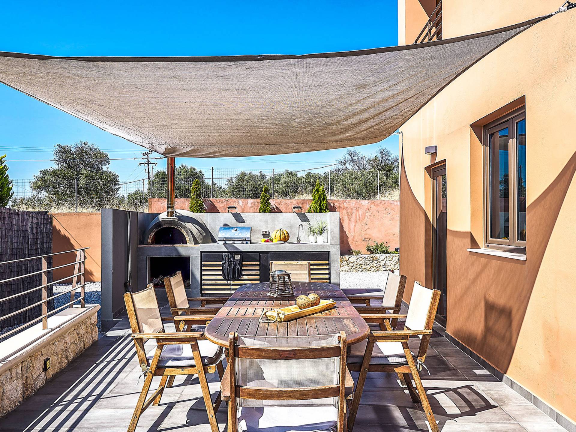 El área exterior bellamente ajardinada de Niolos Villas, llena de flores y palmeras, ofrece increíbles vistas al mar, así como una variedad de instalaciones como barbacoa de gas, tumbonas, sombrillas, sala de estar al aire libre con sombra, hamacas, áreas de comedor y mesa de ping pong. Toda la zona exterior está totalmente vallada, ofreciendo privacidad y seguridad. Niolos Villas Crete es ideal para grupos grandes o familias.