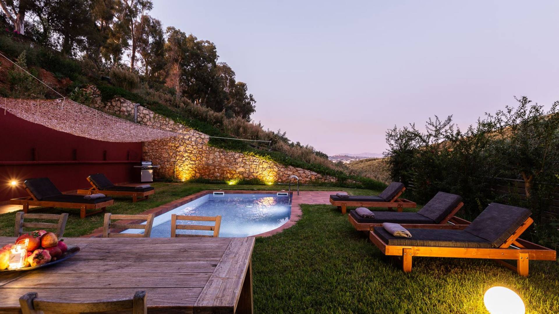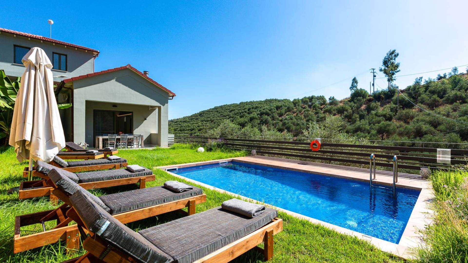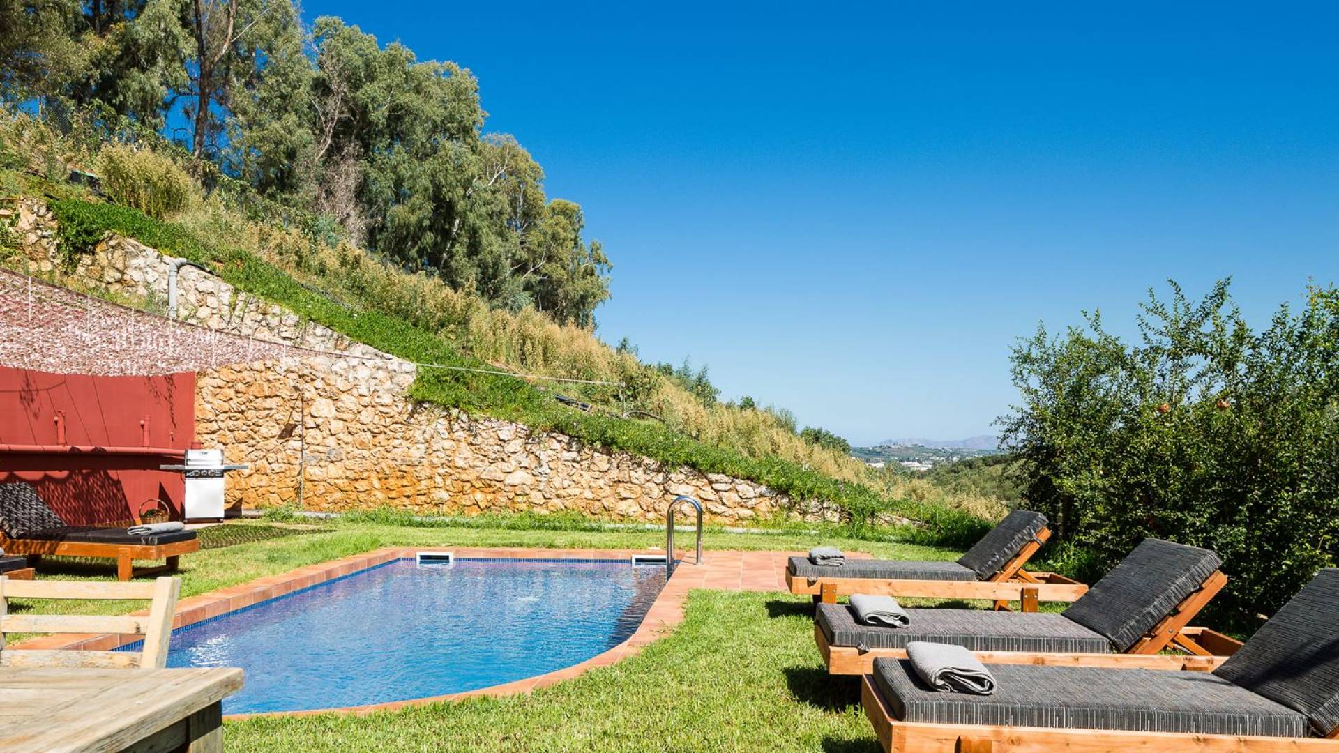 La naturaleza intrigante y diversa de la propiedad cuenta con 4 habitaciones dobles en la casa principal más 6 baños, una piscina privada, terrazas de salón, una cocina totalmente equipada y una barbacoa al aire libre. Todo lo que necesita para que su imaginación cree unas vacaciones ideales. Los maravillosos jardines en terrazas de las laderas, que abrazan exuberantemente la casa principal, son típicos de la zona. ¡Relájese y disfrute de este alojamiento de lujo superior!