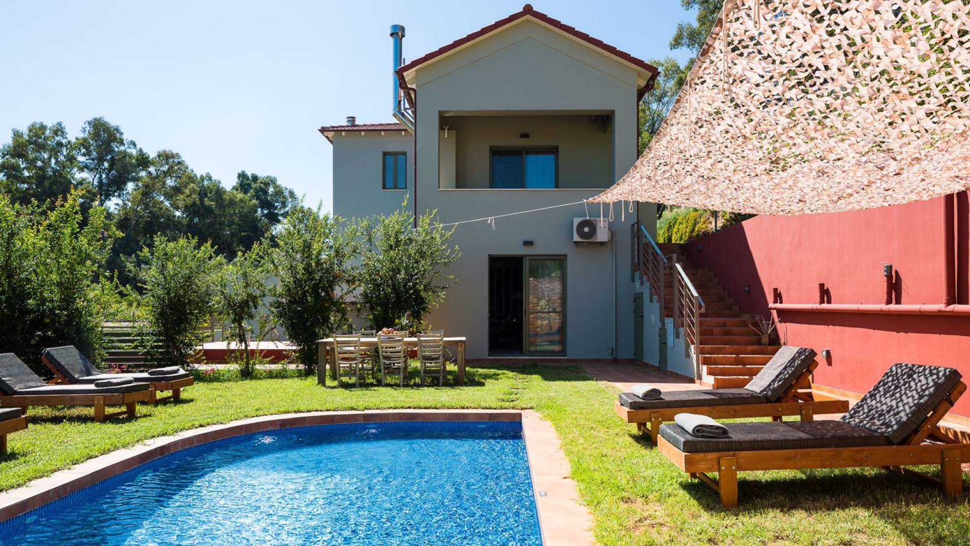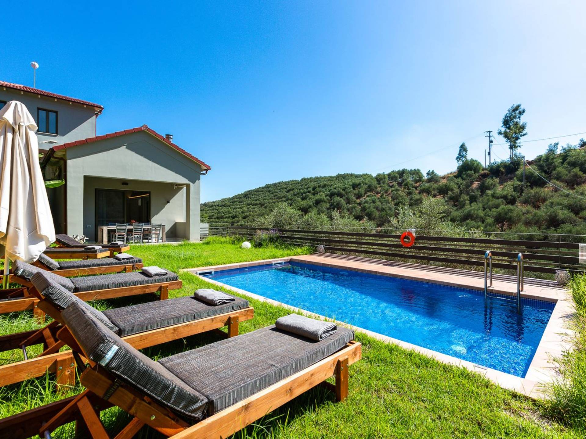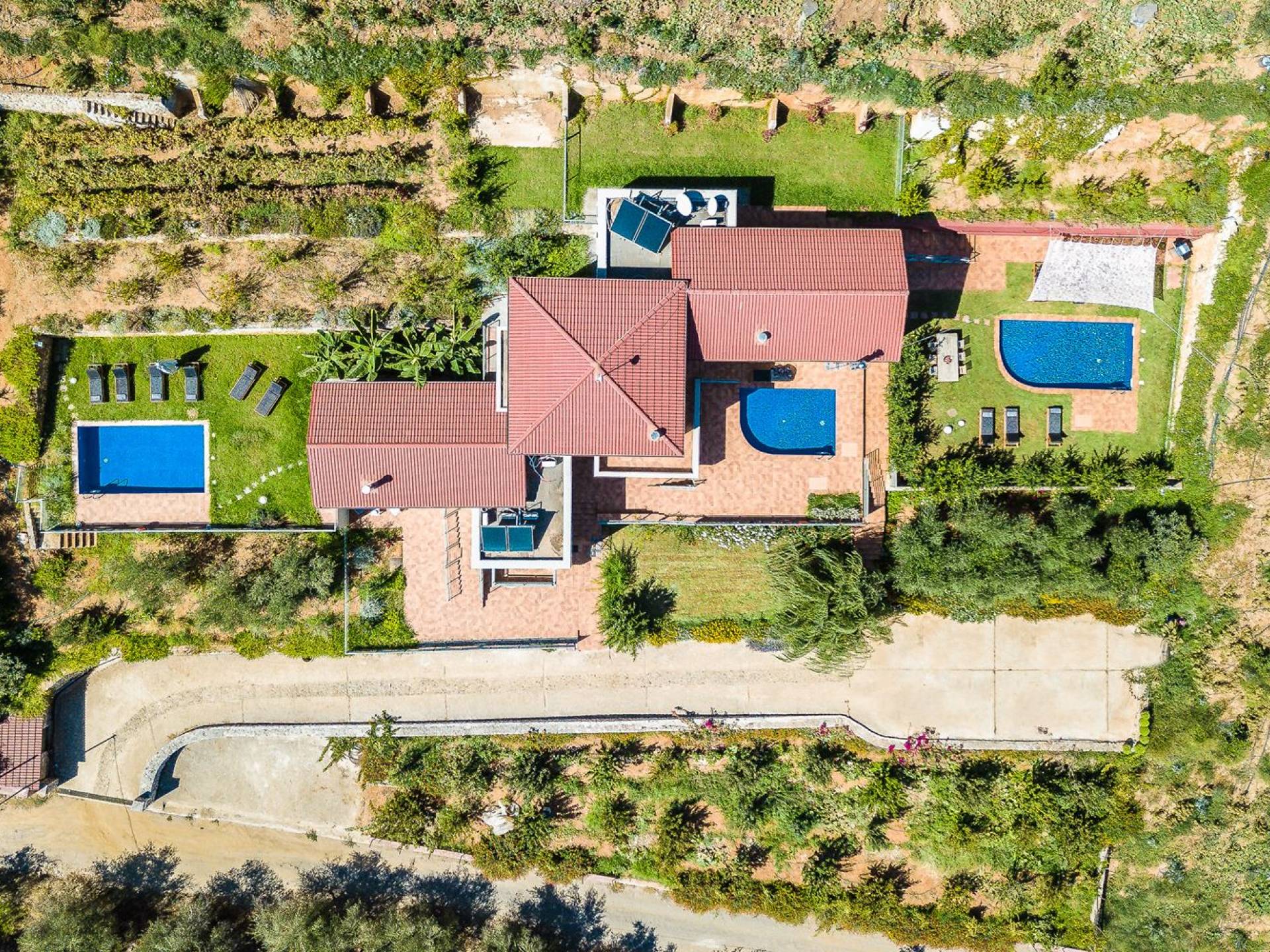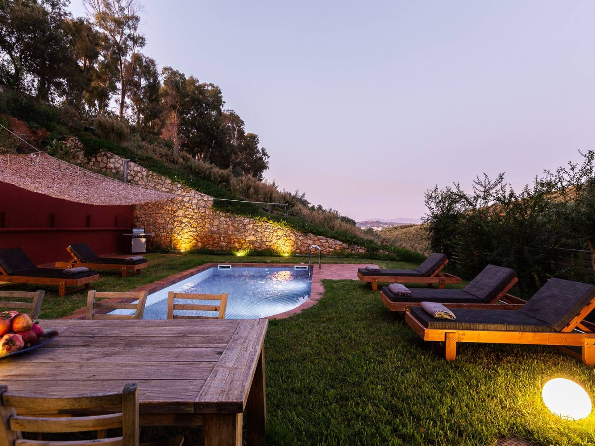 La naturaleza intrigante y diversa de la propiedad cuenta con 4 habitaciones dobles en la casa principal más 6 baños, una piscina privada, terrazas de salón, una cocina totalmente equipada y una barbacoa al aire libre. Todo lo que necesita para que su imaginación cree unas vacaciones ideales. Los maravillosos jardines en terrazas de las laderas, que abrazan exuberantemente la casa principal, son típicos de la zona. ¡Relájese y disfrute de este alojamiento de lujo superior!