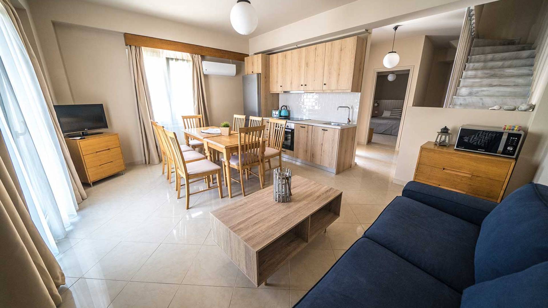 Quienes deseen explorar aún más pueden visitar el cercano casco antiguo de Chania, famoso por su arquitectura veneciana, sus restaurantes frente al puerto y sus callejuelas llenas de historia. También se puede hacer excursiones de un día a la famosa Garganta de Samaria, la playa rosada de Elafonissi, o disfrutar de un paseo en barco a Gramvousa y la Laguna de Balos.