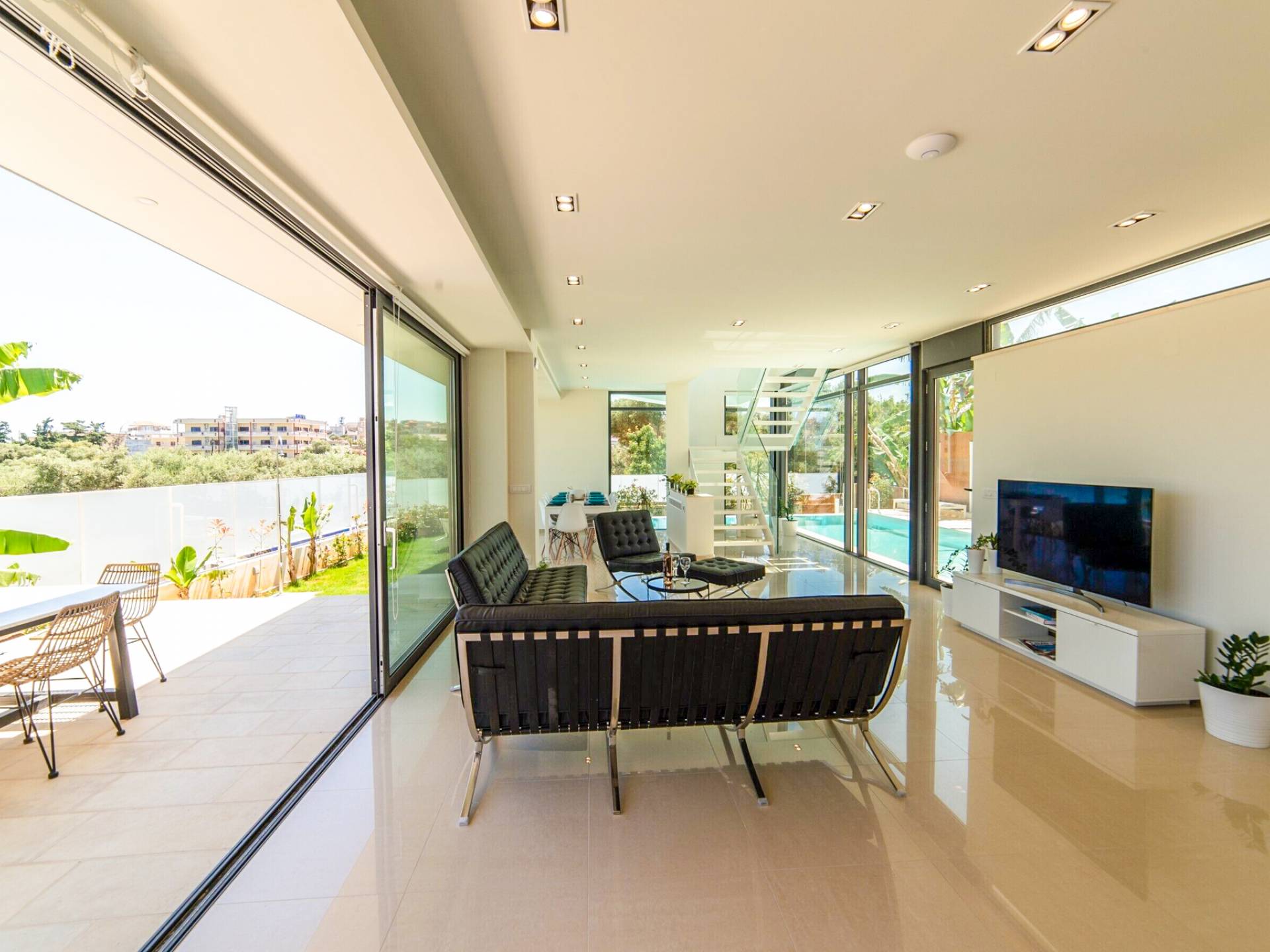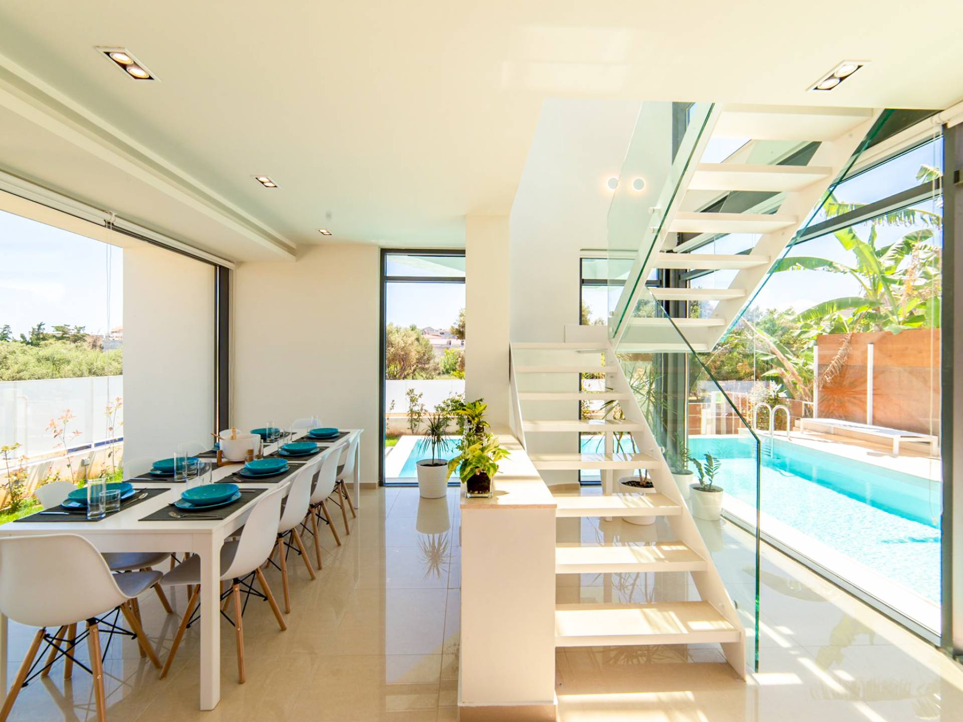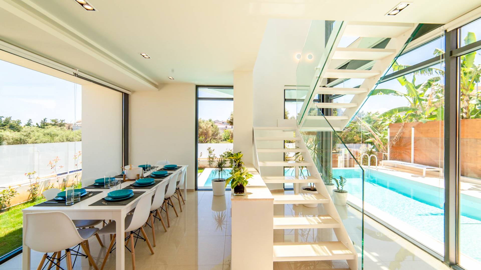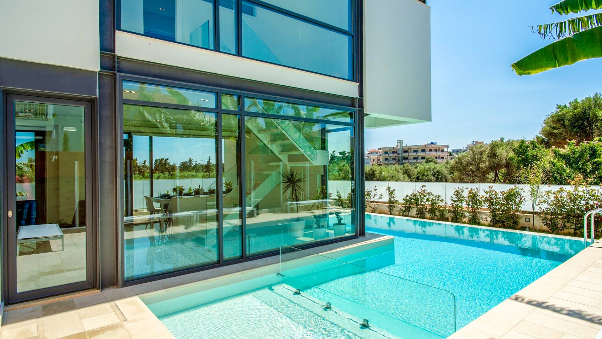 Prestige 1 Villa Chania es una villa de lujo en alquiler con 4 dormitorios y una piscina privada. Prestige 1 Villa Chania se encuentra cerca de la costa de Agioi Apostoloi. Es una muestra de arquitectura contemporánea y sustentabilidad. Prestige 1 Villa Chania se coloca paralelo al elemento líquido, que envuelve la fachada frontal. Así, con el uso de grandes superficies acristaladas en las tres caras se consigue una relación visual del elemento líquido, las zonas comunes y los espacios exteriores.