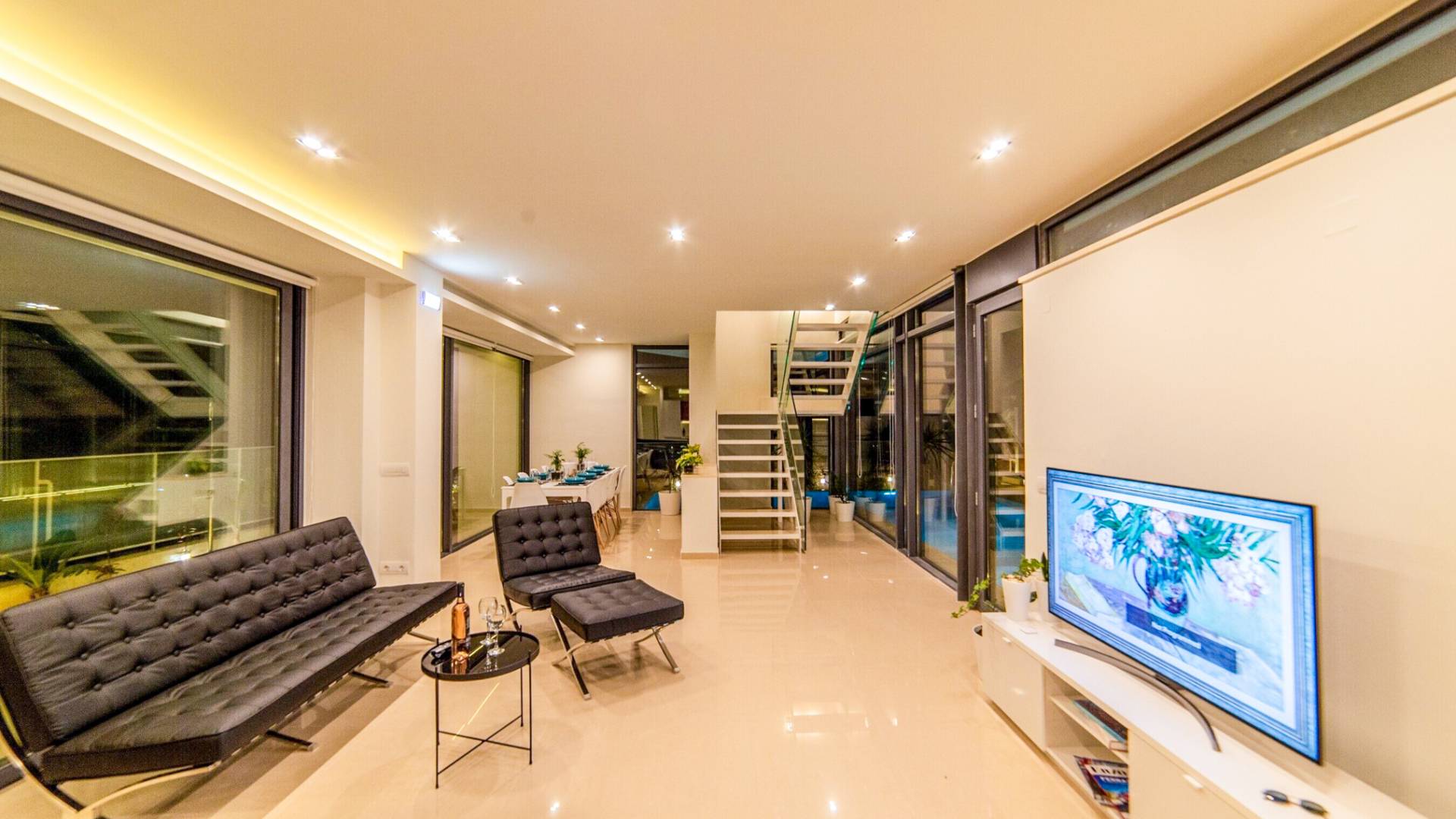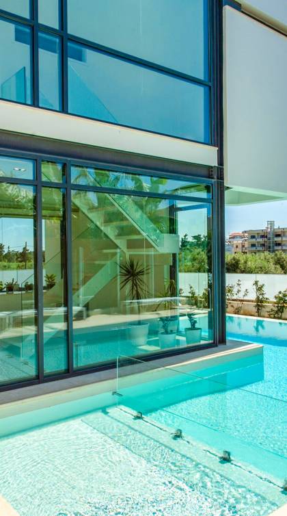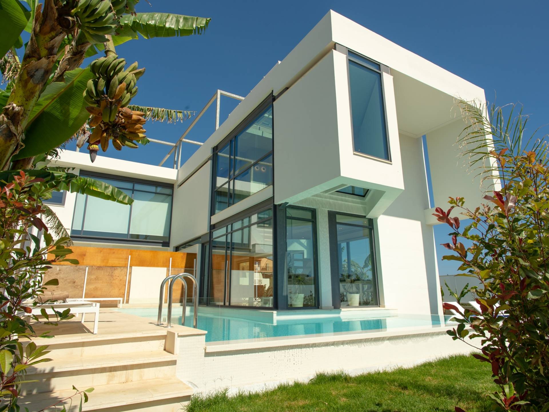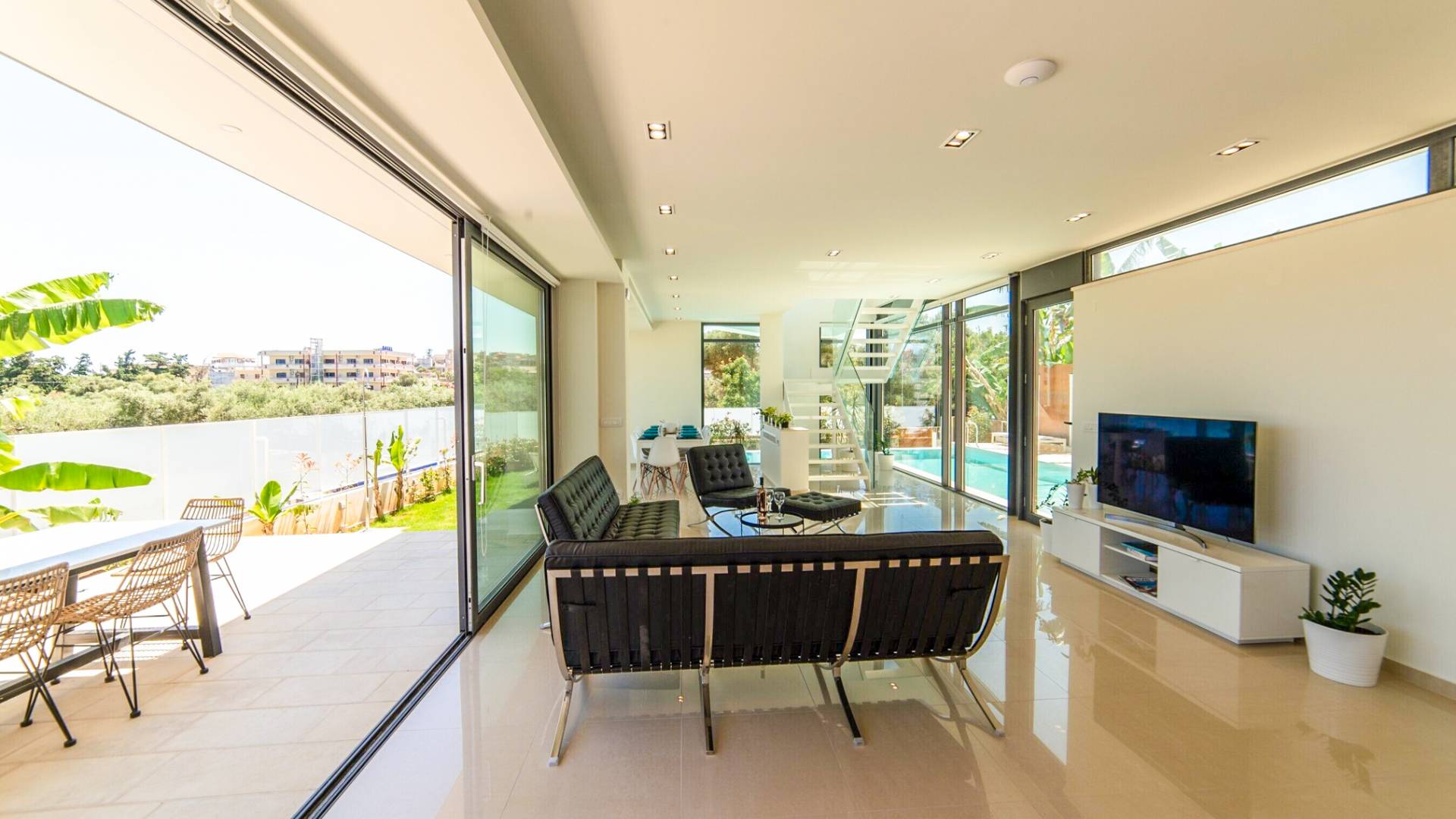 Prestige 1 Villa Chania es una villa de lujo en alquiler con 4 dormitorios y una piscina privada. Prestige 1 Villa Chania se encuentra cerca de la costa de Agioi Apostoloi. Es una muestra de arquitectura contemporánea y sustentabilidad. Prestige 1 Villa Chania se coloca paralelo al elemento líquido, que envuelve la fachada frontal. Así, con el uso de grandes superficies acristaladas en las tres caras se consigue una relación visual del elemento líquido, las zonas comunes y los espacios exteriores.