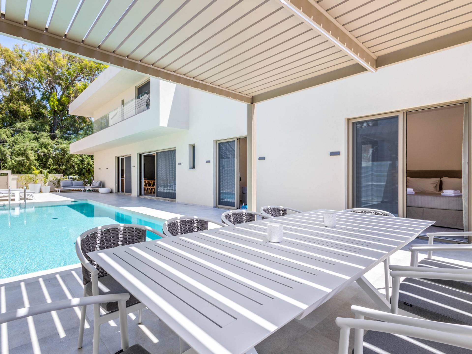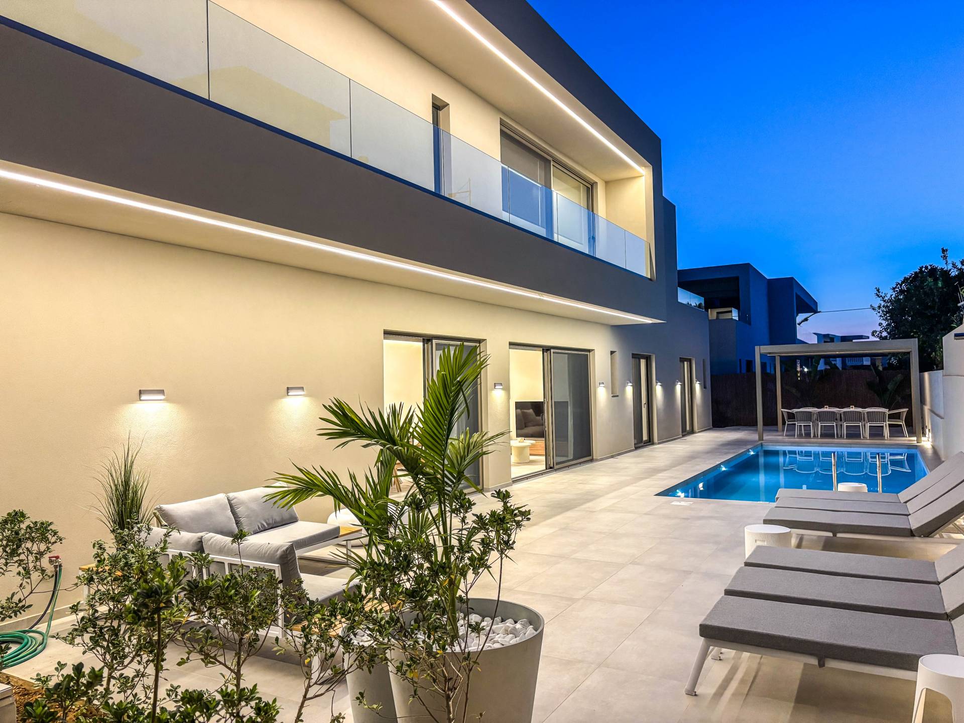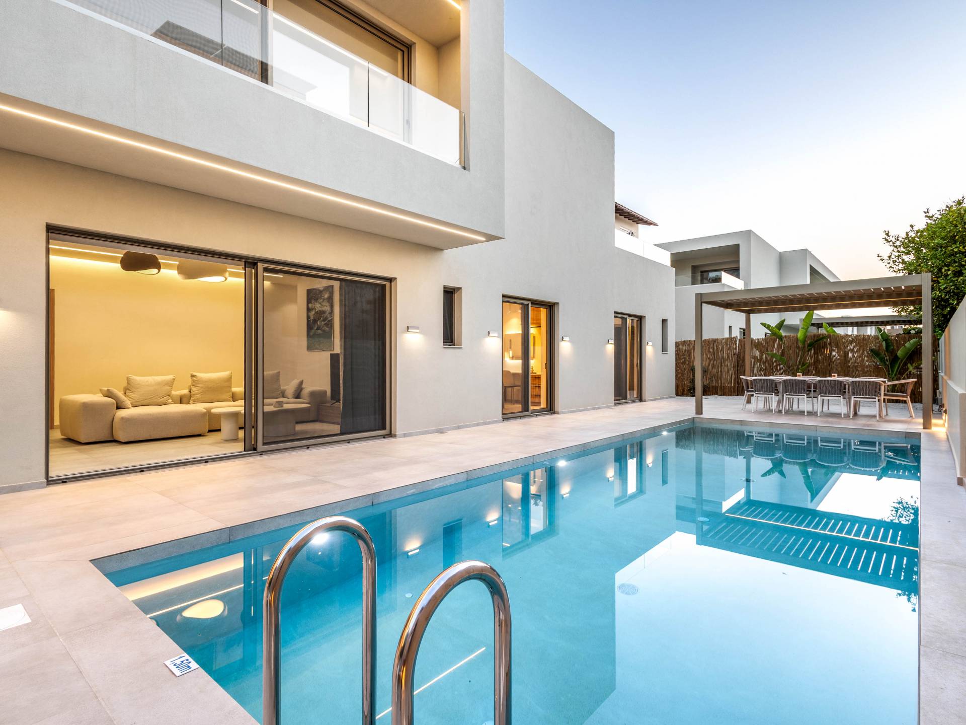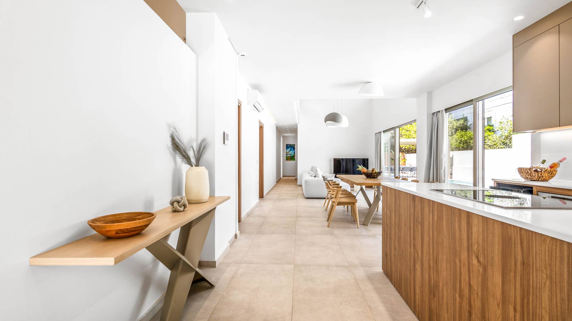 Sea Princessa Villa Chania - Elegancia moderna junto al mar. Bienvenido a Sea Princessa Villa, un impresionante retiro moderno ubicado en el área buscada de Agioi Apostoloi, Chania. Esta villa de 5 dormitorios combina un diseño contemporáneo elegante con la comodidad y privacidad de un escape de lujo, todos a solo 100 metros de la playa.