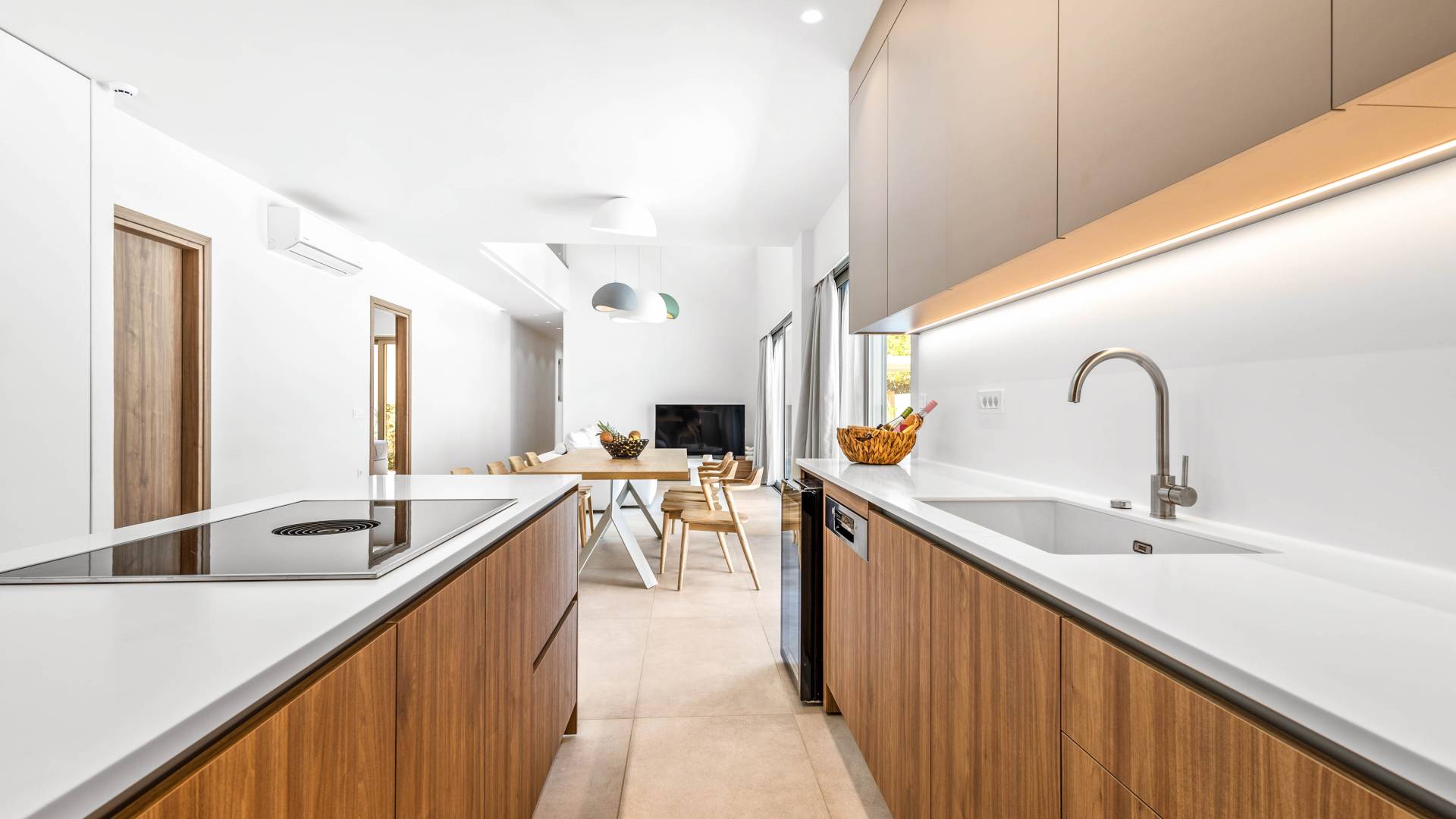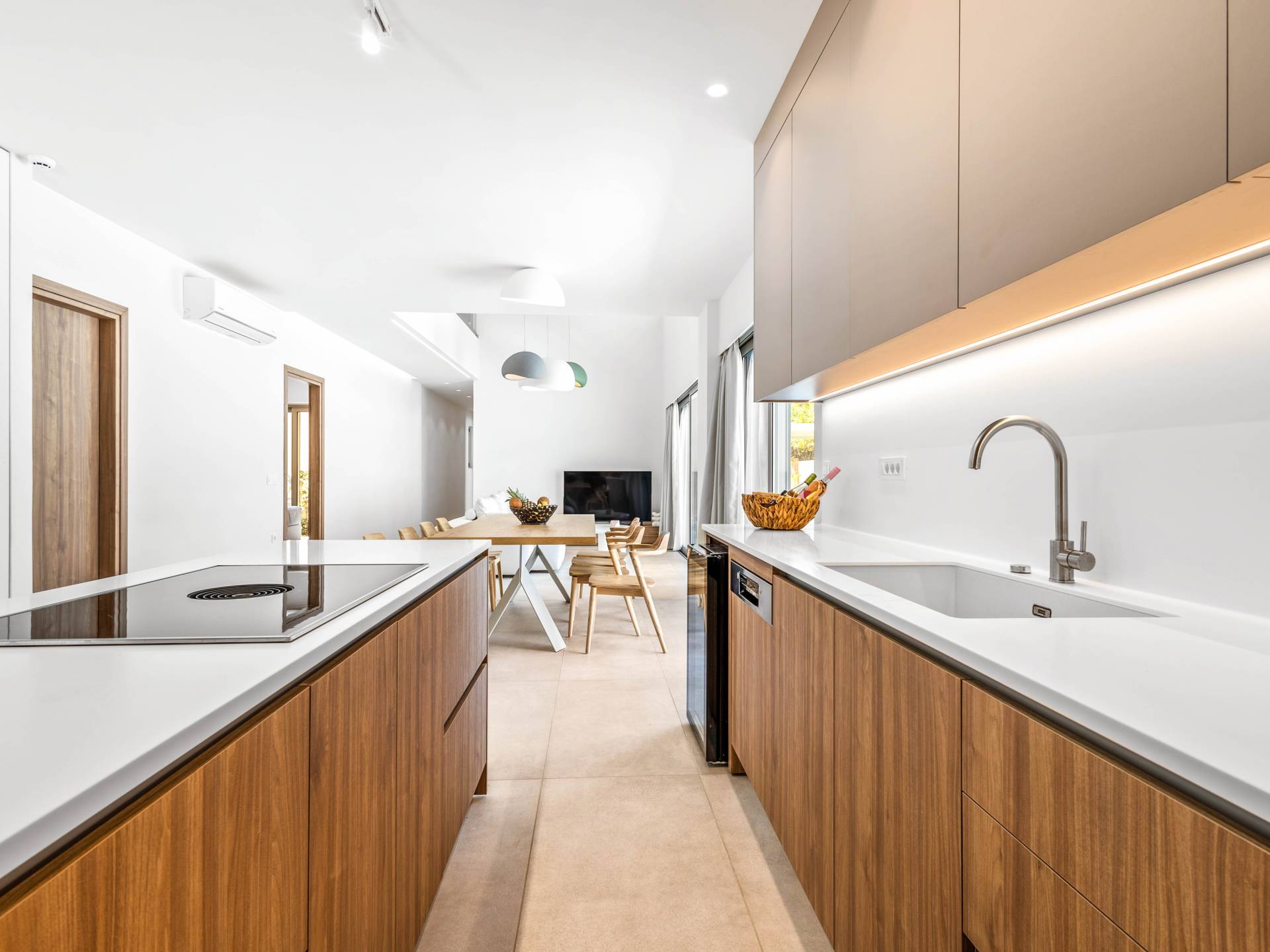 Una cocina moderna totalmente equipada ideal para preparar comidas o entretener
