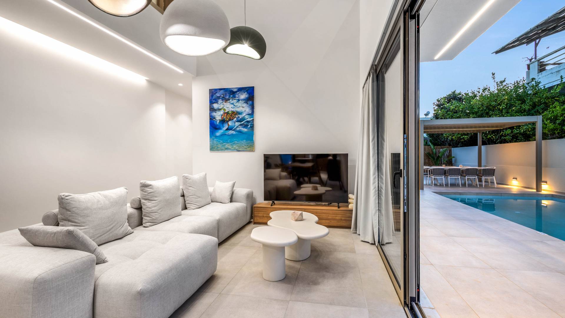 Salga y solo un corto paseo por playas arenosas, tabernas junto al mar, tiendas locales y restaurantes vibrantes. Ya sea que esté tomando el sol junto a la piscina, disfrutando de una bebida al atardecer en la terraza o explorando el encanto de la cercana ciudad antigua Chania, Sea Princessa Villa ofrece el equilibrio perfecto de relajación y conveniencia.