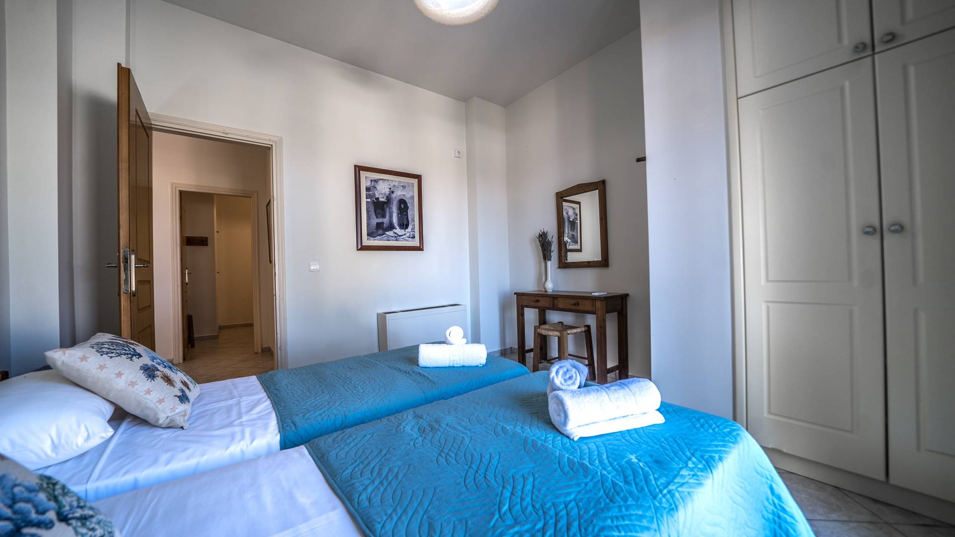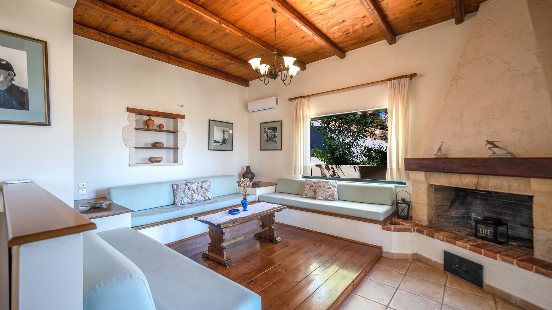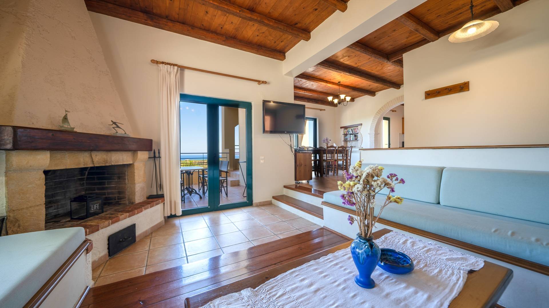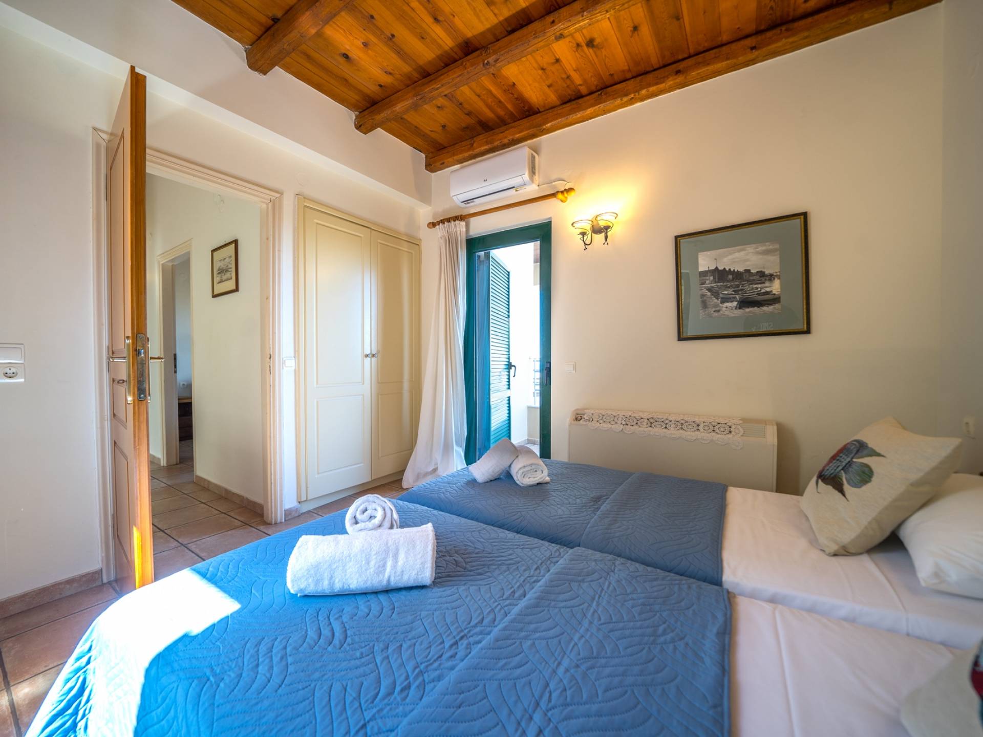 Thomas Villa consta del segundo y tercer piso. La entrada principal conduce al segundo piso y a una acogedora sala de estar/comedor iluminada por el sol. Esta zona con la chimenea está amueblada de forma tradicional. La cocina totalmente equipada y un aseo están en la misma planta. Las escaleras conducen al segundo piso, donde puede ver tres dormitorios, uno doble y dos individuales, y dos baños. Uno de los baños está en suite con el dormitorio doble. Todas las habitaciones tienen balcones con vistas panorámicas.