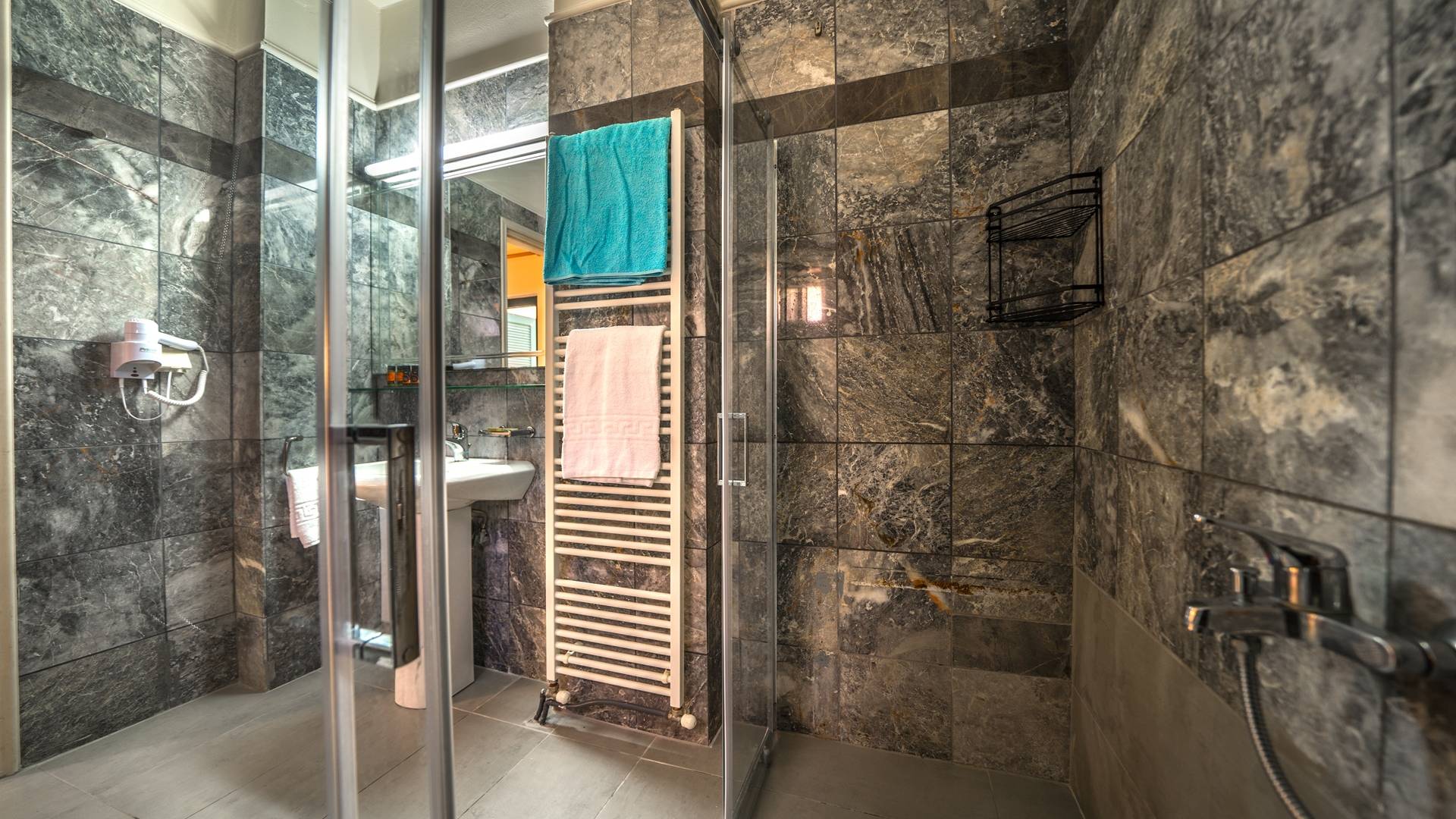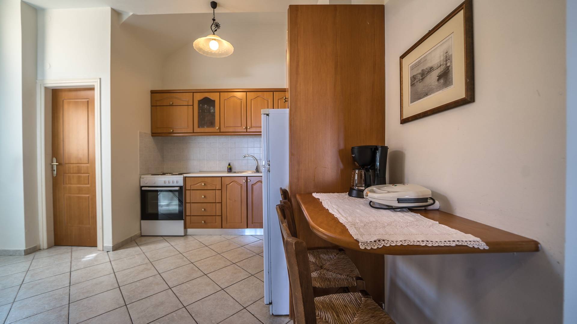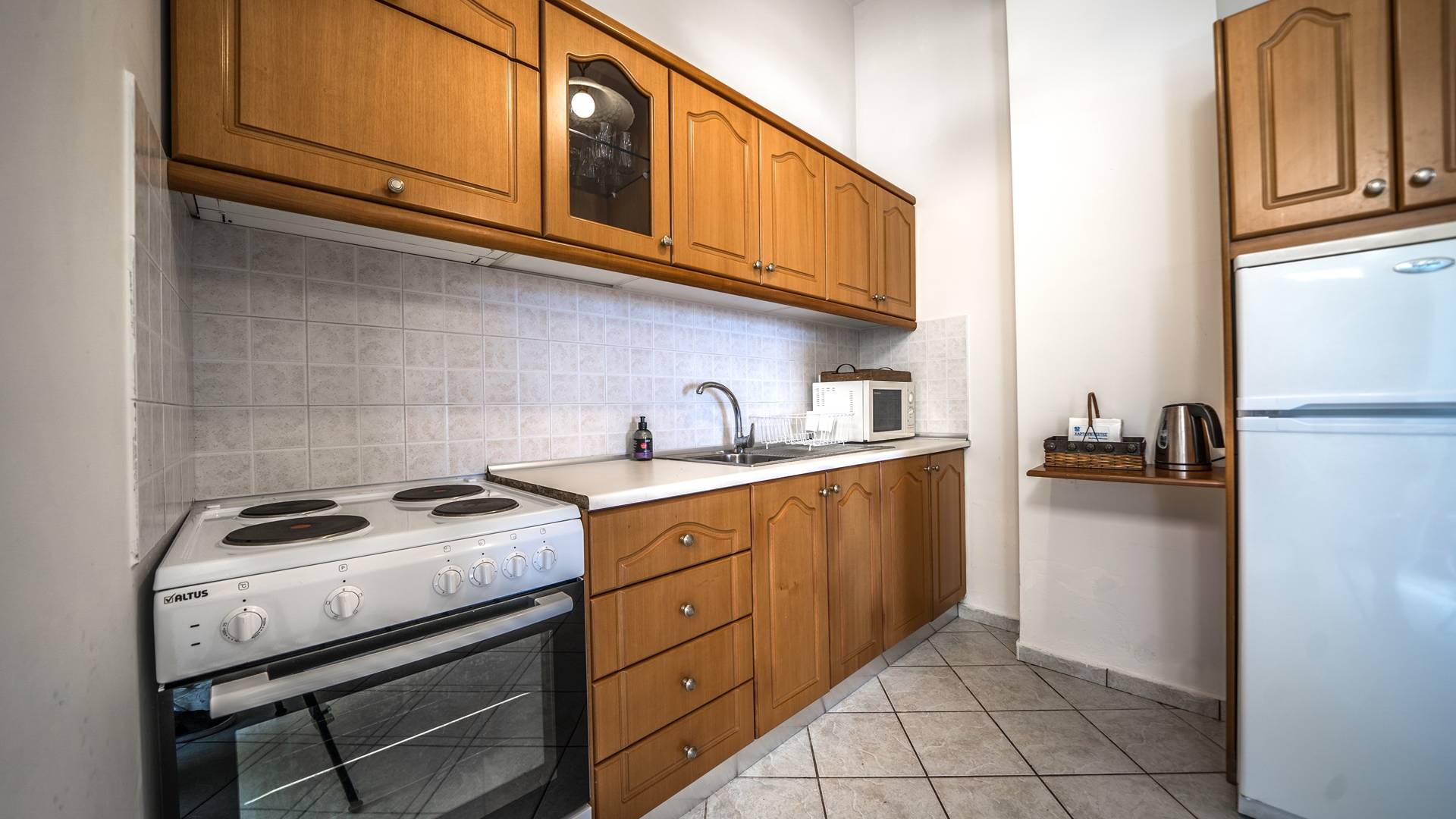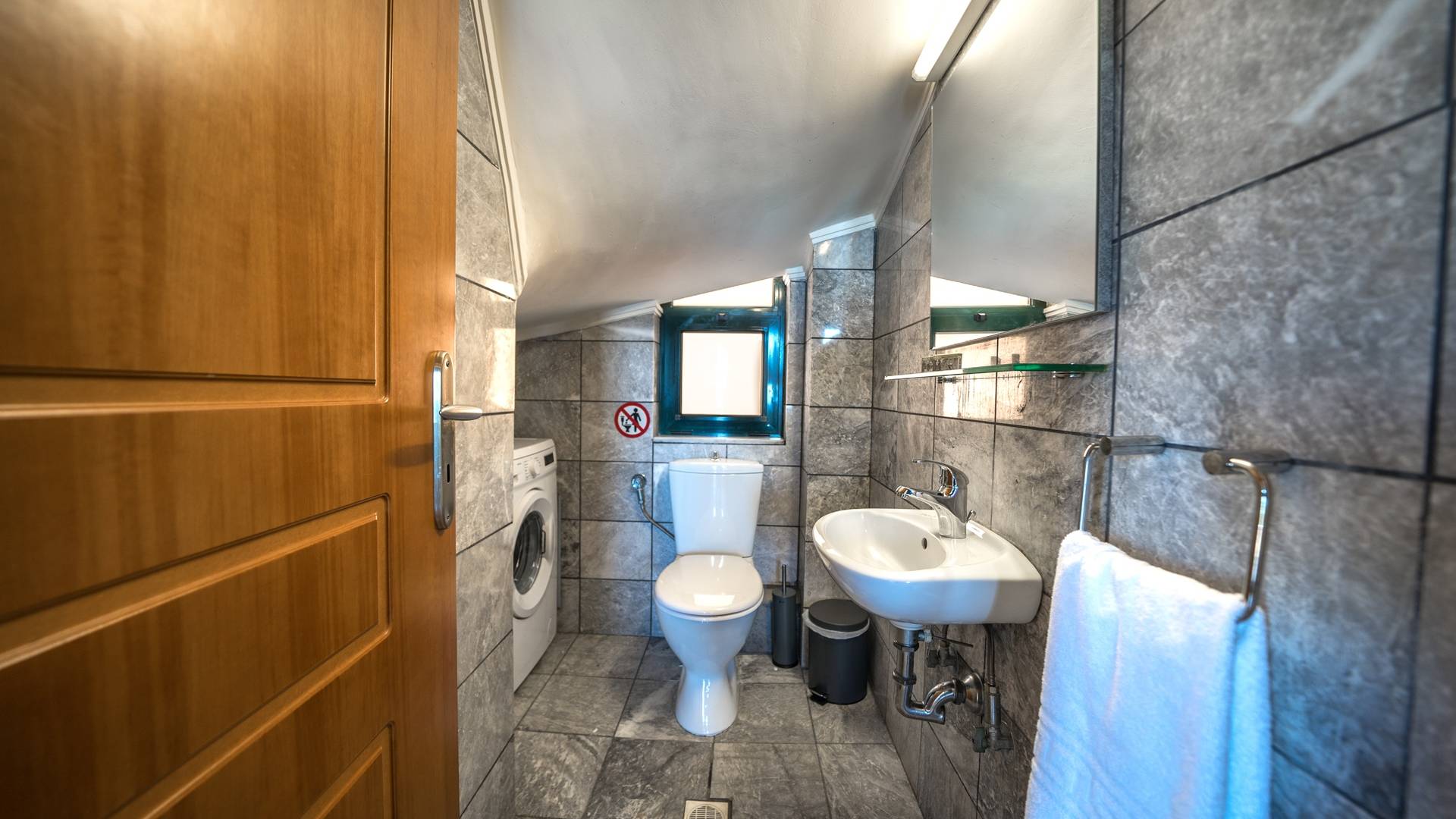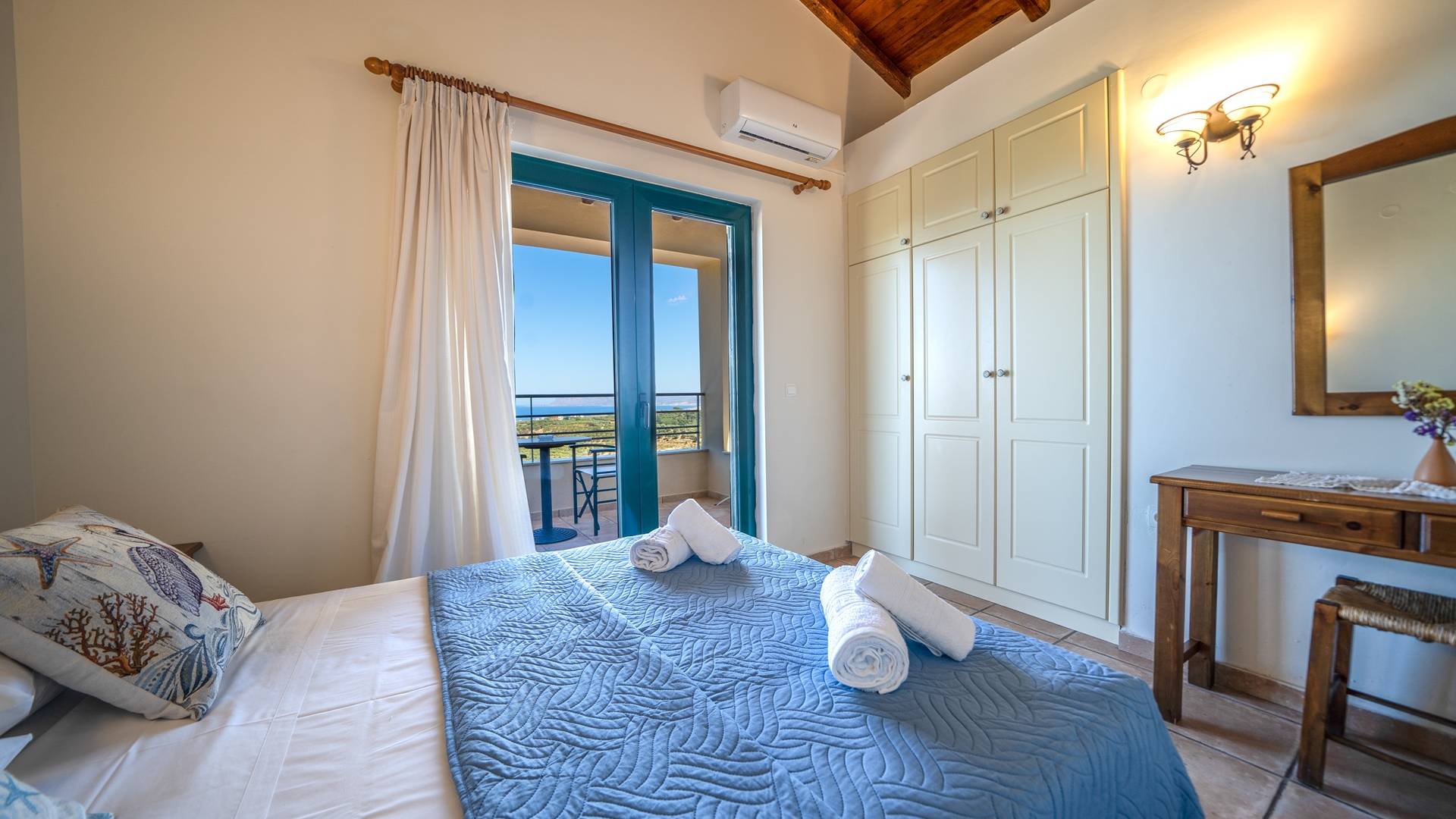 Thomas Villa consta del segundo y tercer piso. La entrada principal conduce al segundo piso y a una acogedora sala de estar/comedor iluminada por el sol. Esta zona con la chimenea está amueblada de forma tradicional. La cocina totalmente equipada y un aseo están en la misma planta. Las escaleras conducen al segundo piso, donde puede ver tres dormitorios, uno doble y dos individuales, y dos baños. Uno de los baños está en suite con el dormitorio doble. Todas las habitaciones tienen balcones con vistas panorámicas.