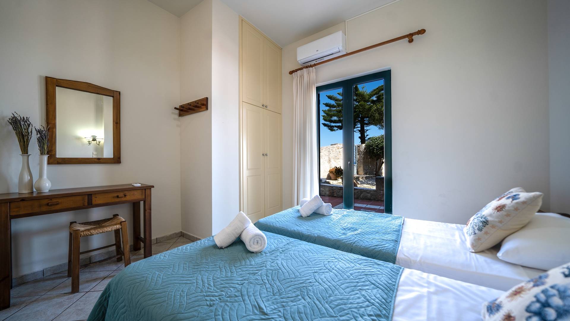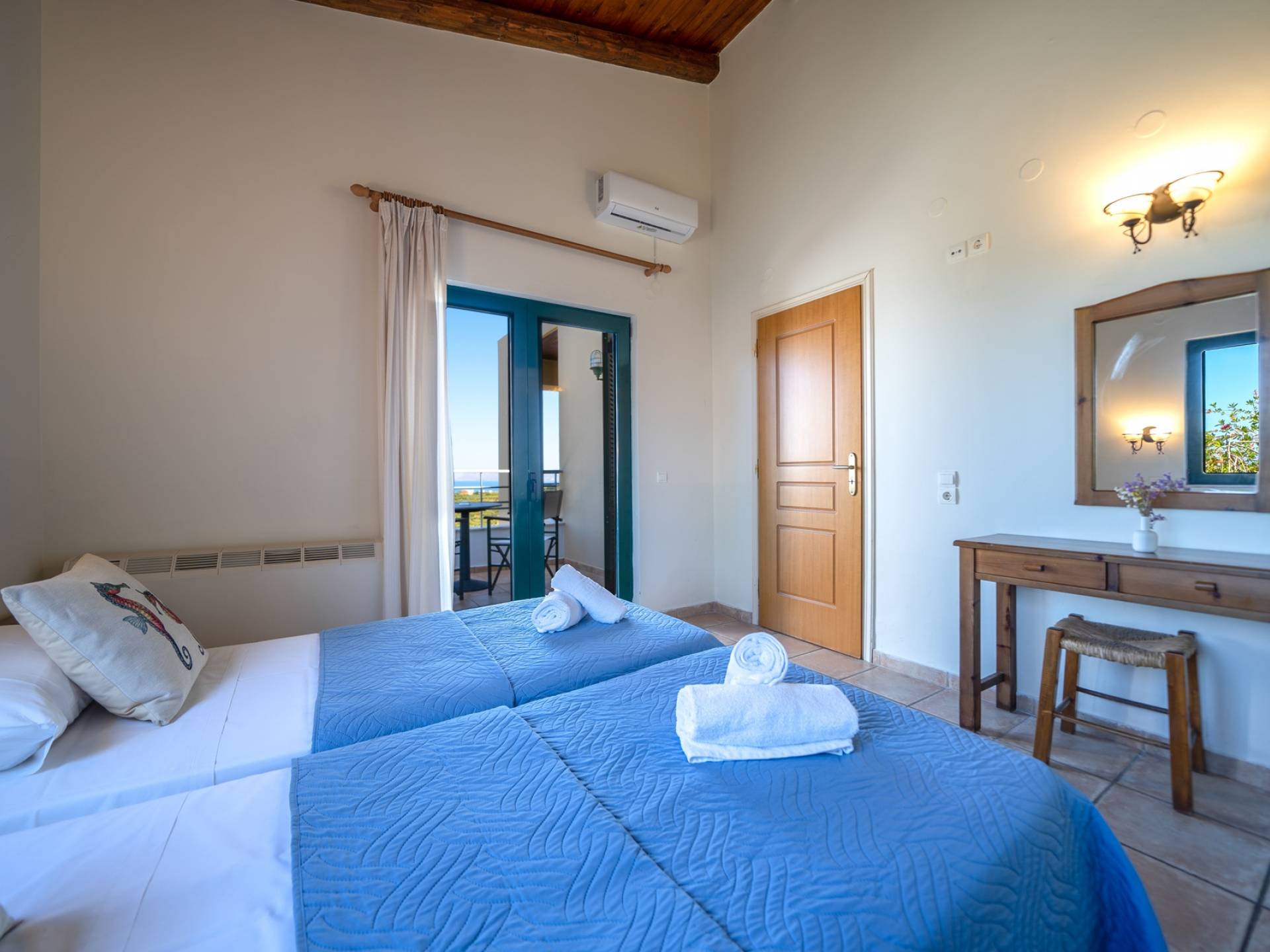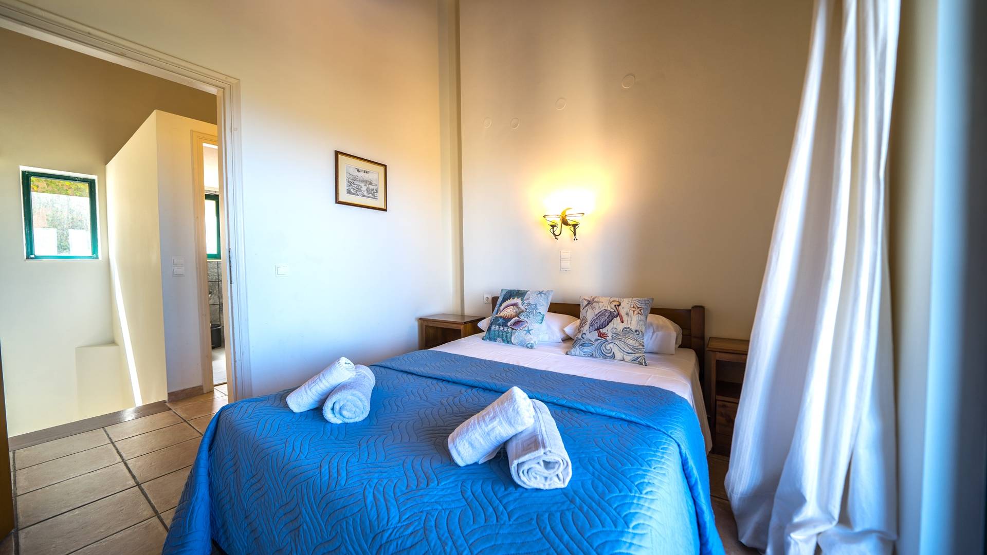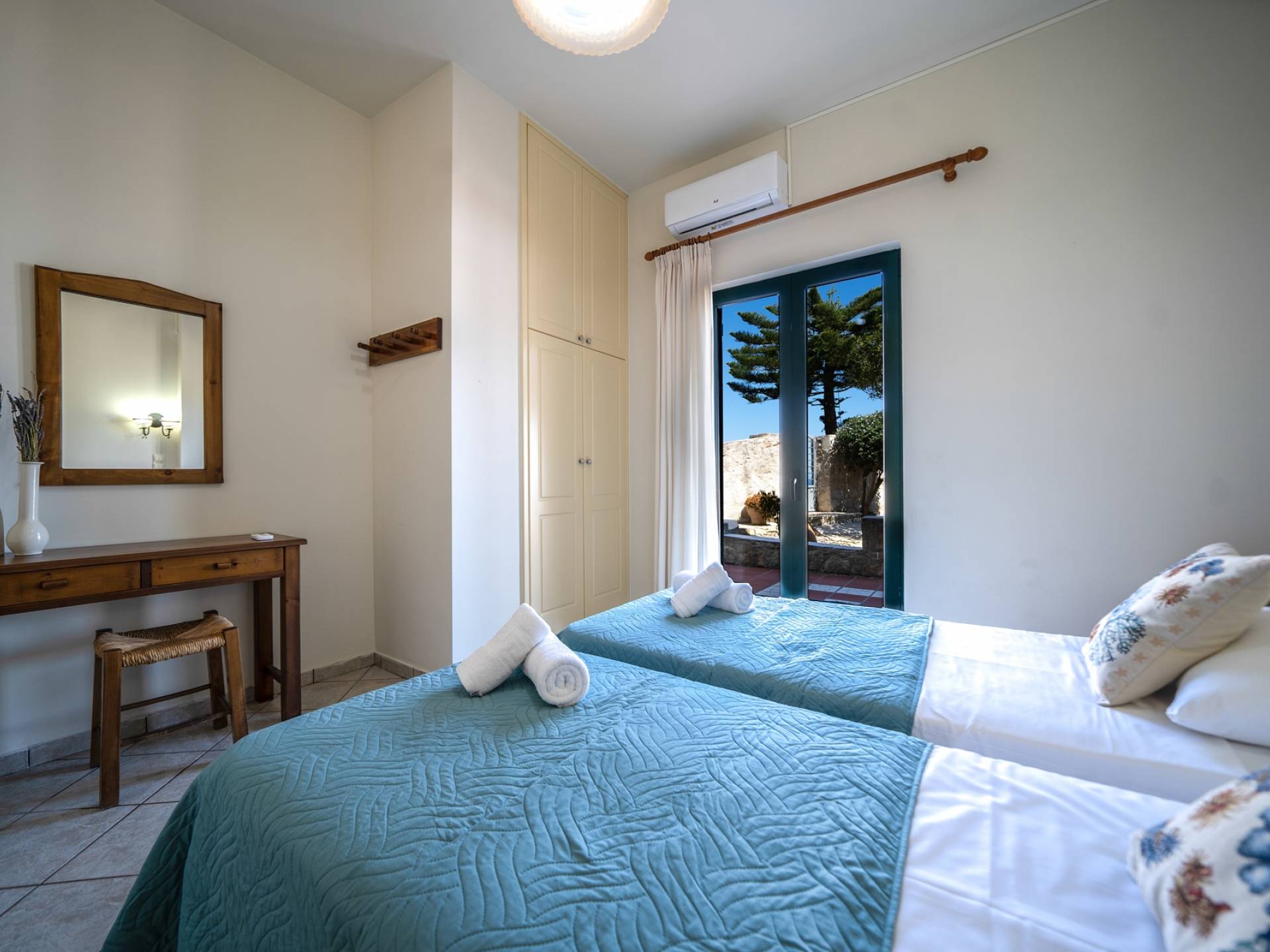 Todo el primer piso es Sofia Villa. Esta villa consta de una sala de estar/comedor tradicional, una cocina totalmente equipada, tres dormitorios y dos baños. Dos de los dormitorios son dobles, pero el tercero es doble. Este tiene un baño privado y puertas francesas que conducen a la terraza y la piscina. La persona 13 y 14 dormirá en sofá cama o cama supletoria.