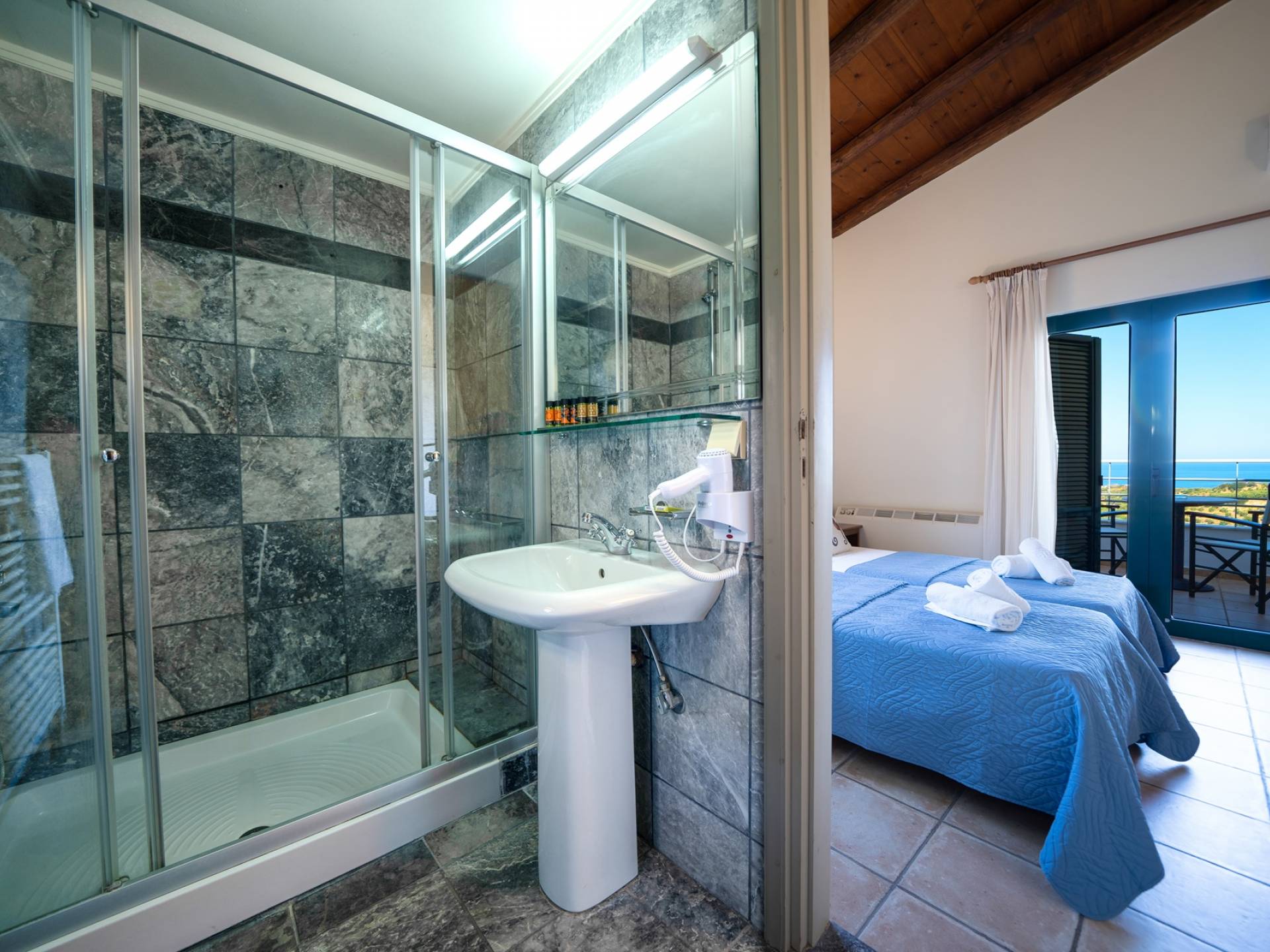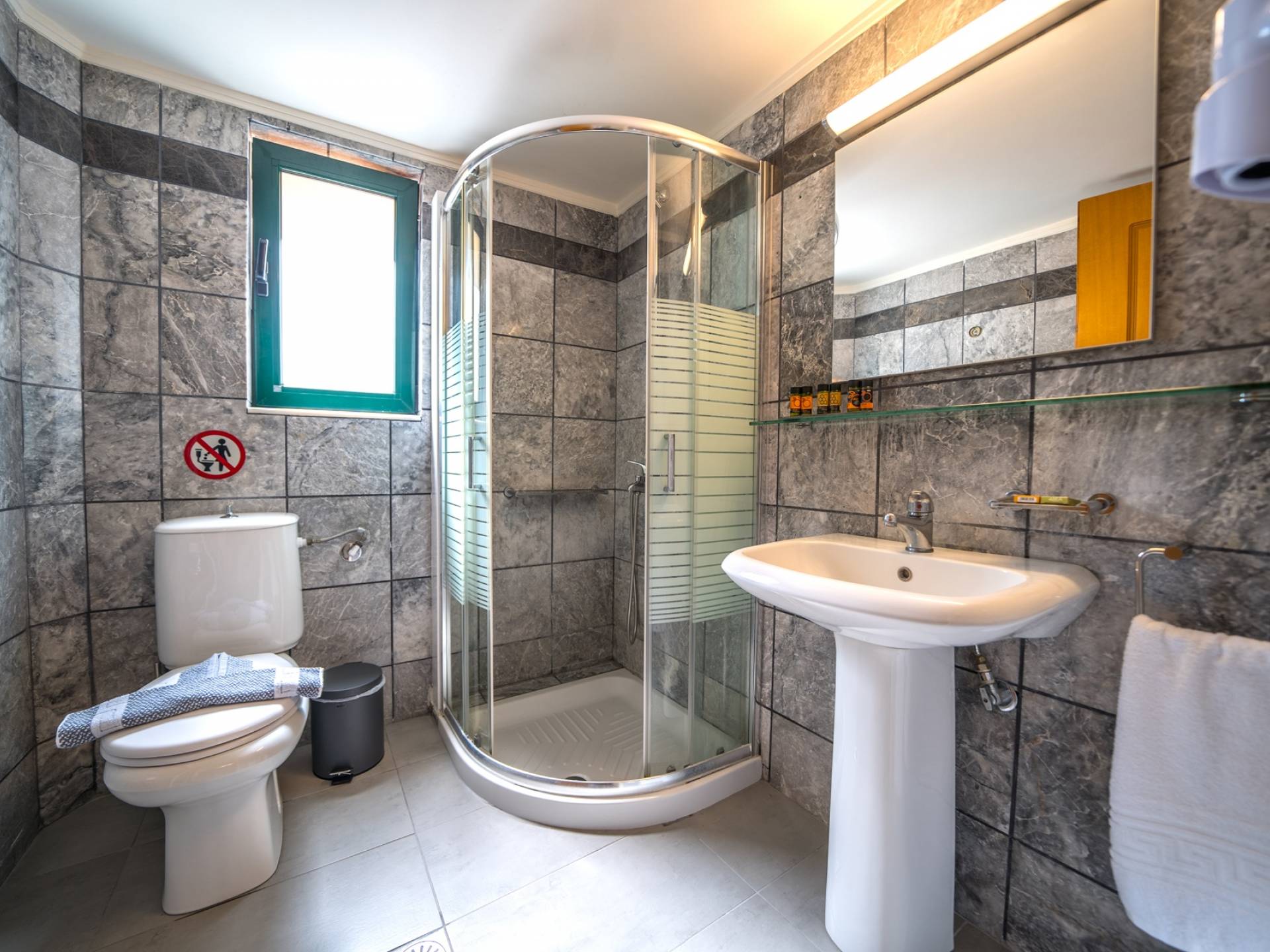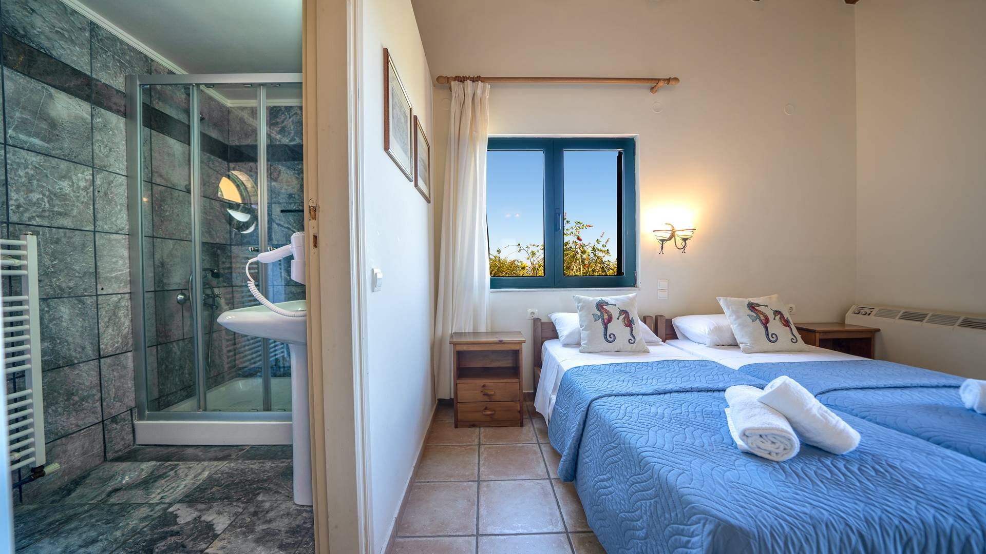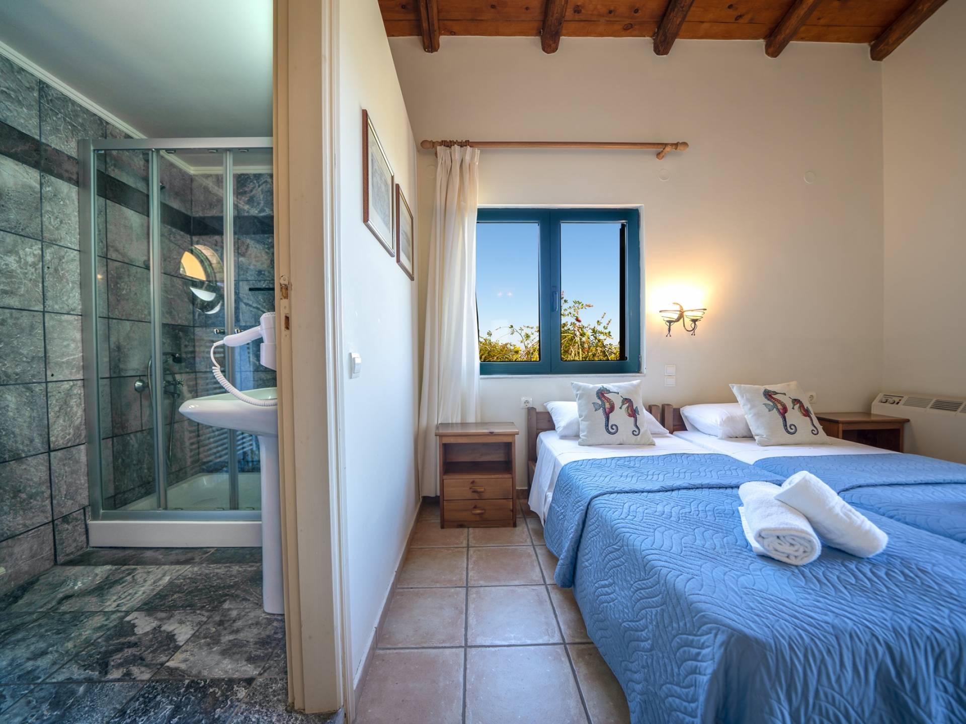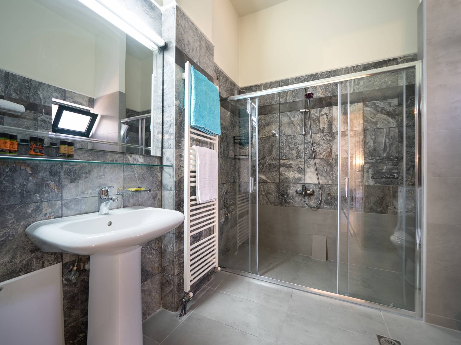 Todo el primer piso es Sofia Villa. Esta villa consta de una sala de estar/comedor tradicional, una cocina totalmente equipada, tres dormitorios y dos baños. Dos de los dormitorios son dobles, pero el tercero es doble. Este tiene un baño privado y puertas francesas que conducen a la terraza y la piscina. La persona 13 y 14 dormirá en sofá cama o cama supletoria.