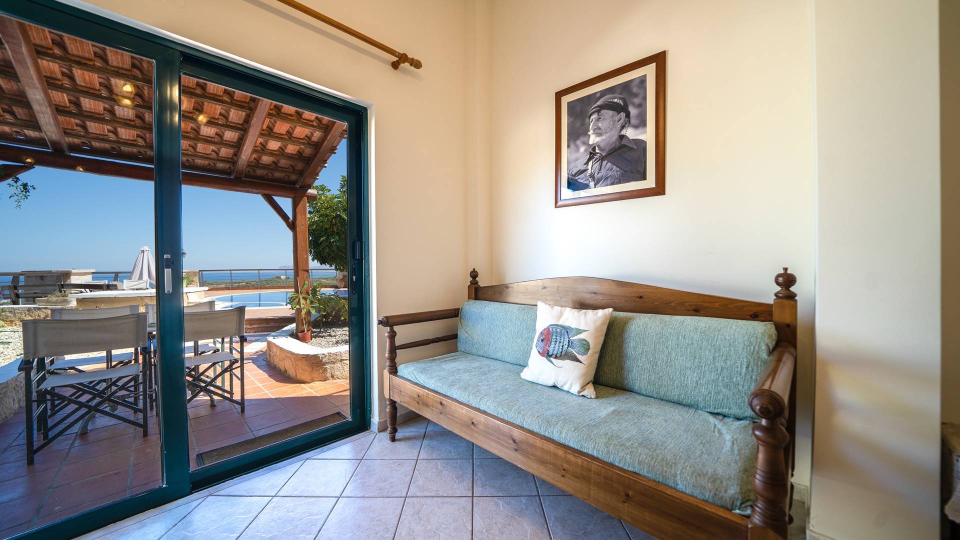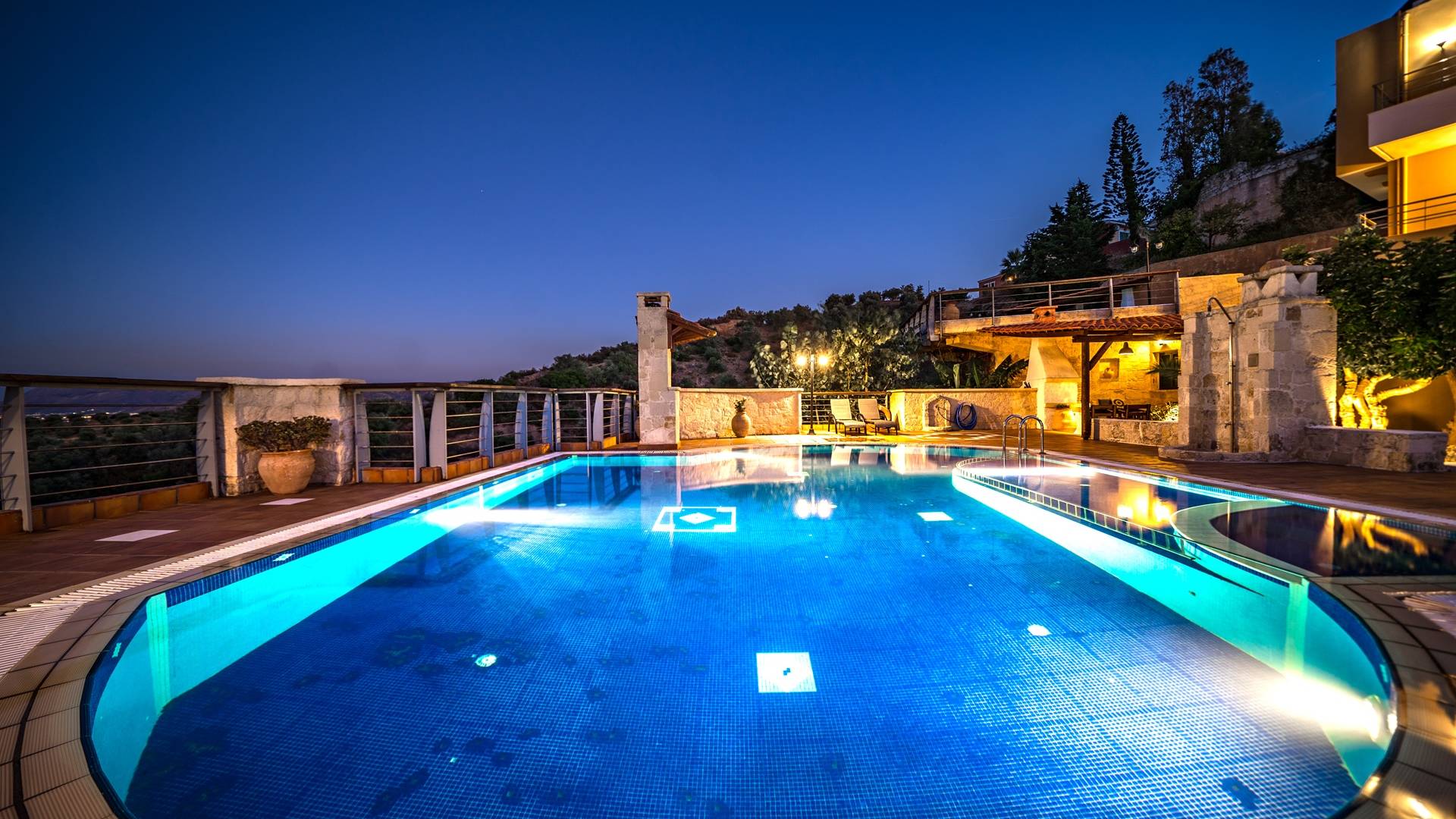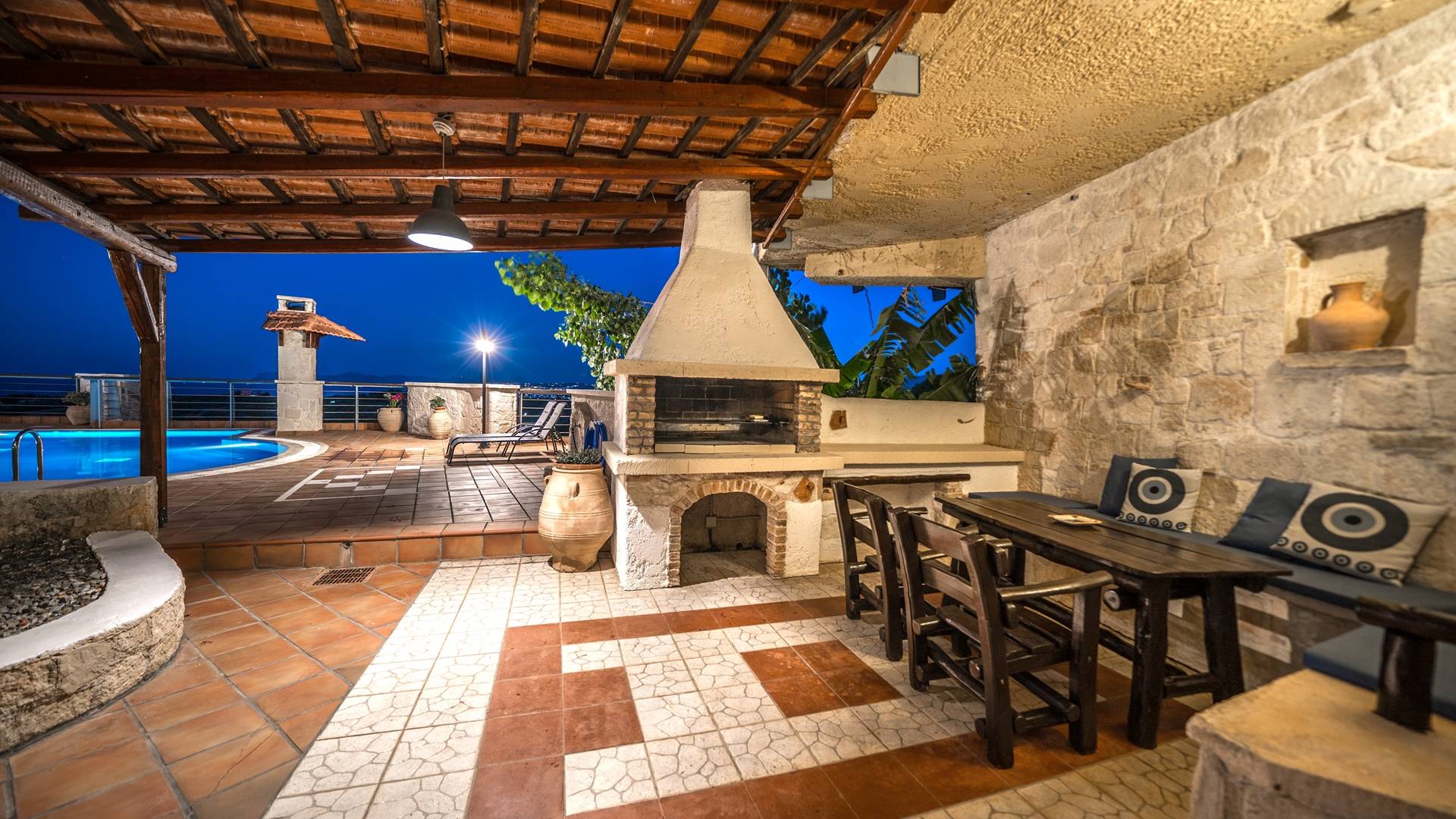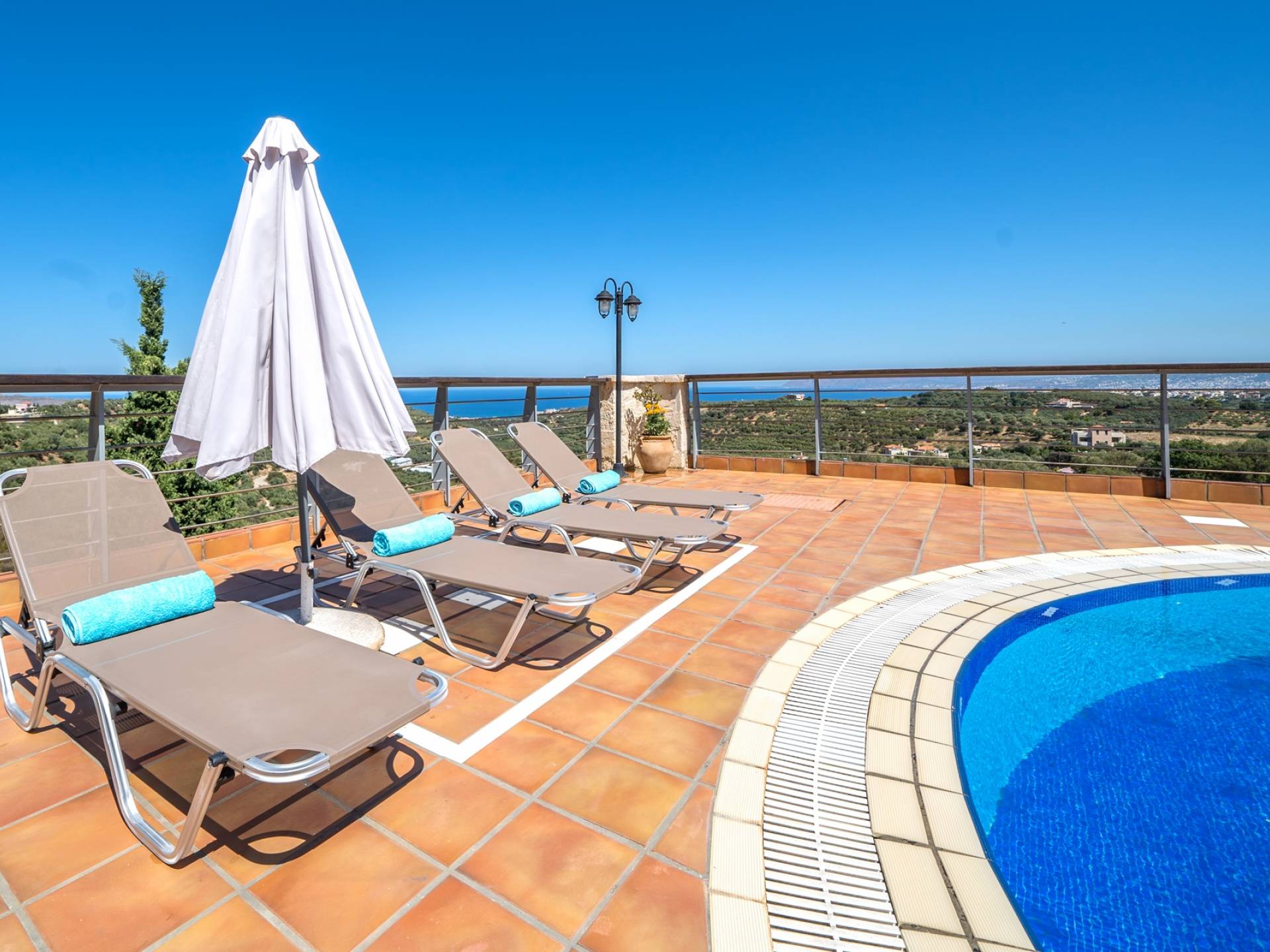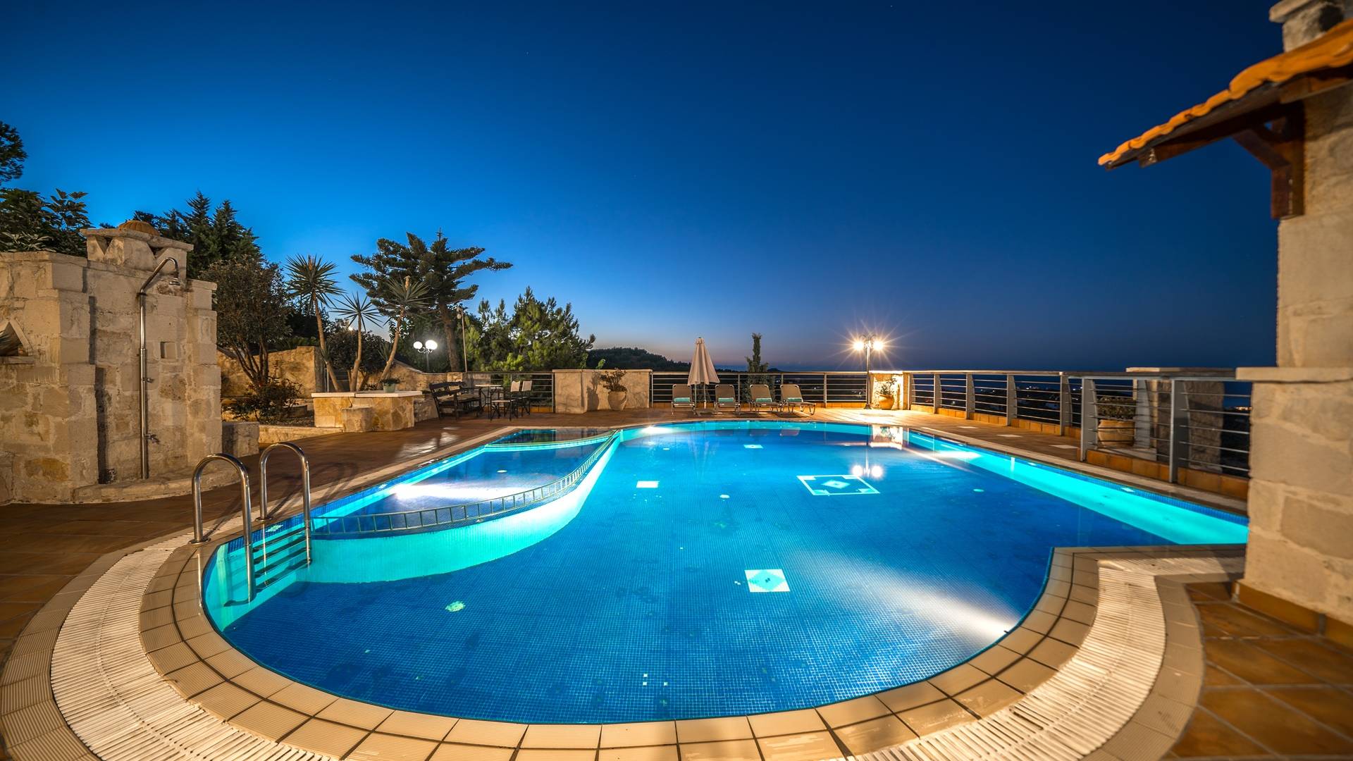 Hay un espacio exterior privado para cada villa. Además de una gran área cubierta con barbacoa, un horno de piedra tradicional y un juego de jardín, Sofia Villa cuenta con una piscina privada de 45 metros cuadrados con una piscina infantil integrada. La piscina privada de 45 metros cuadrados en Thomas Villa incluye una piscina para niños. Un patio de barbacoa cubierto es otra característica de esta villa. La vista panorámica es increíble desde ambos espacios exteriores. Las luces de la ciudad de Chania brindan una vista aún más impresionante por la noche.
