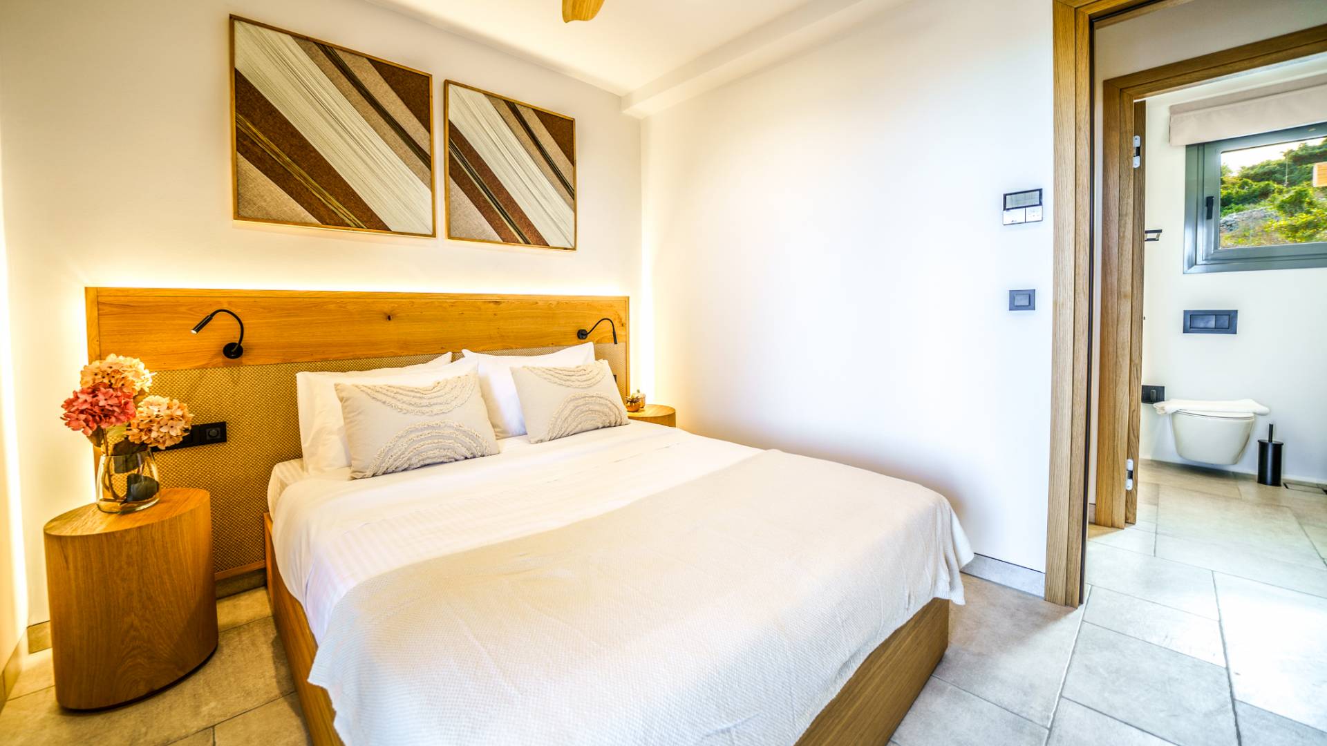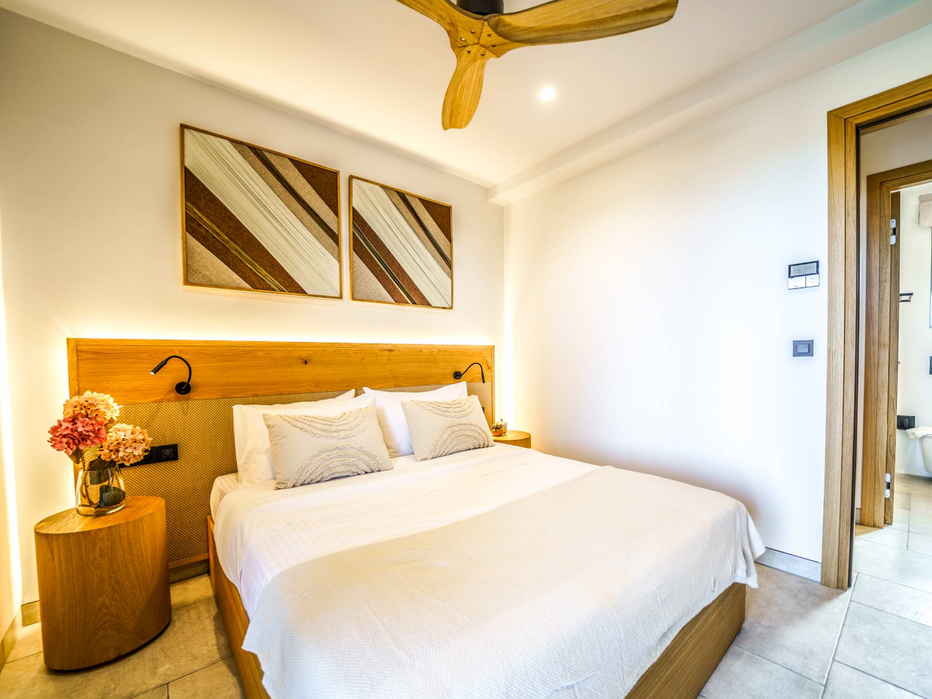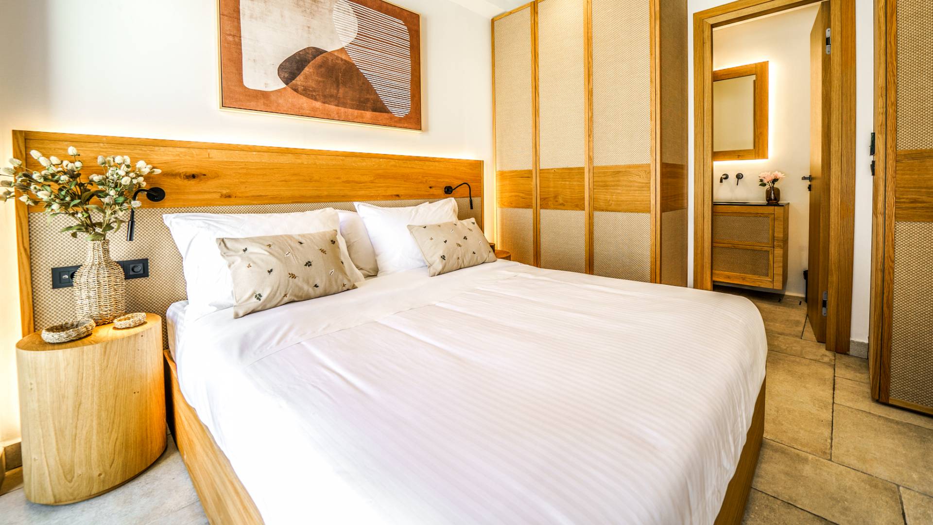 - Bedroom 1 with queen bed, ensuite bathroom and direct access to the terrace
