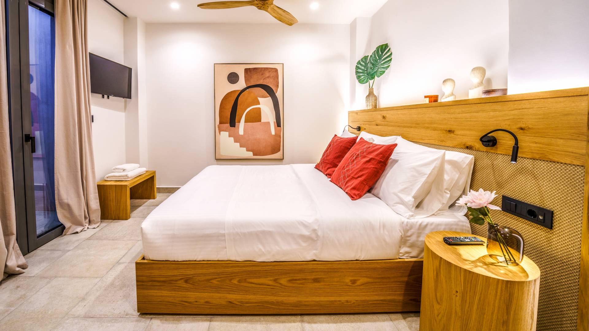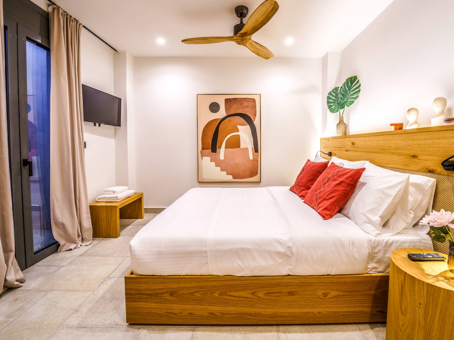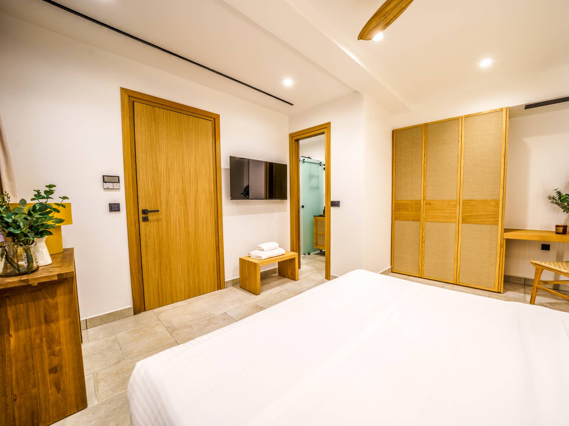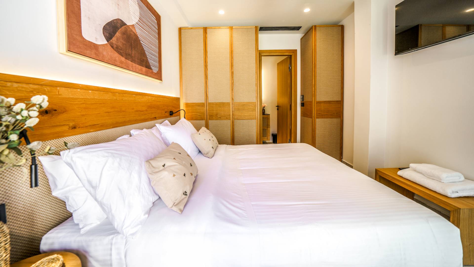 - Bedroom 1 with queen bed, ensuite bathroom and direct access to the terrace