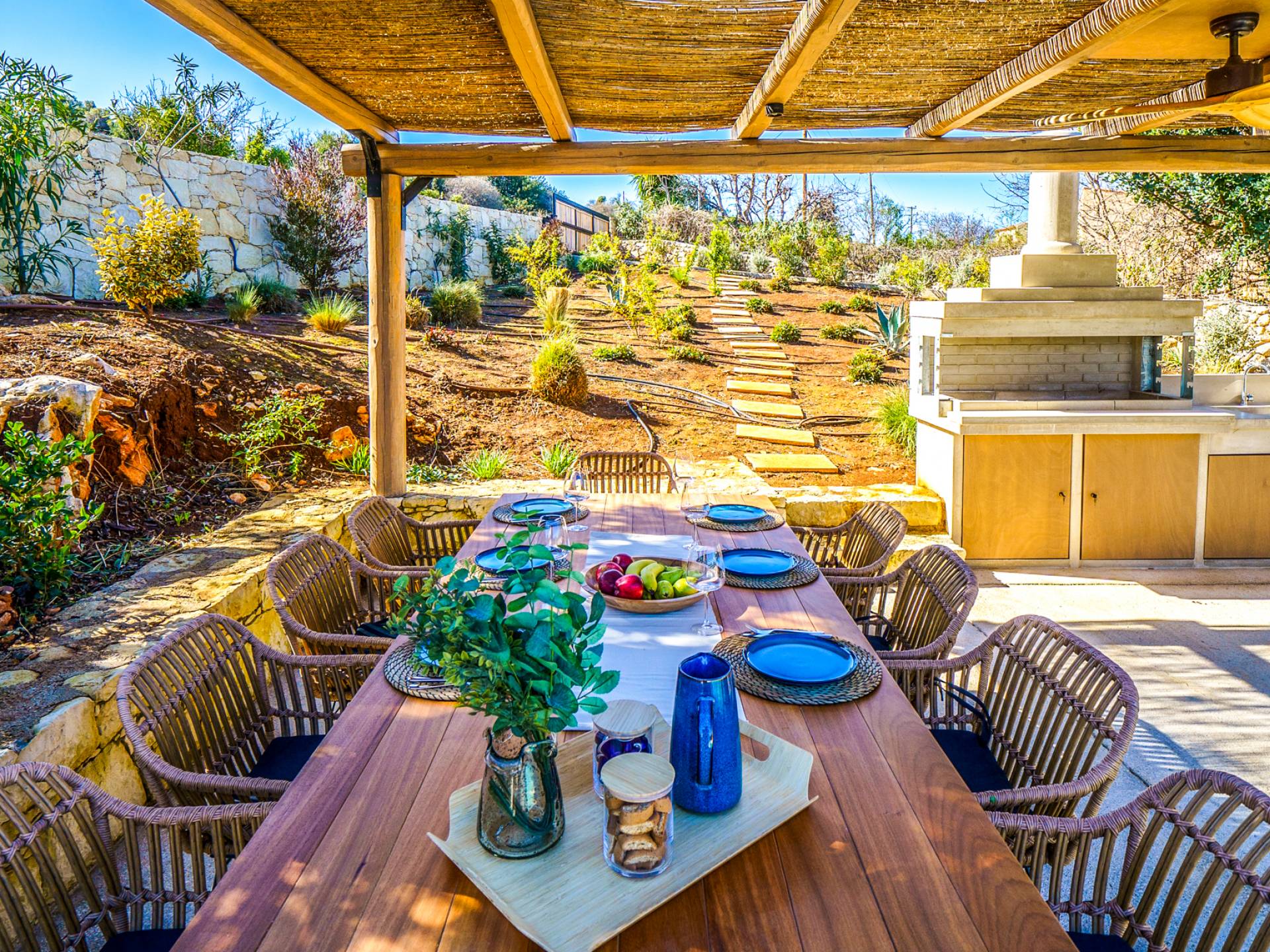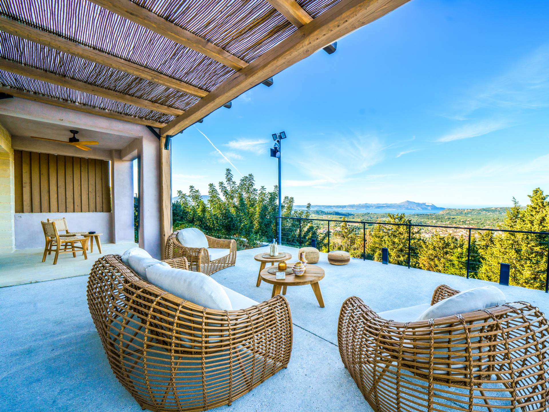 These luxury villas offering 10 beautifully appointed bedrooms, 2 private heated poosl, 2 BBQ areas, and spectacular panoramic views of the sea, valley, and surrounding mountains.