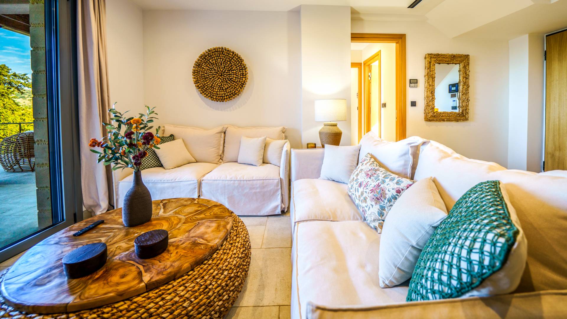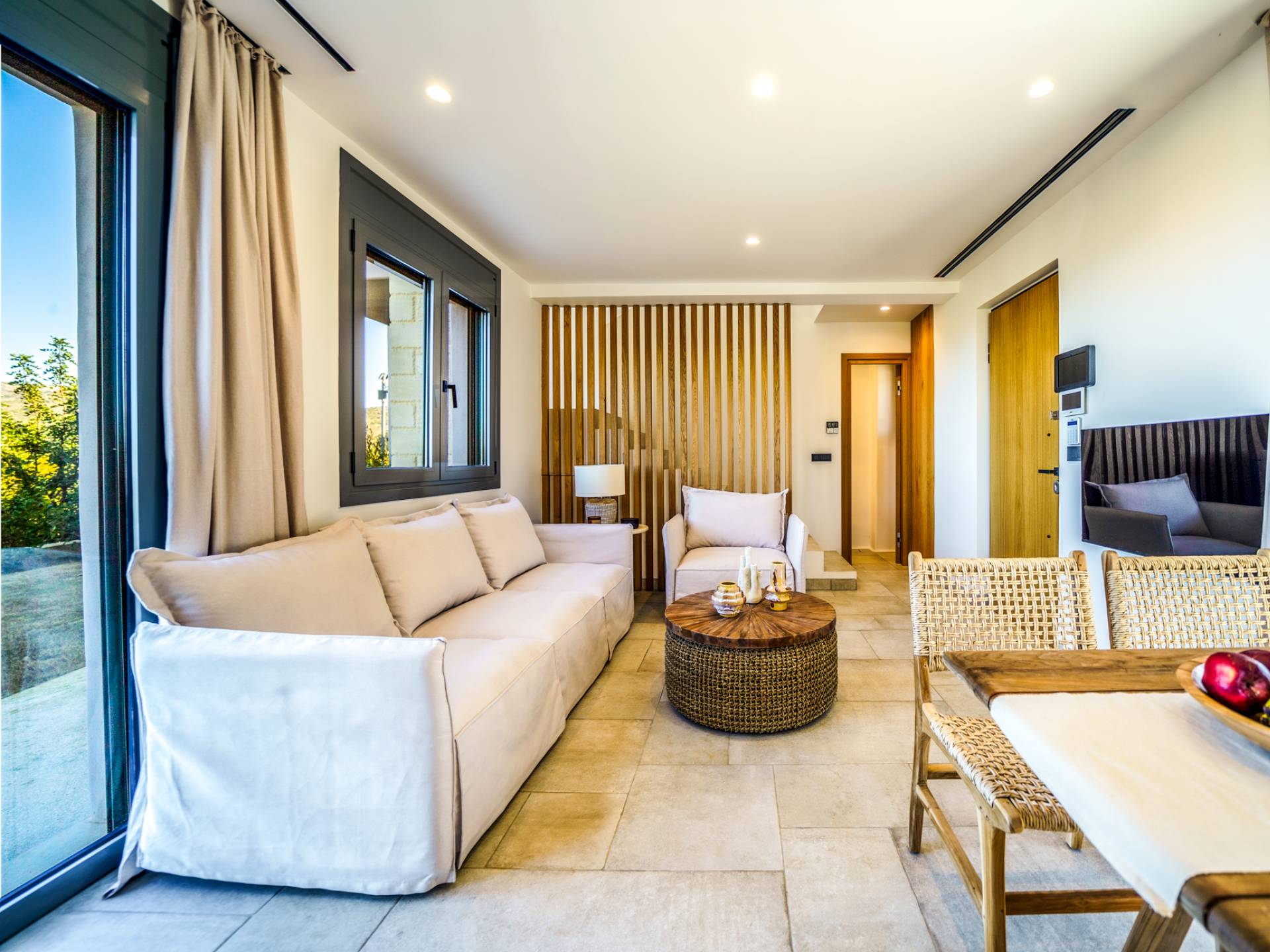 - Elegant open-plan living area with 55'' Smart TV and sea view