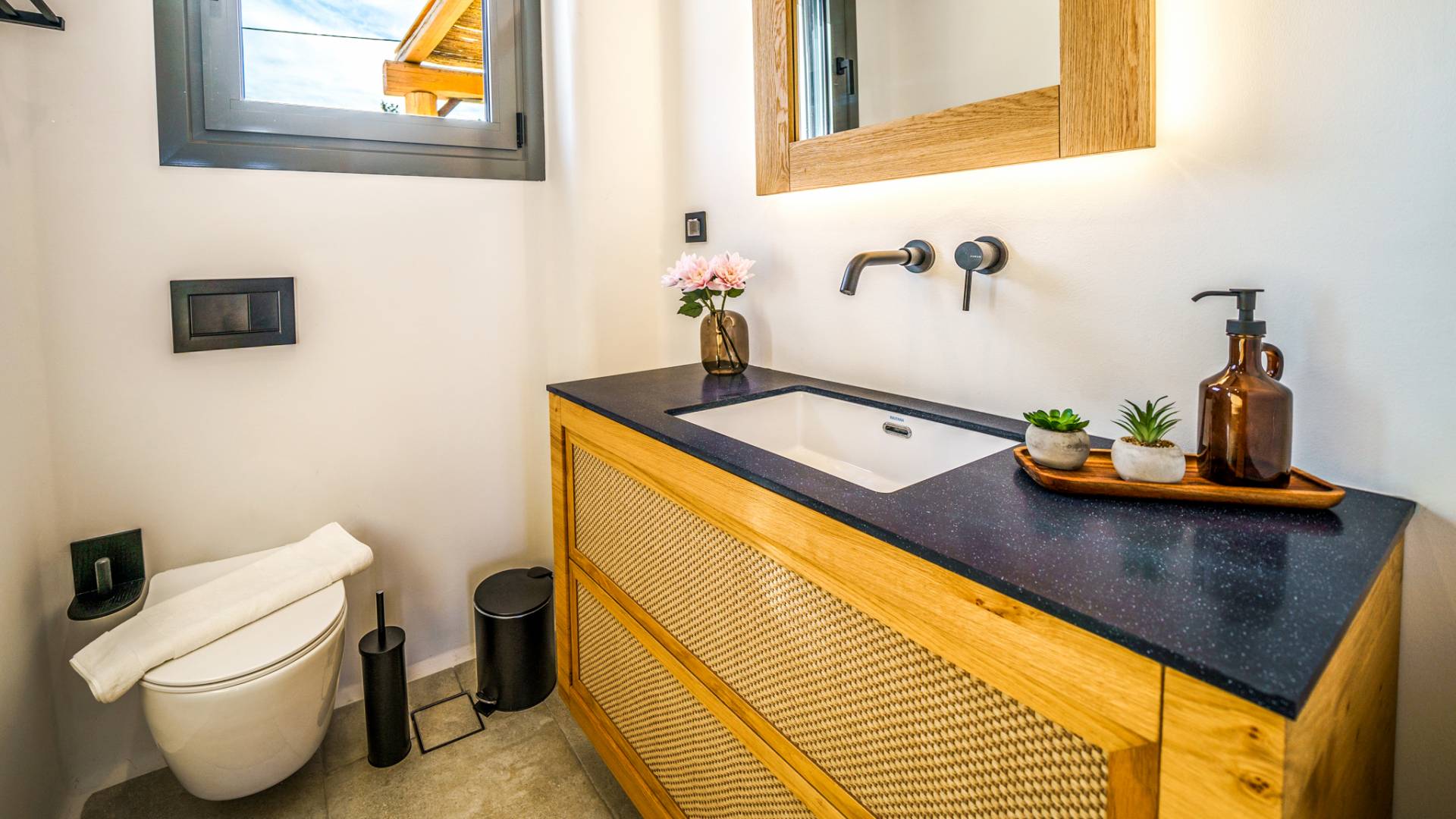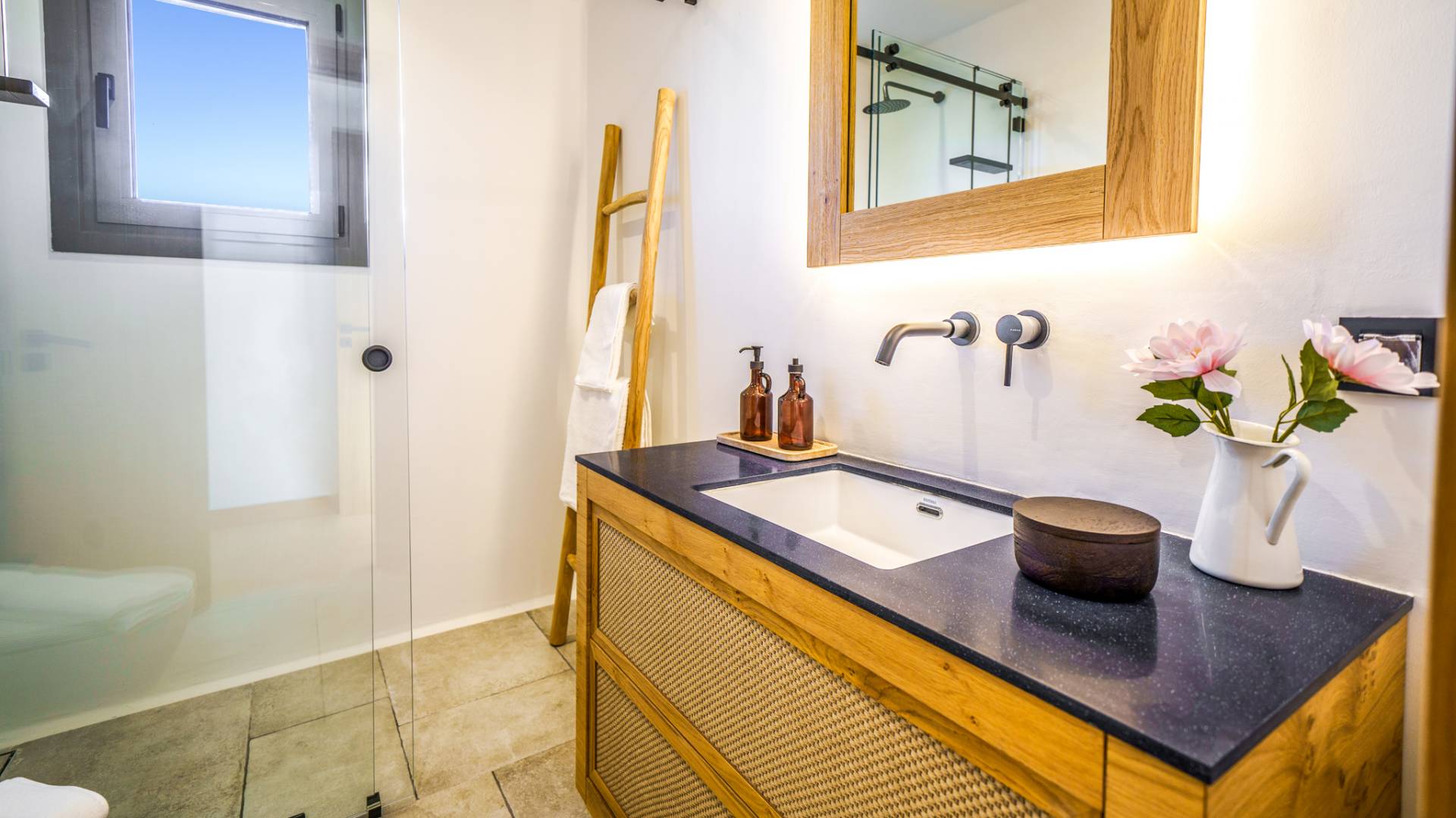 This 140 m² villa blends modern elegance with warm Mediterranean character: