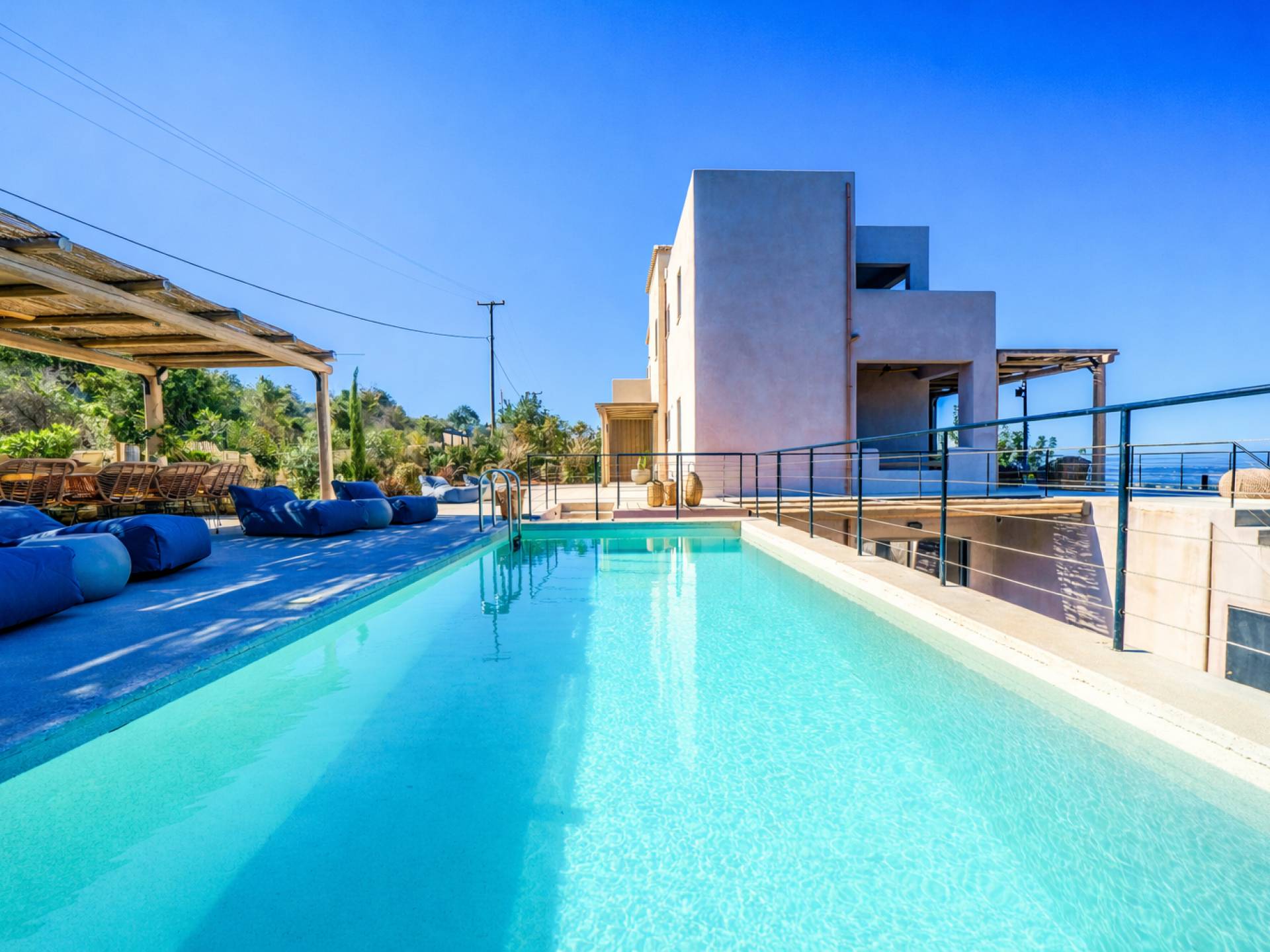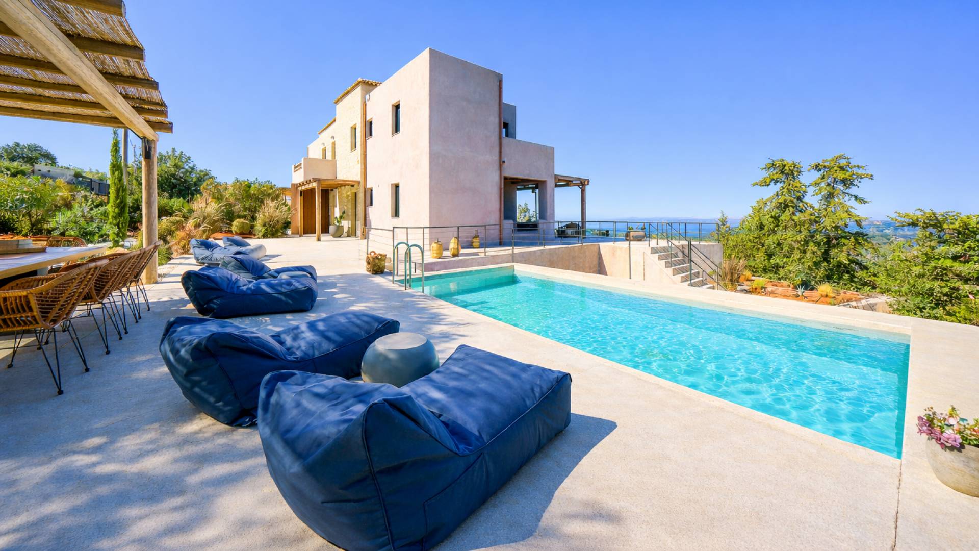 This 170 m² villa blends modern elegance with warm Mediterranean character: