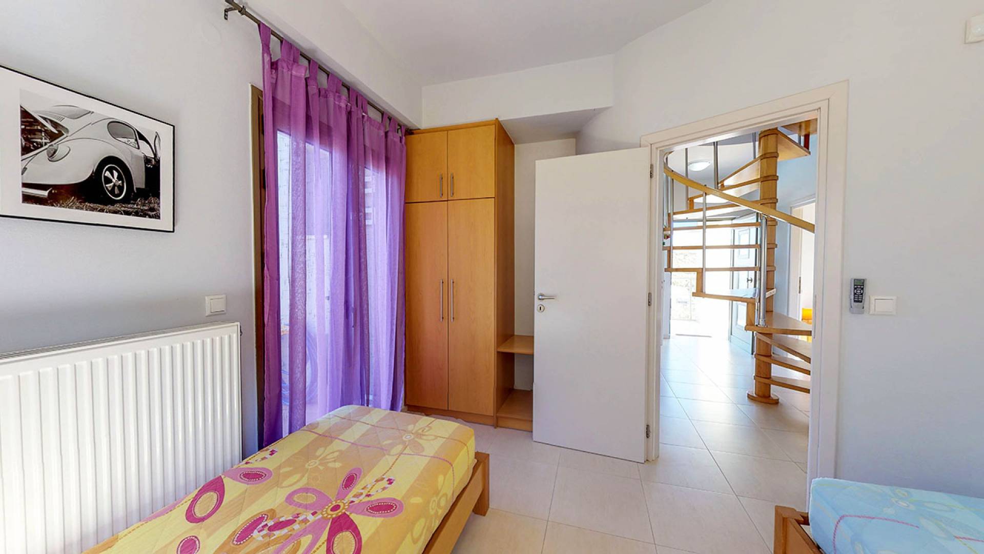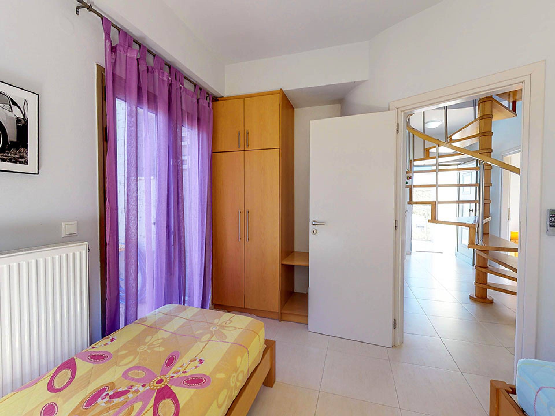 En la planta baja: hay una gran habitación doble con piscina privada cubierta: jacuzzi, sauna, 1 baño y 1 cocina totalmente equipada. También hay un sofá cama doble. En el primer piso: encontrará 1 dormitorio con una cama doble grande y 2 dormitorios más con 1 cama doble y 1 más con 2 camas individuales. También hay un baño grande con bañera de hidromasaje. En el tercer piso: se encuentra la sala de estar, una cocina totalmente equipada, un comedor con vista completa al mar y el baño. También hay una amplia terraza con vistas espectaculares. Exterior: Dispone de piscina privada, zona de piscina con hamacas y sombrillas, amplio jardín con césped y barbacoa y zona de aparcamiento.