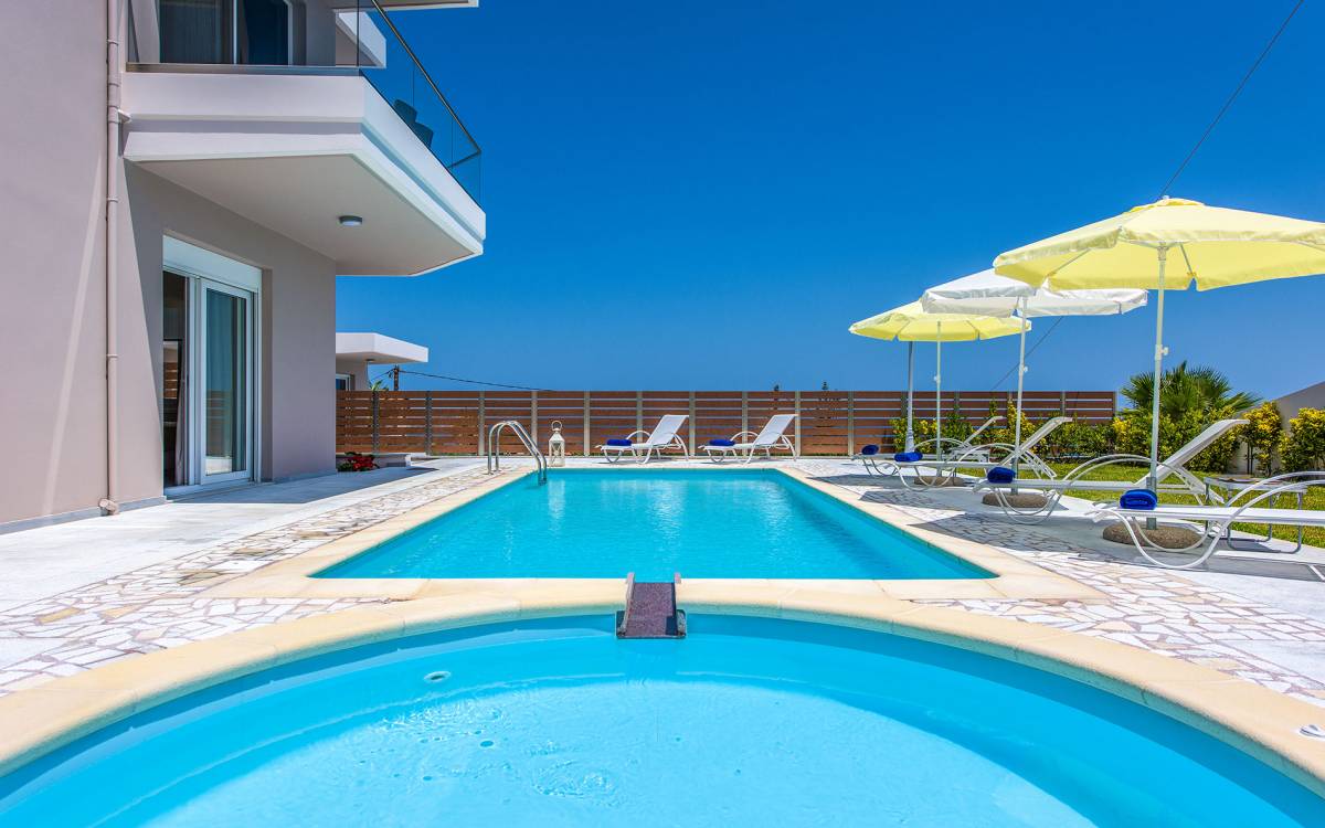 Vero Villa Chania - Welcome to this stunning villa, your perfect getaway with private heated pool & jacuzzi, just 550m from the sandy shores of Agia Marina, only a 5-minute walk! Conveniently located near supermarkets, restaurants, and shops, everything you need is just steps away.