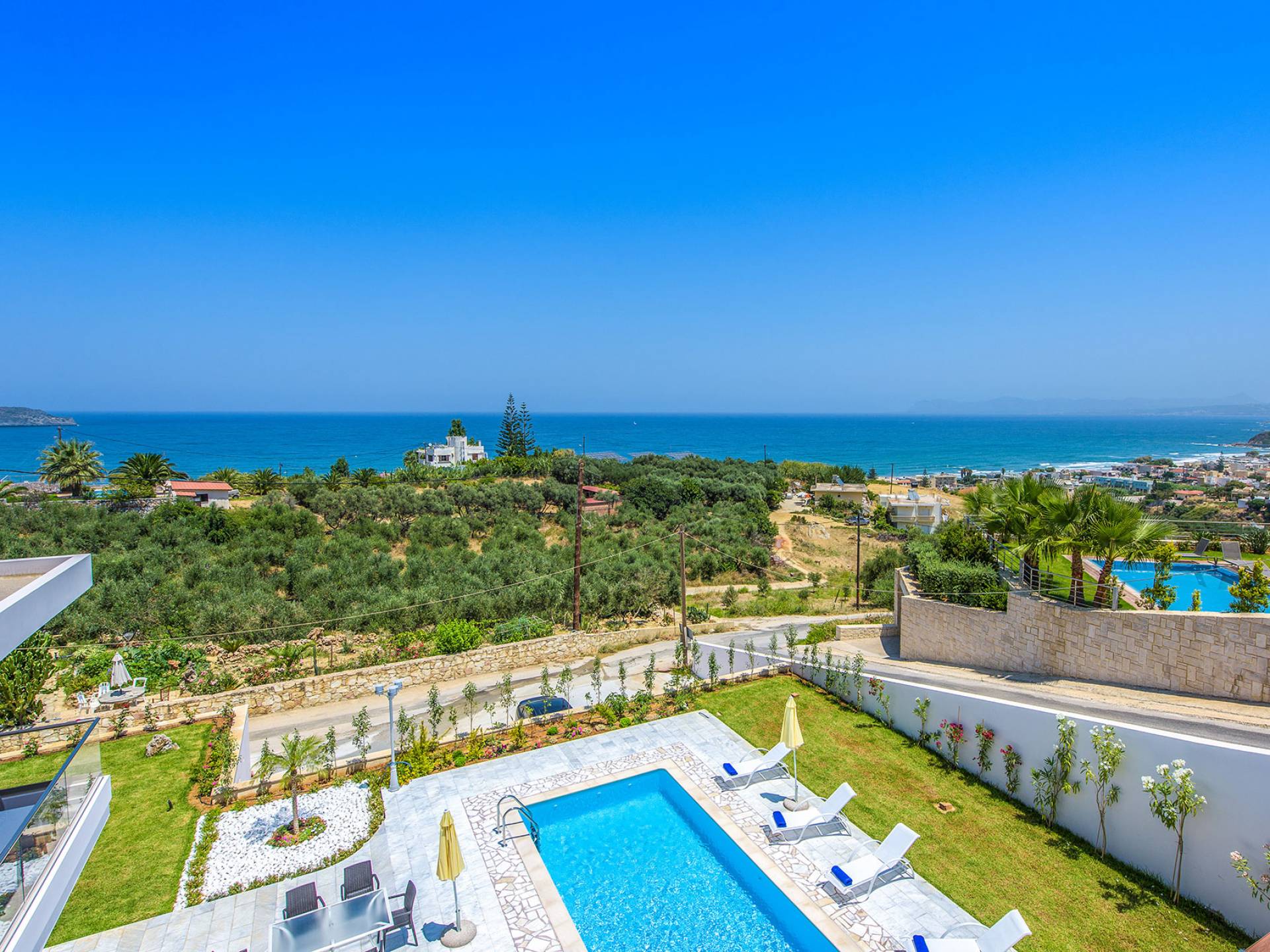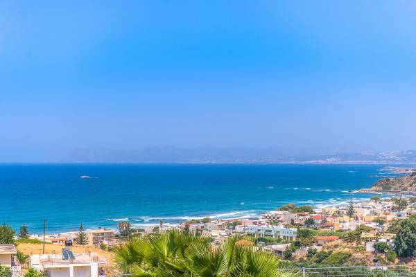 Nestled in a tranquil landscape of olive groves with sweeping views of the Cretan Sea, the villa is ideally located just 550 meters from Agia Marina Beach.