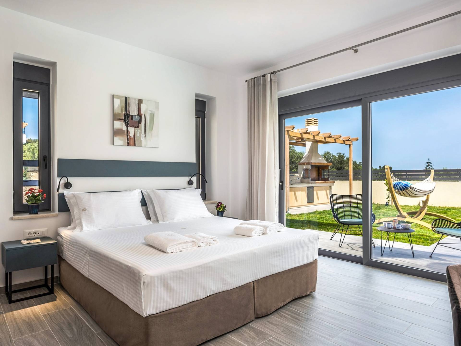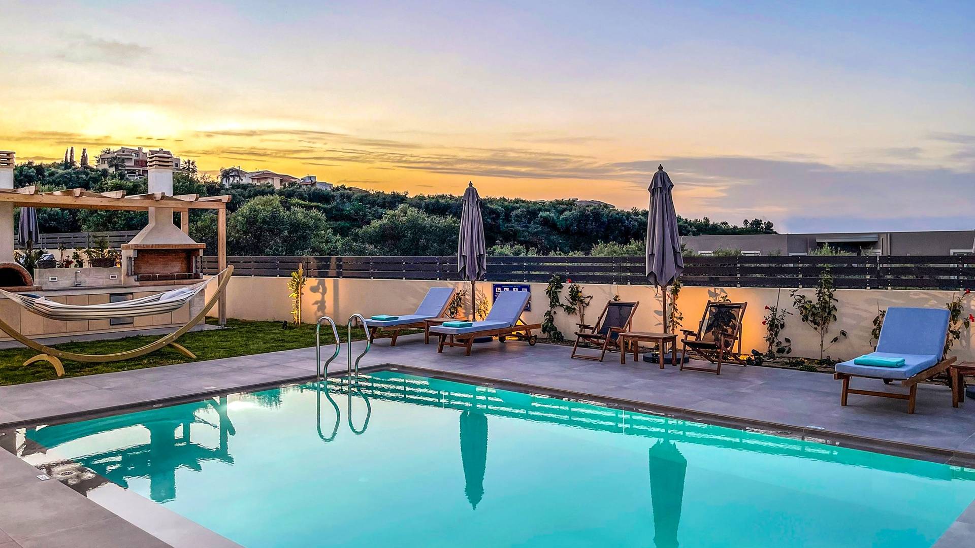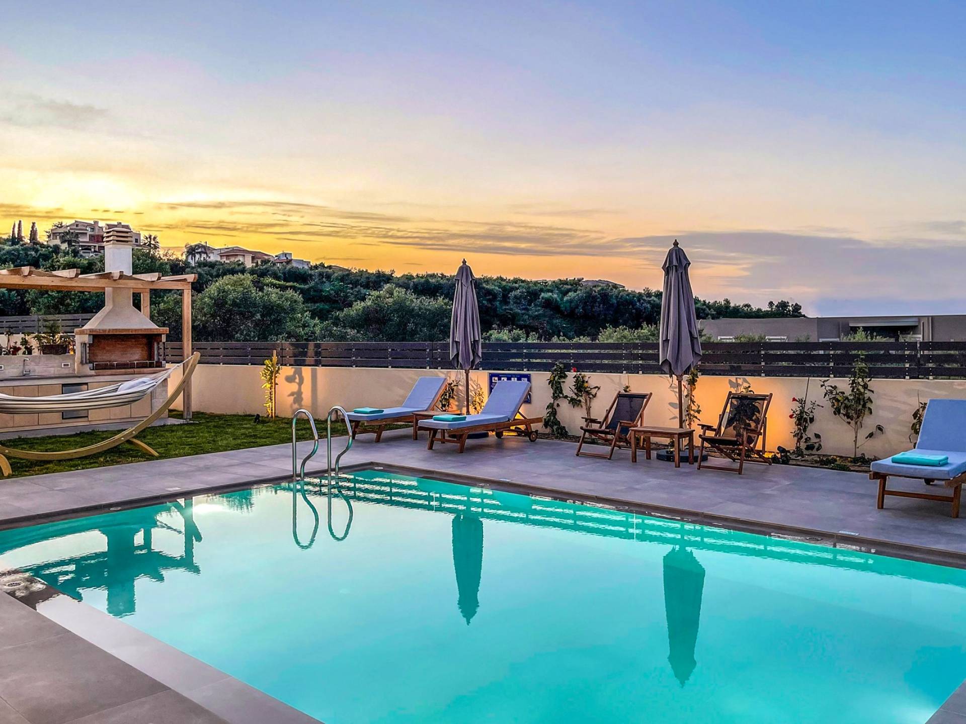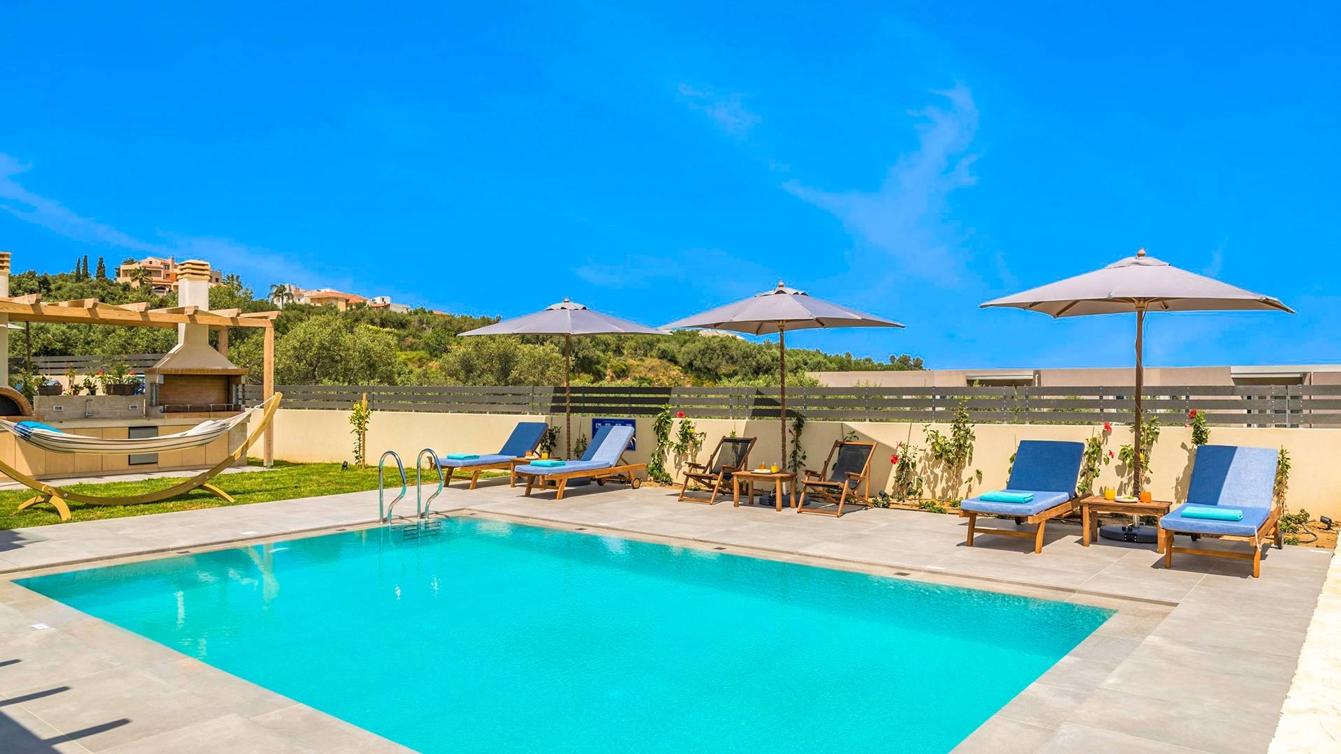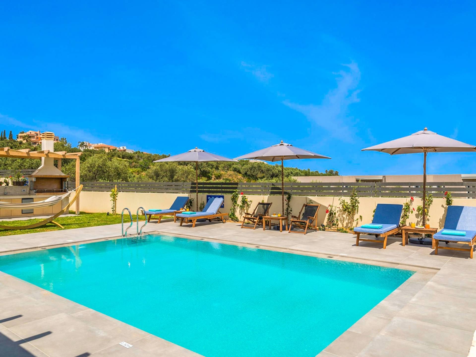 Villa Annias 1 Chania is part of Annias Villas which is a newly built complex of 2 villas, located between the village of Vamvakopoulo and Chania town. The villas shares the main entrance gate and driveway/parking area but all other facilities are private for each Villa. Captivating Chania town with its Venetian harbor, waterfront restaurants, and narrow winding streets is just 4 km away, while the golden sandy beaches of Agii Apostoli and Chrissi Akti are only 2,5 km away.