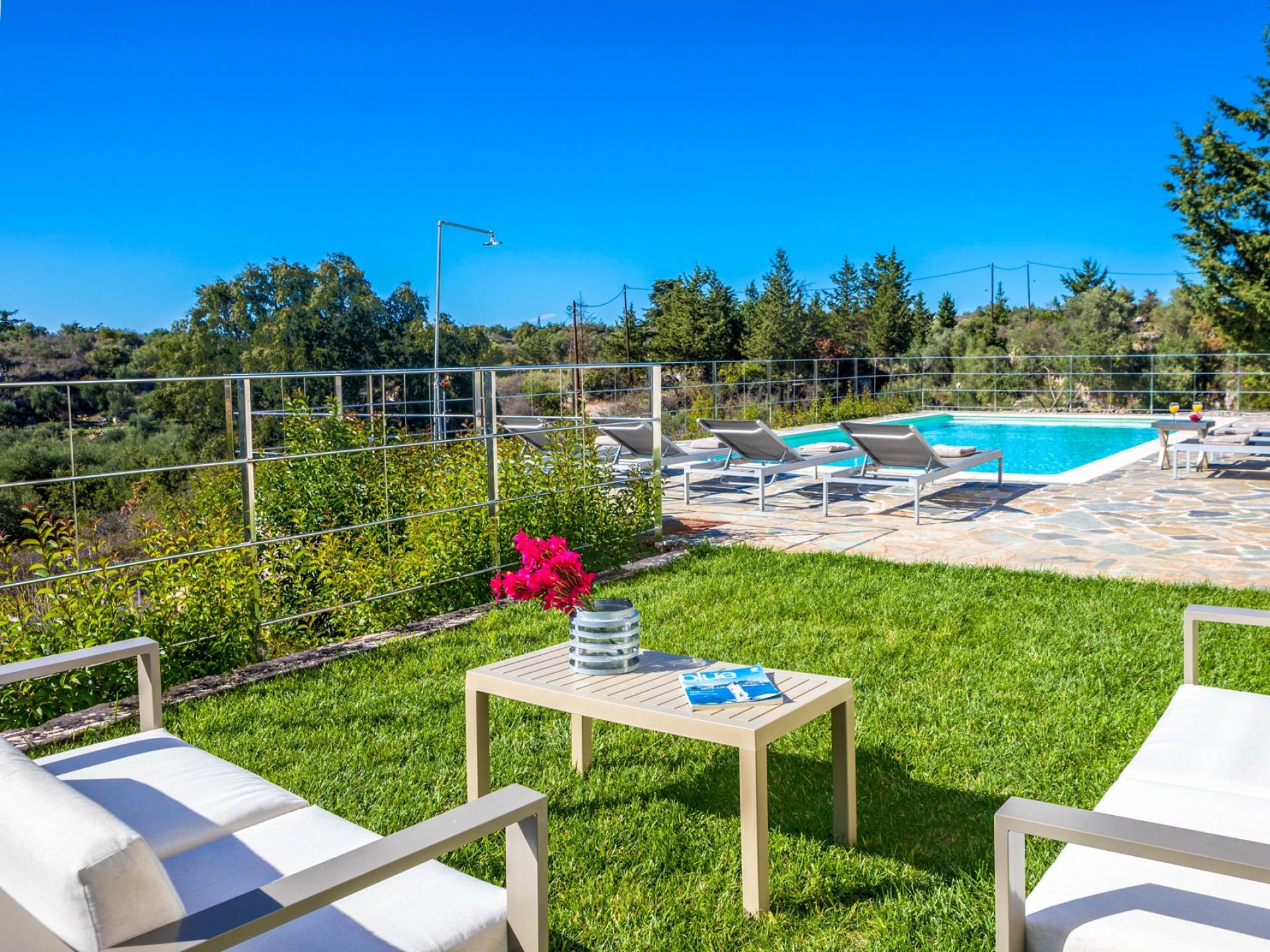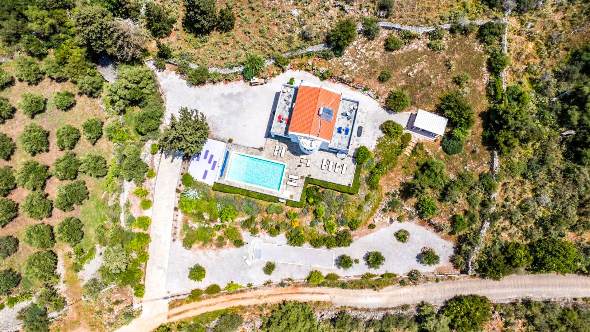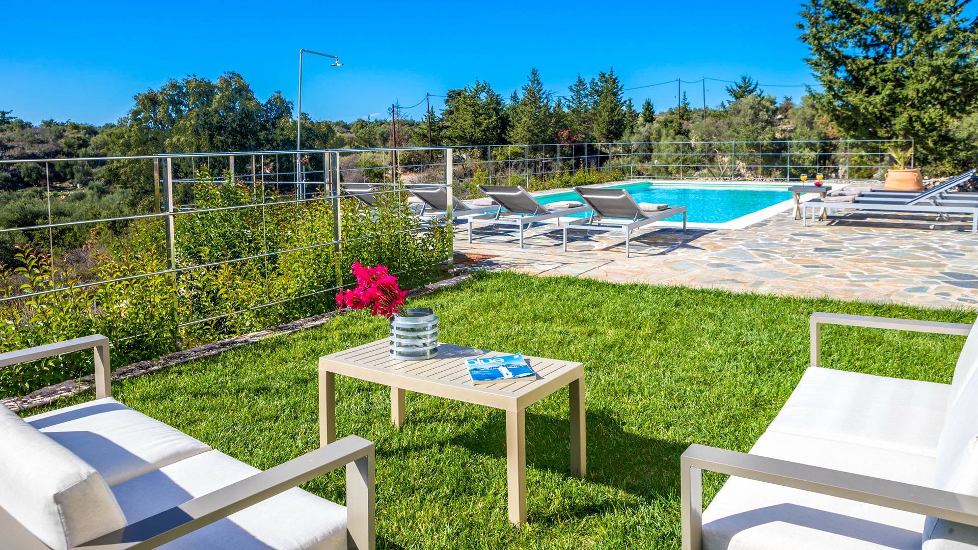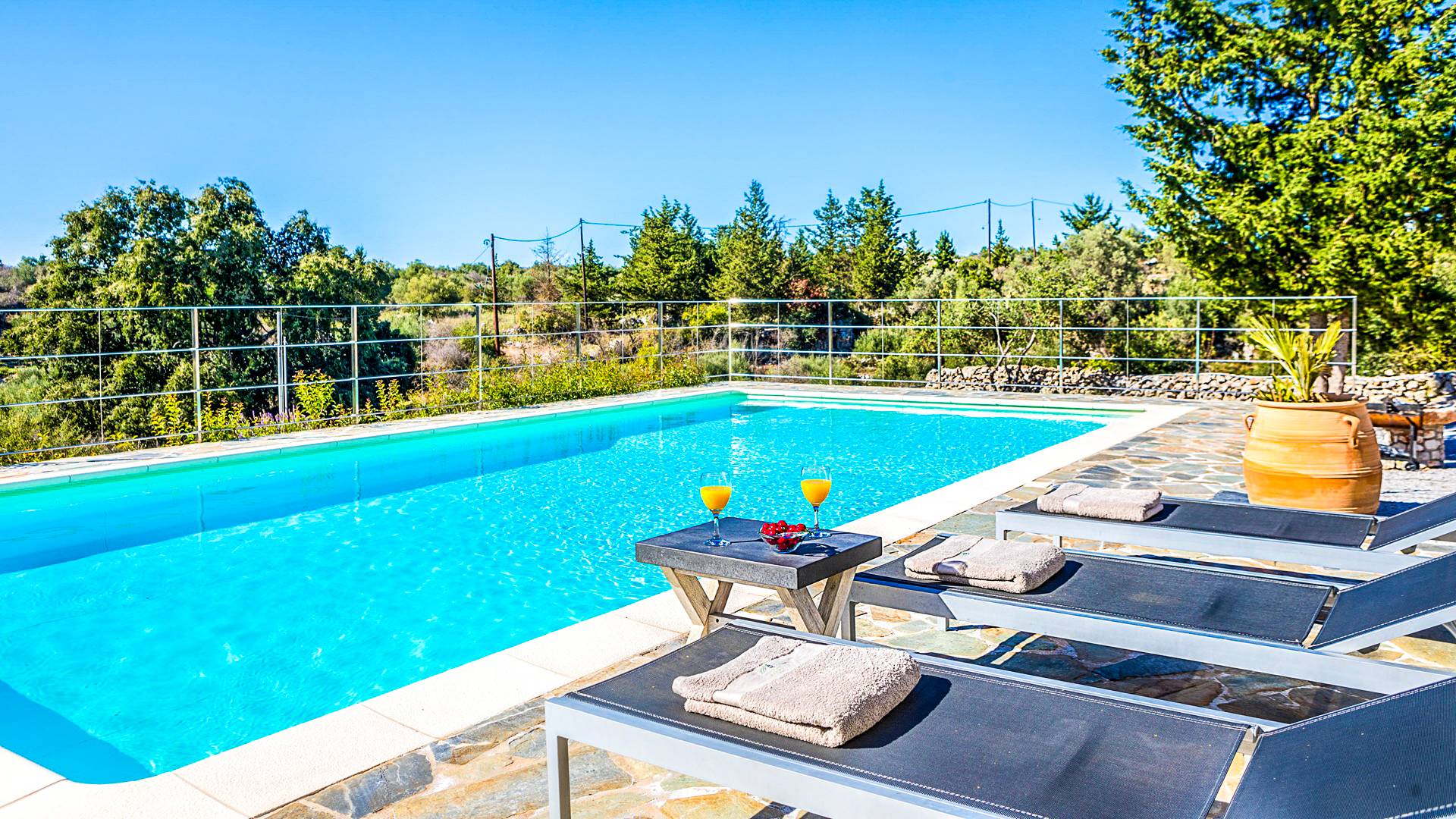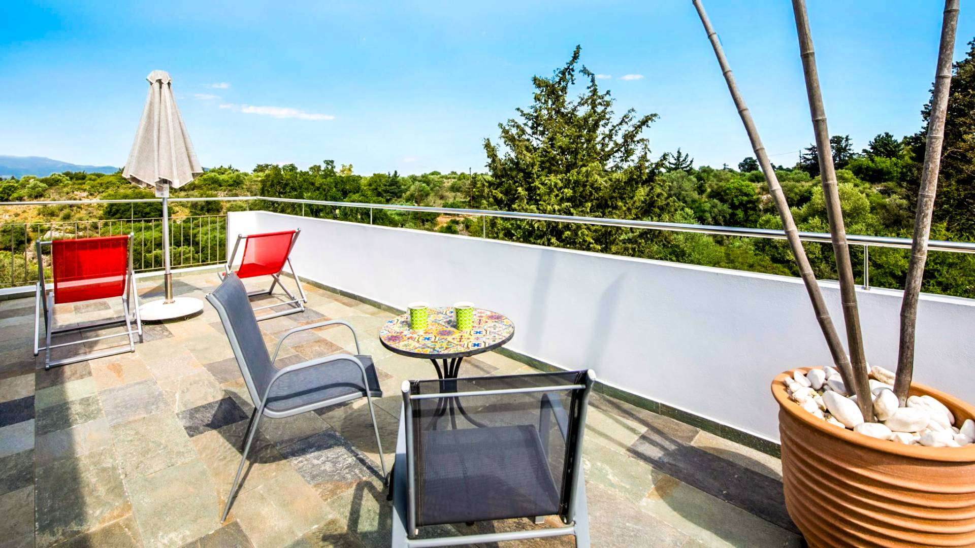 Downstairs there are two Superior bedrooms with fitted wardrobes, air-conditioning, ceiling fan, and exit directly on a private panoramic area fitted with umbrella and sunbeds. Outside there is a new Petanque or Bowling field, a panoramic veranda with a jacuzzi, and a sofa for a relaxing time under the sun. Newly built villa in Vamos, to a very high specification, it’s a contemporary property offering a wealth of superb facilities, including a relaxing jacuzzi, stunning private pool, and spacious sun terrace from which to enjoy wonderful views. The villa is designed to make your vacations a real comfort to make you feel the warmth of genuine hospitality in Crete.